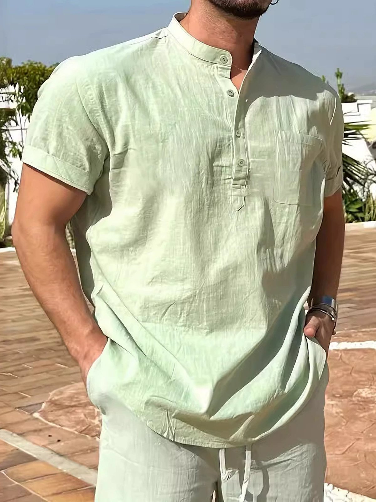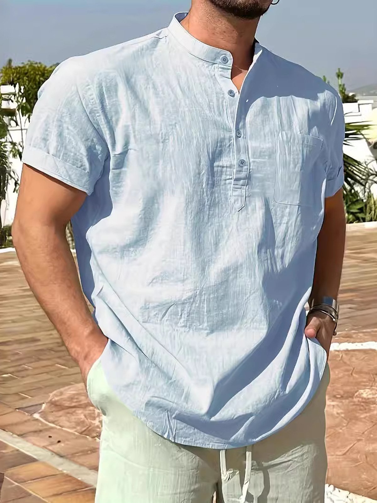 Alohadaddy® Basic Solid Stand Collar Button Henley Cotton Shirt