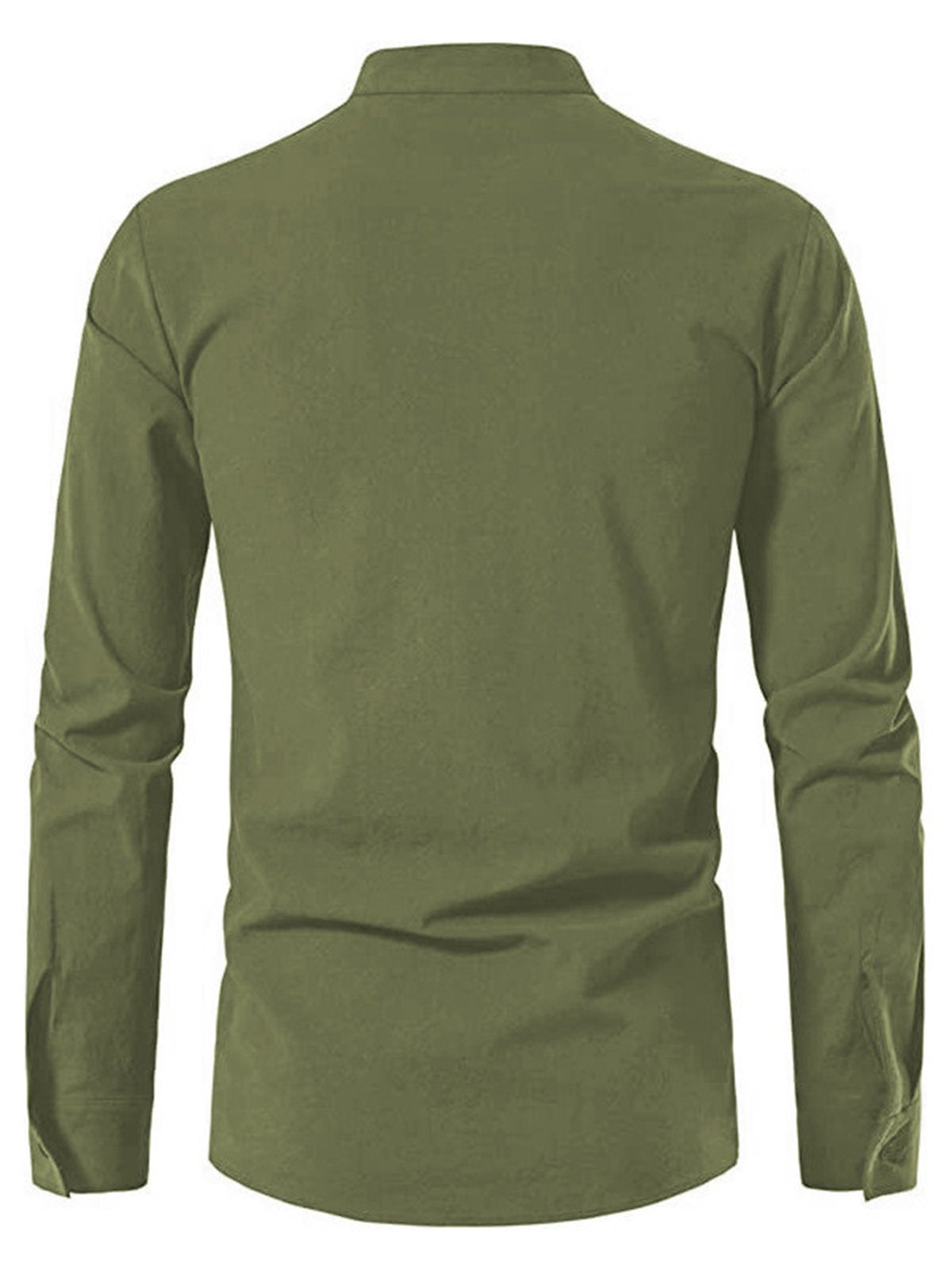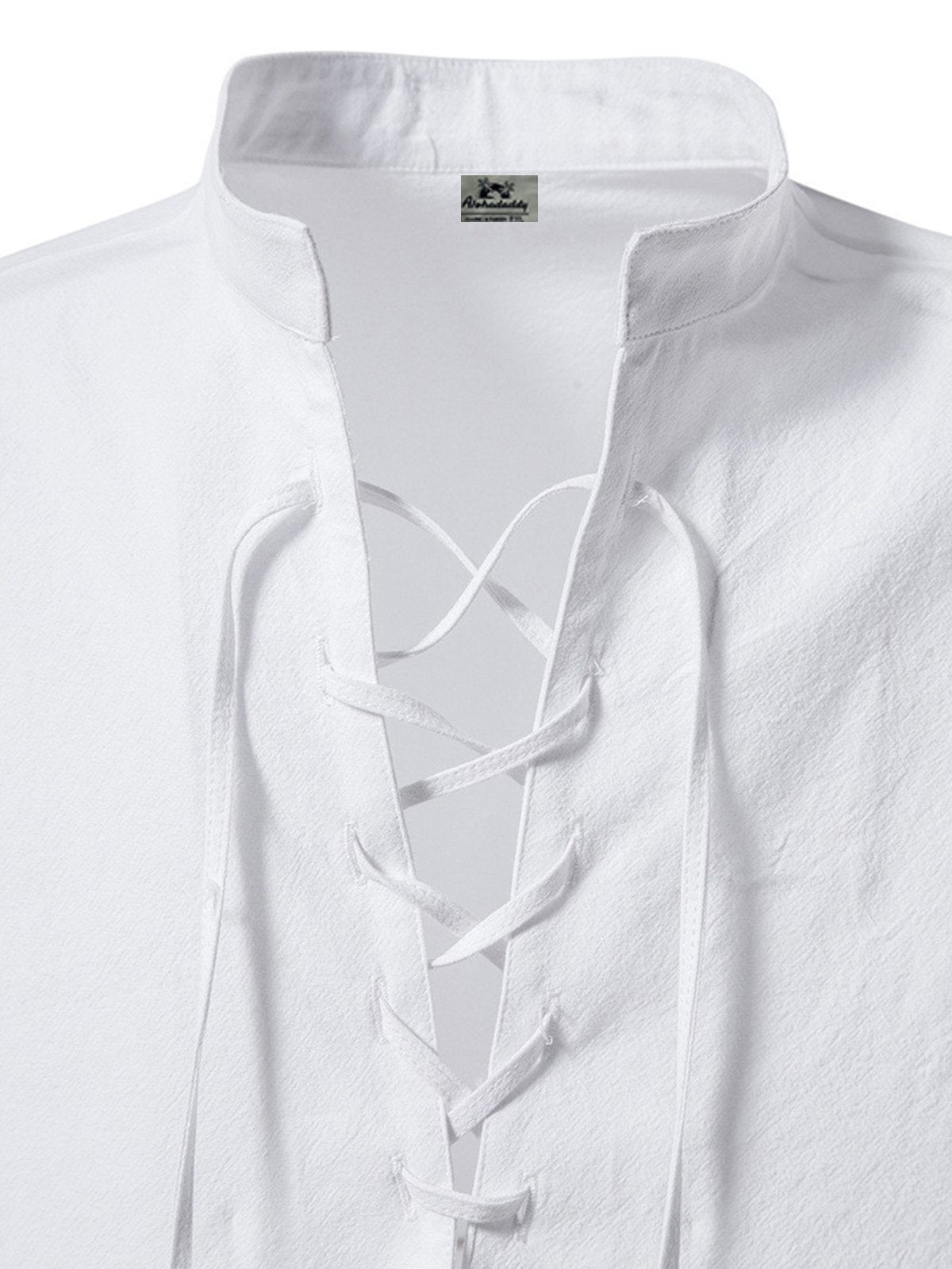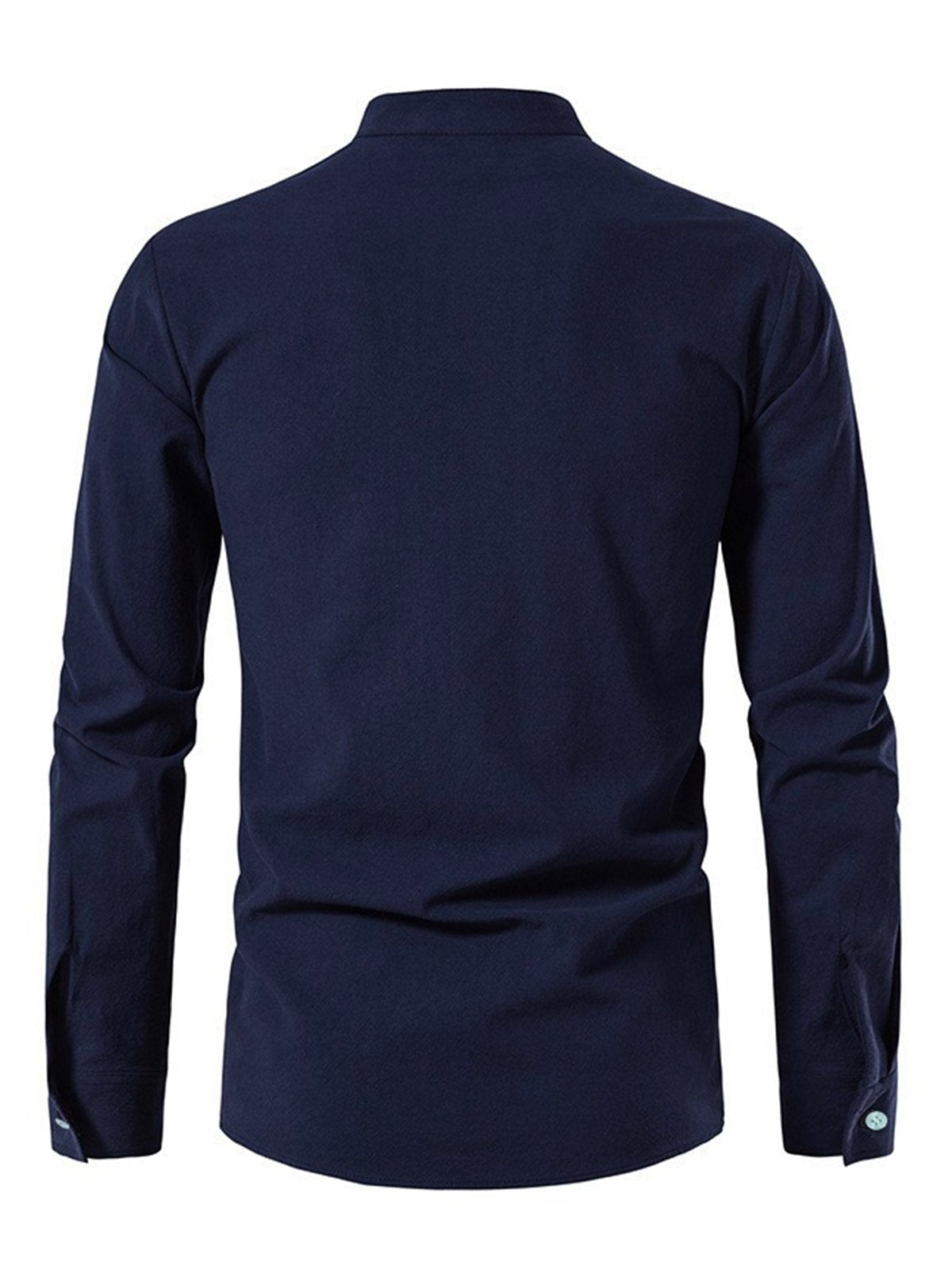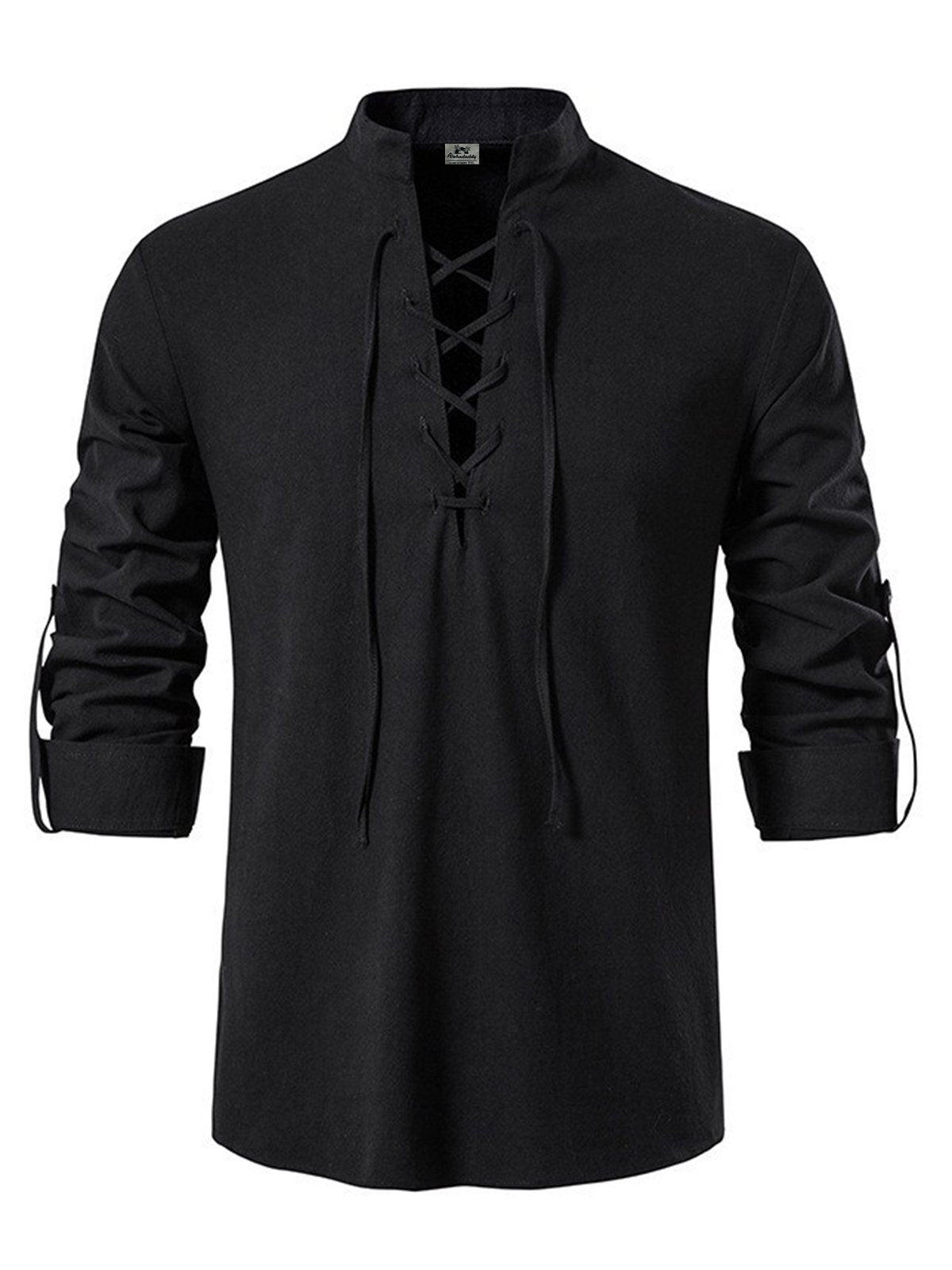 Alohadaddy® Men's Cotton Henley Long Sleeve Casual Beach Shirt Stand Collar European and American Drawstring Shirt