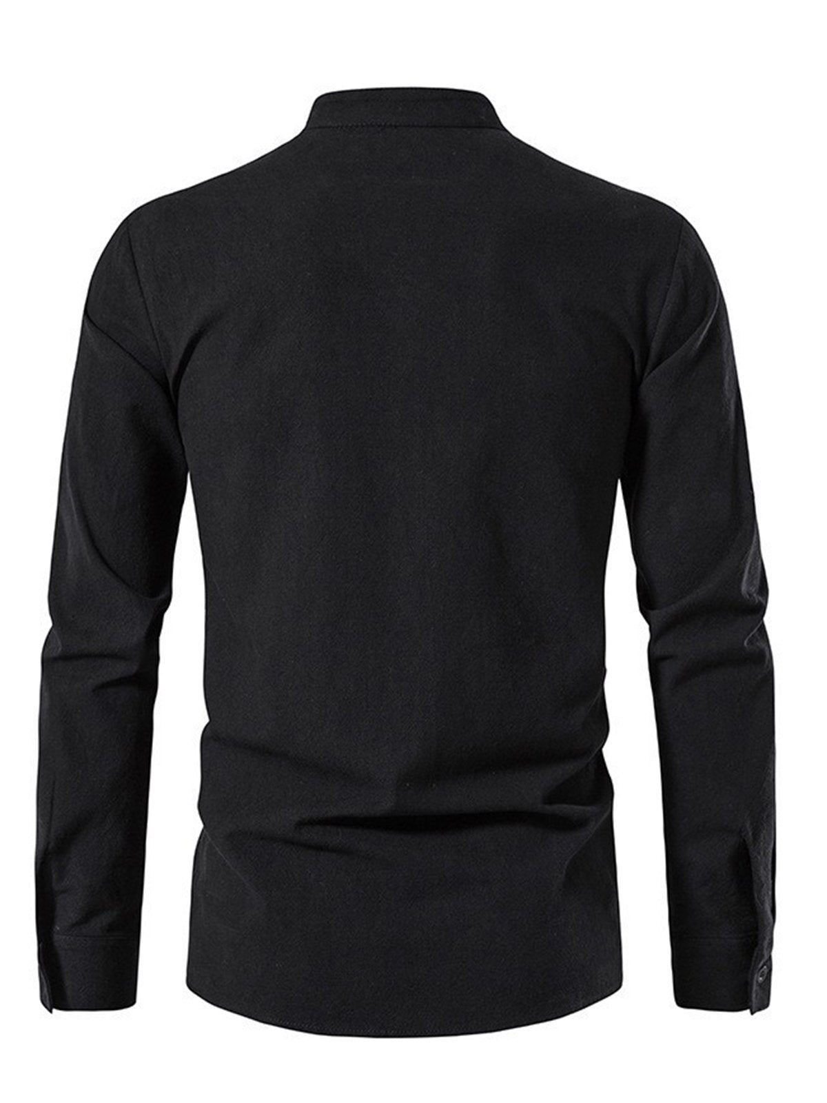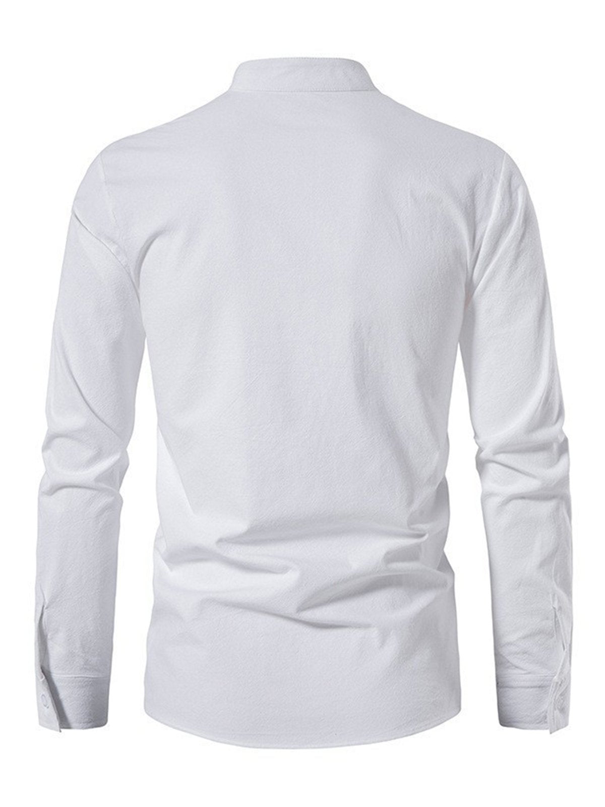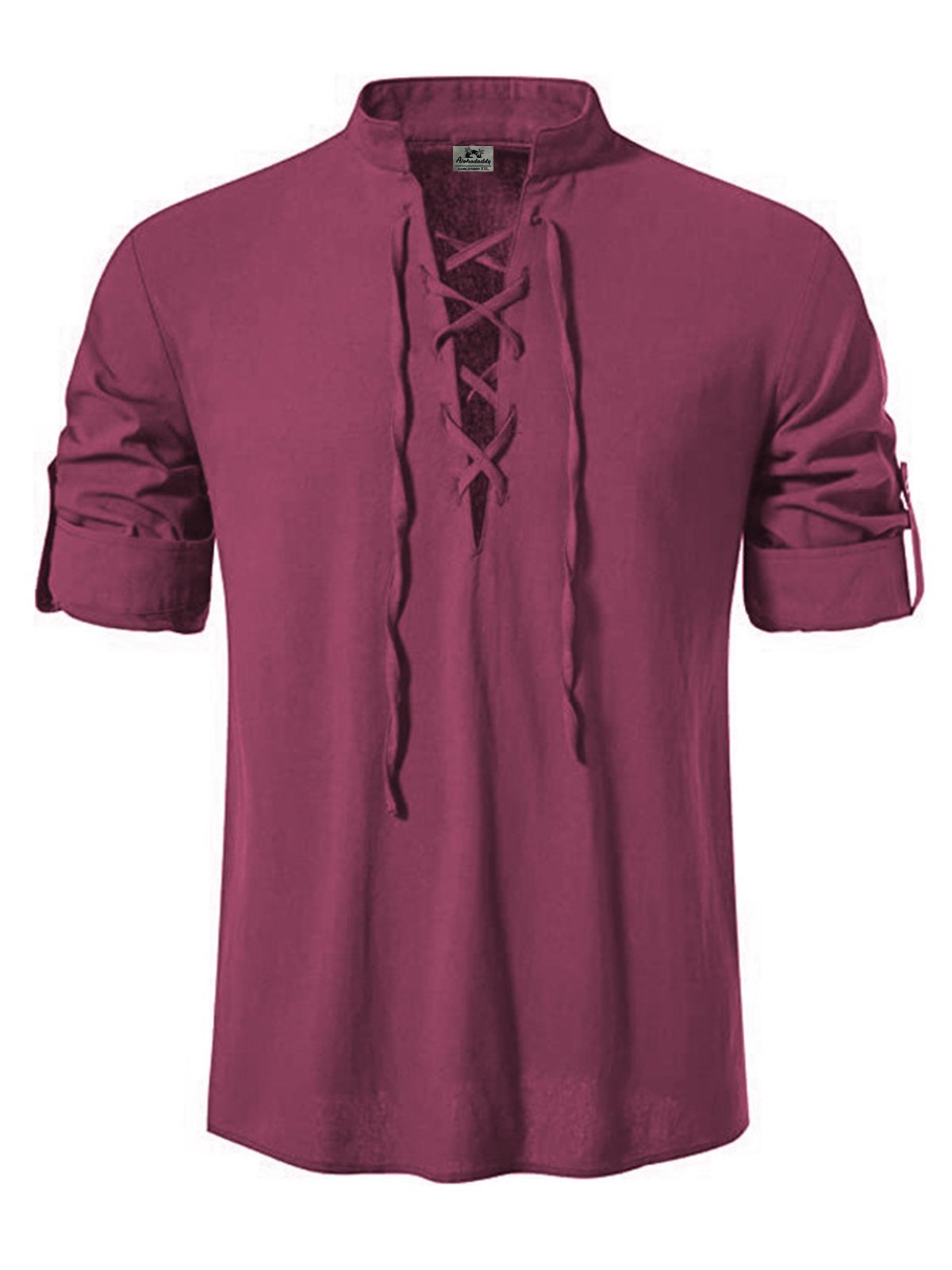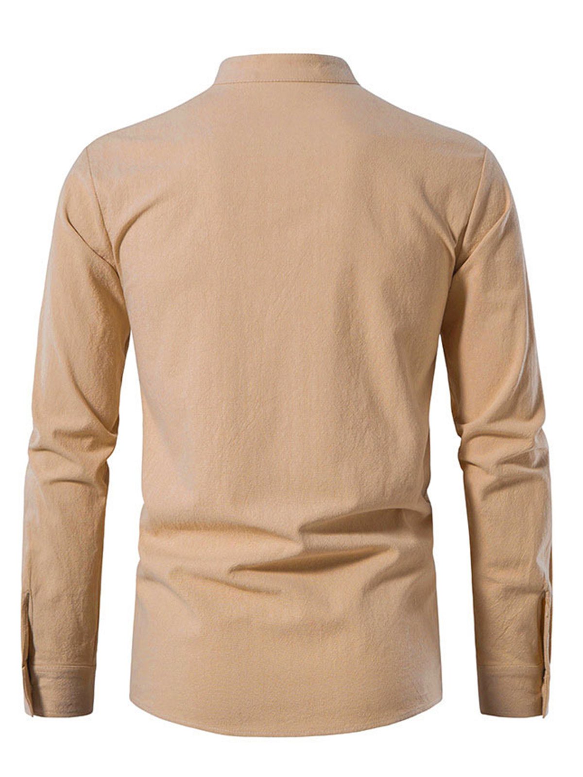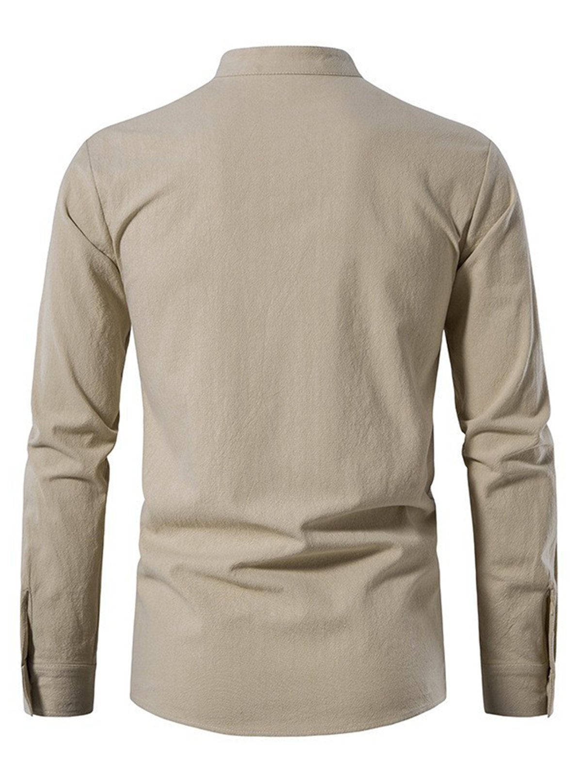 Alohadaddy® Men's Cotton Henley Long Sleeve Casual Beach Shirt Stand Collar European and American Drawstring Shirt