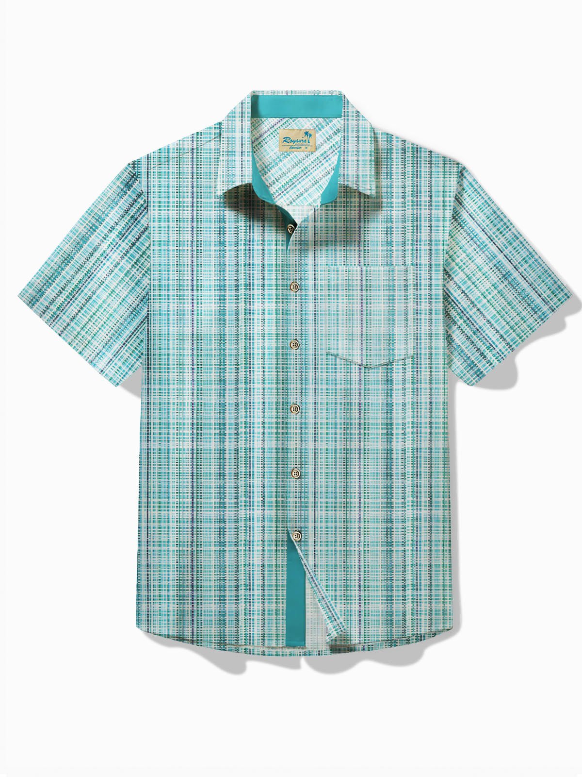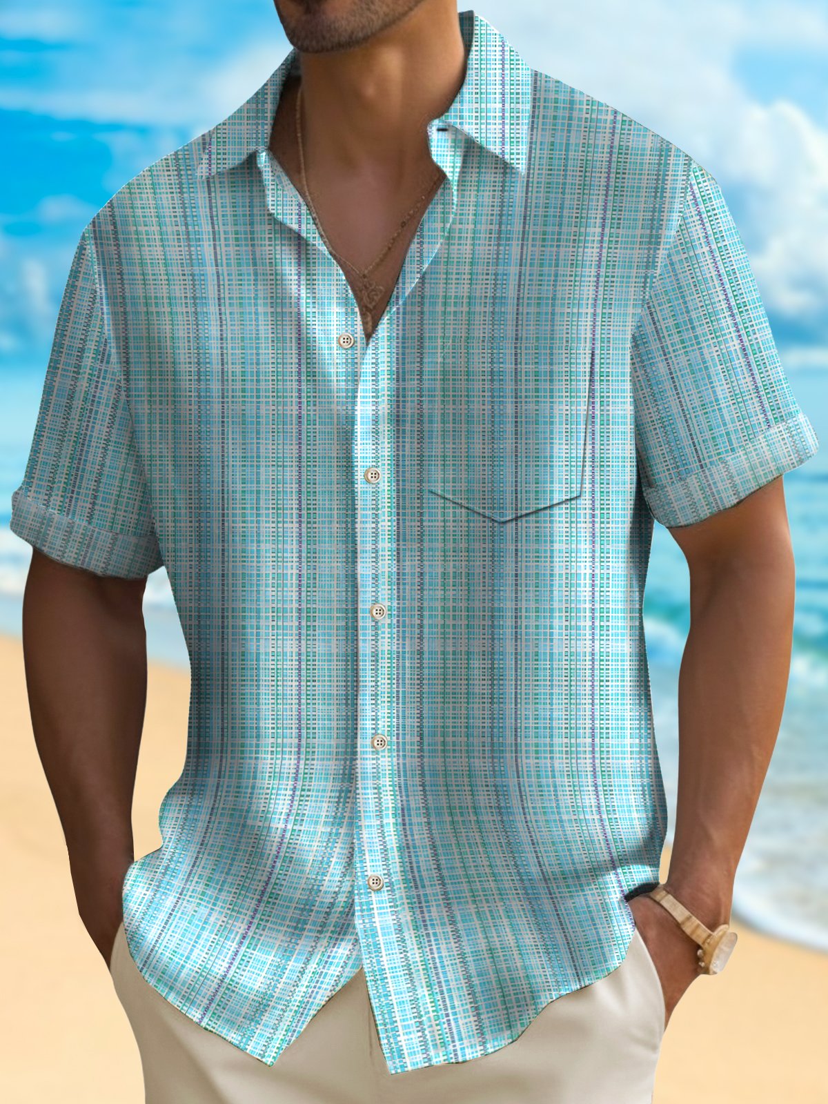 Camisa casual verde de vacaciones para hombre de Alohadaddy Beach Camisa de campamento con bolsillo texturizado Camisa grande y alta