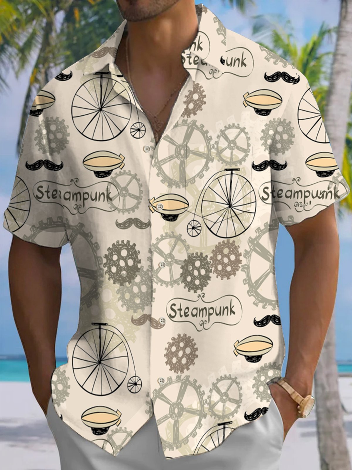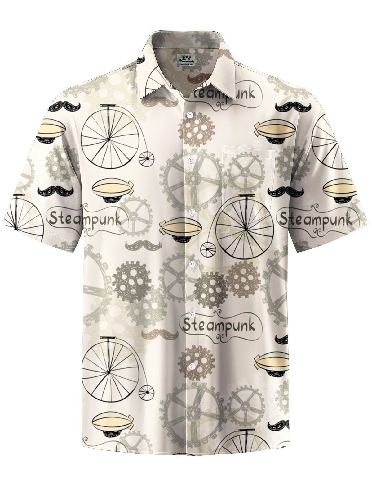Alohadaddy® Retro Gear Mustache Ombre Print Art Pocket Stretch Men's Short Sleeve Shirt Big & Tall