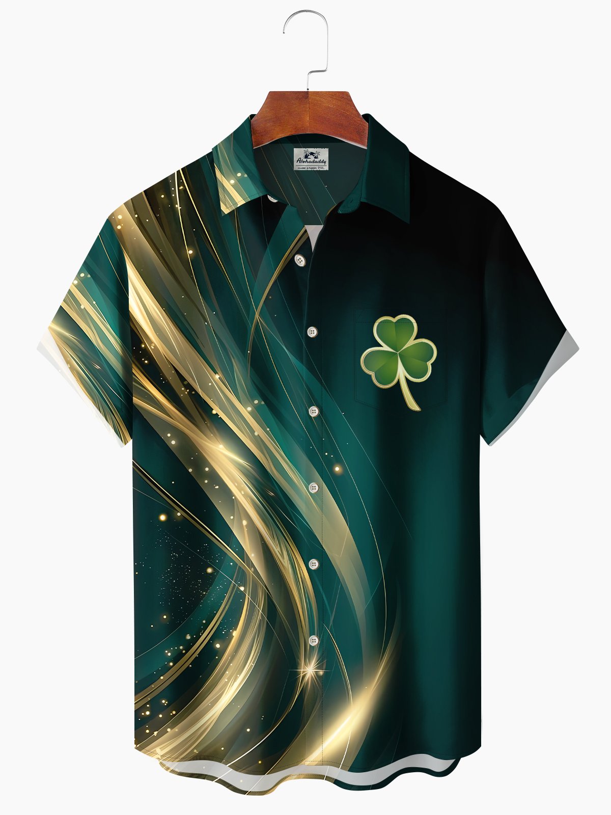 Alohadaddy Gradient Line Holiday St. Patrick's Shamrock Pocket Shirt