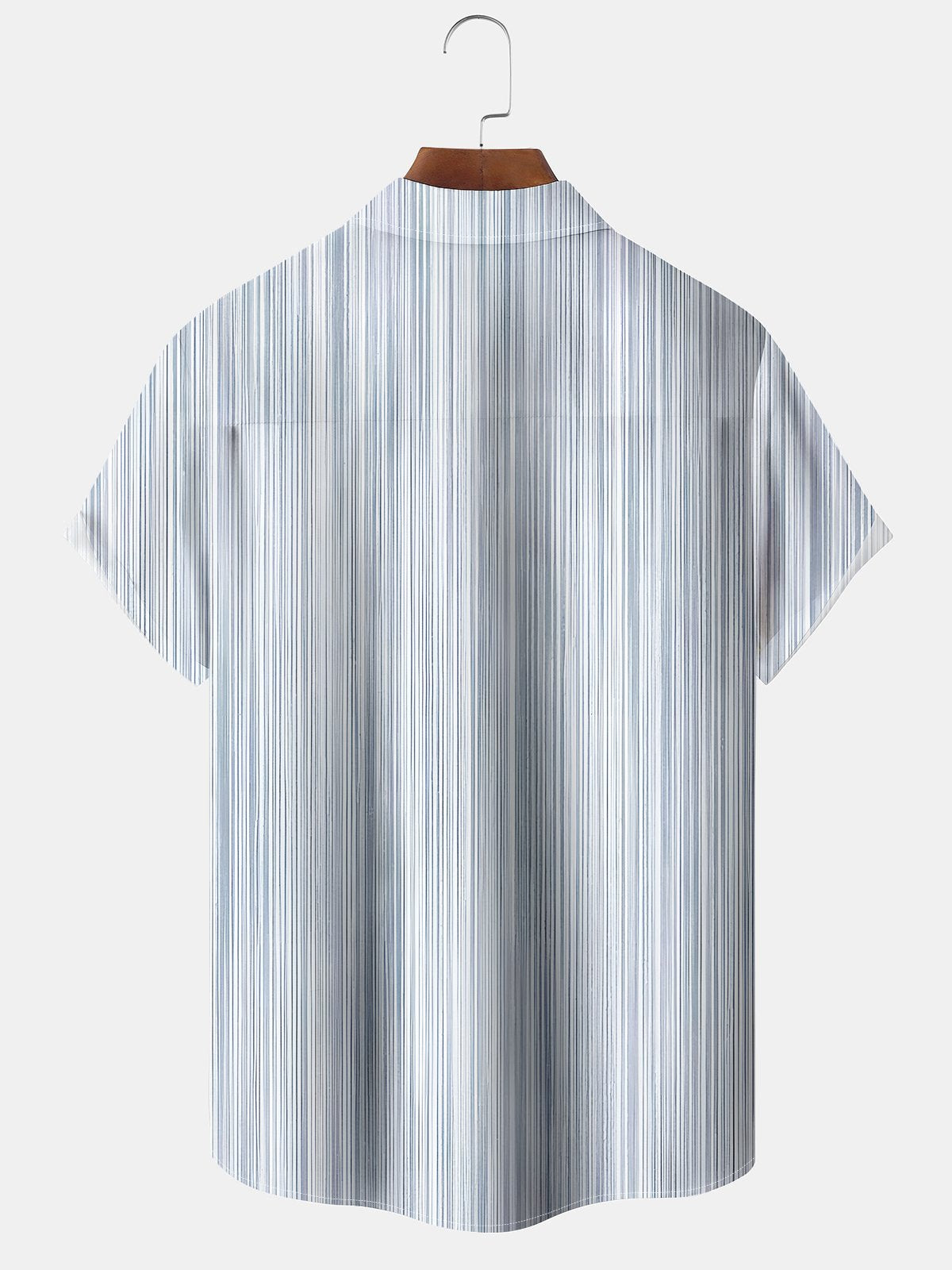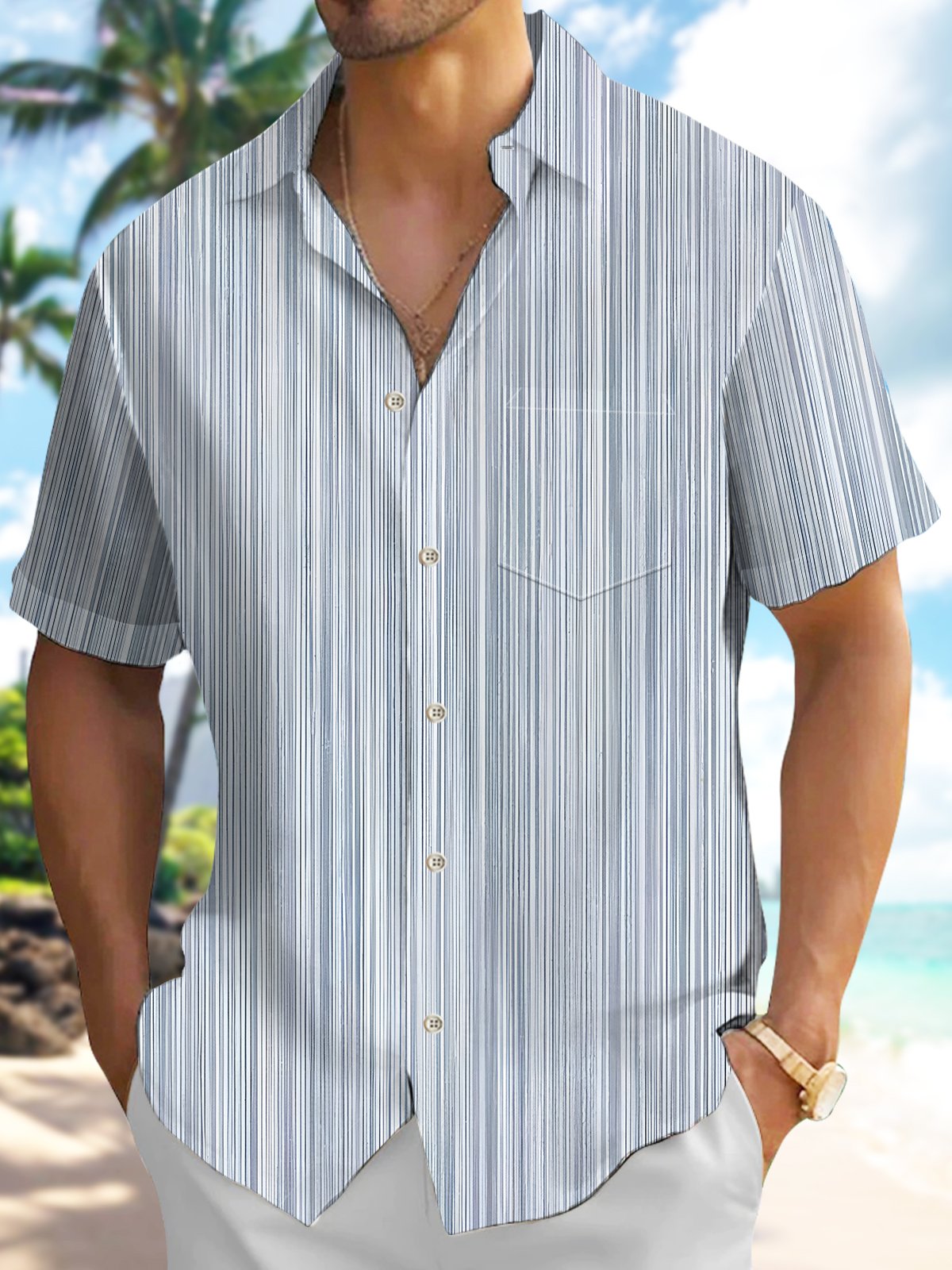 Alohadaddy Casual Collection Stripes Printed Art Pocket Cardigan Buttons Polyester Stretch Short Sleeve Shirt