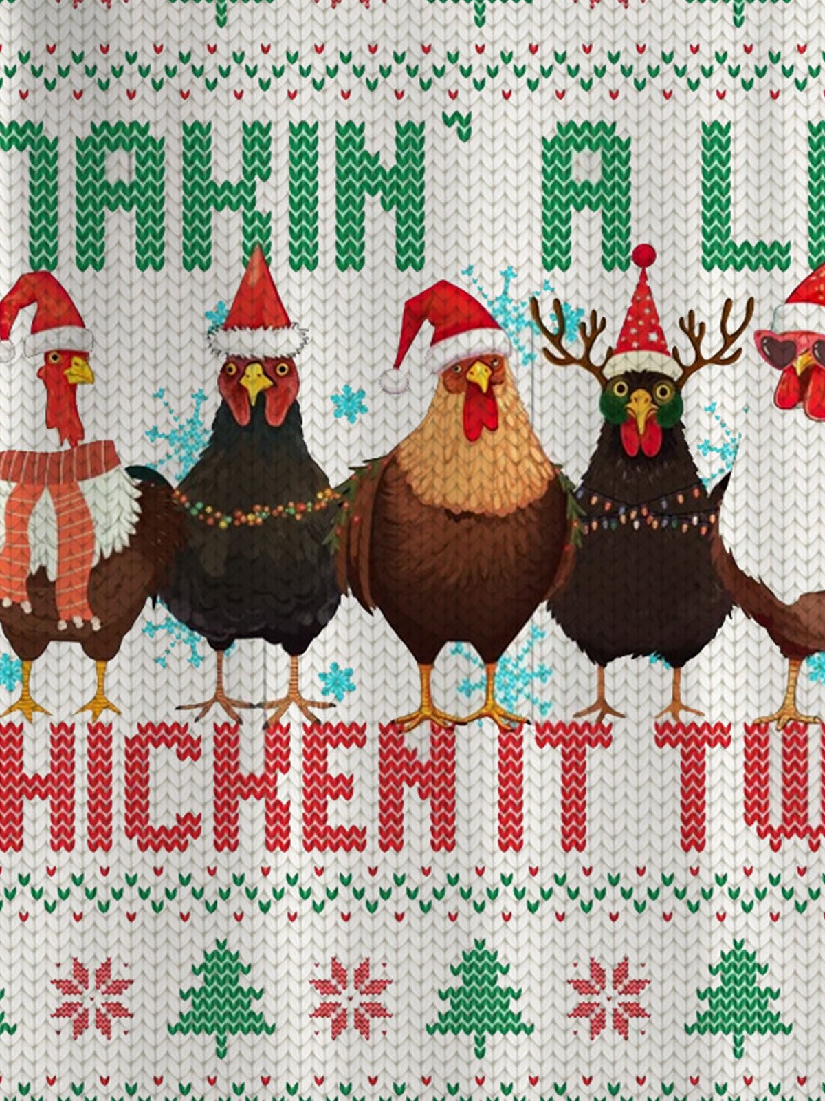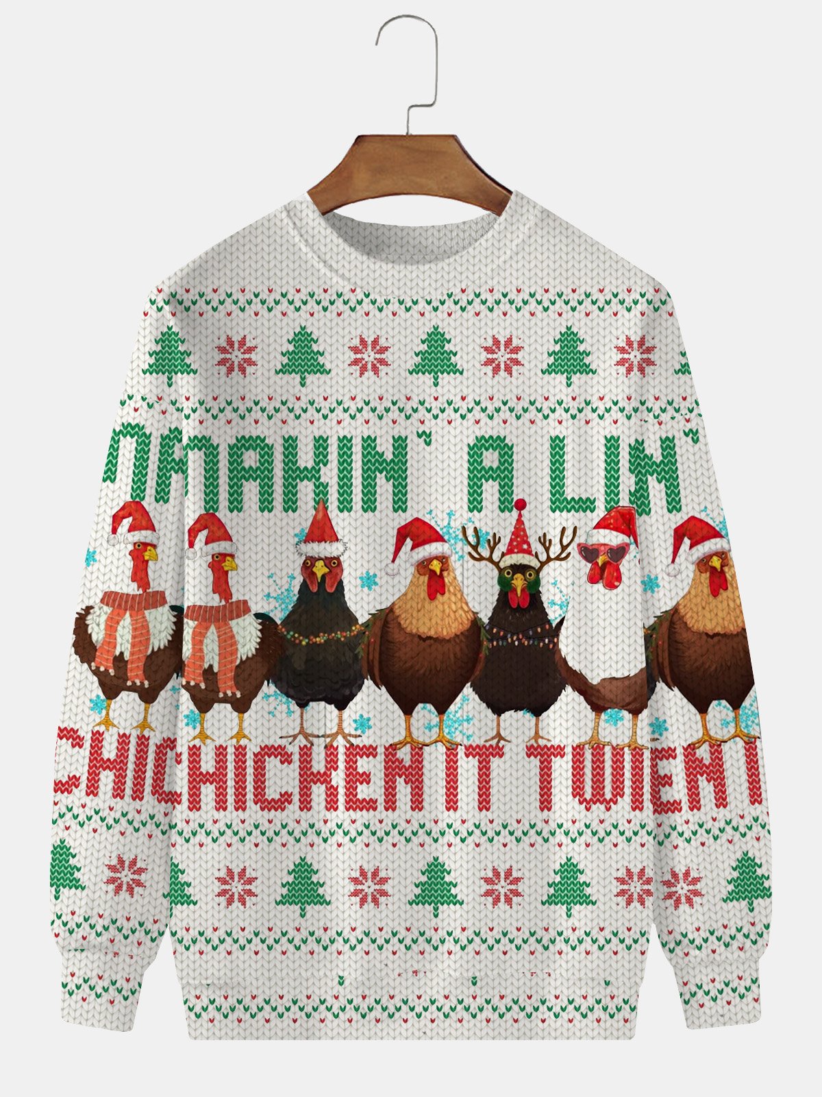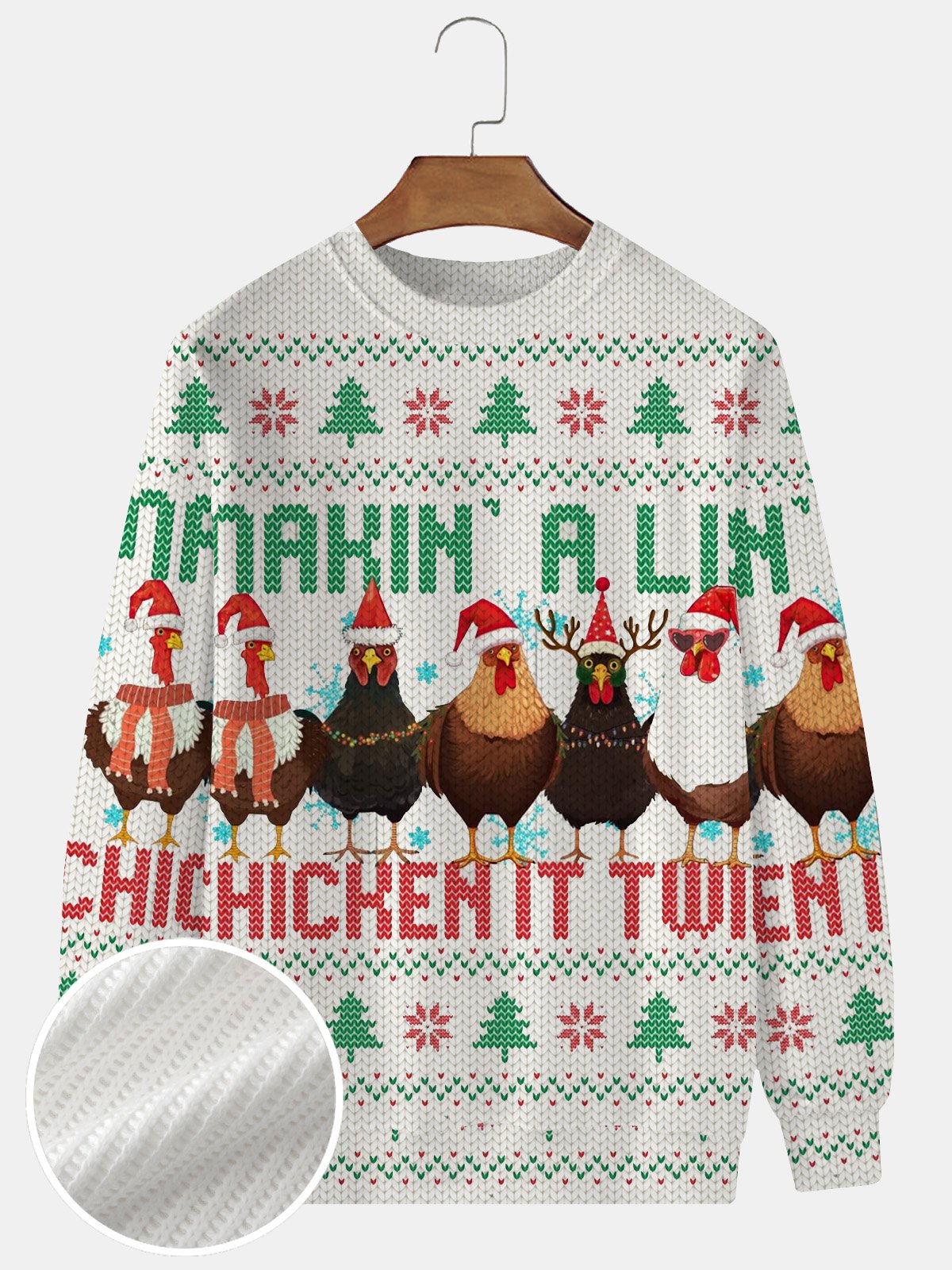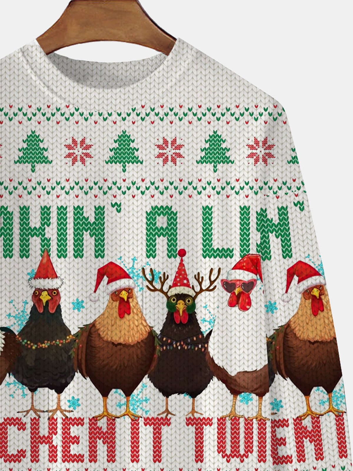Suéter navideño Alohadaddy con gorro de Papá Noel y gallo, sudadera con estampado digital 3D para hombre, talla grande y alta