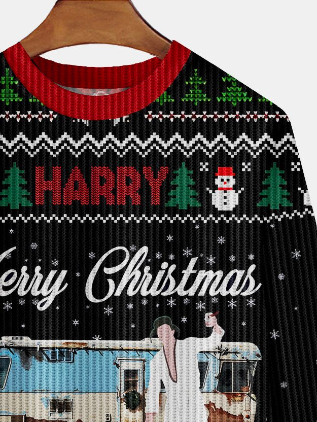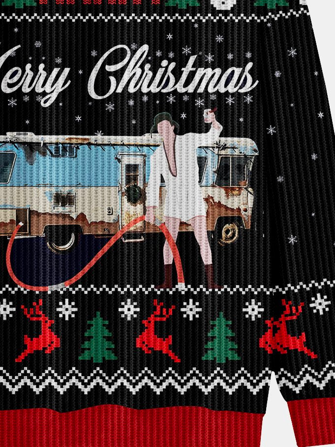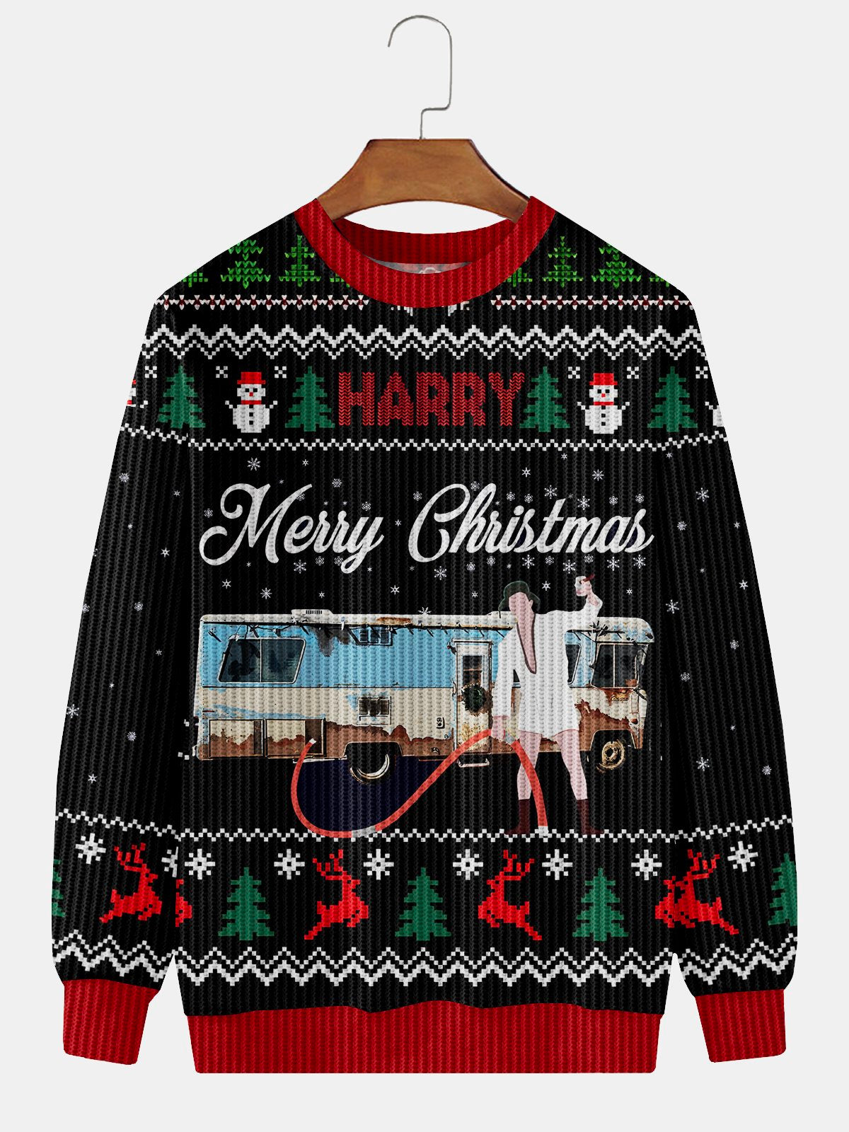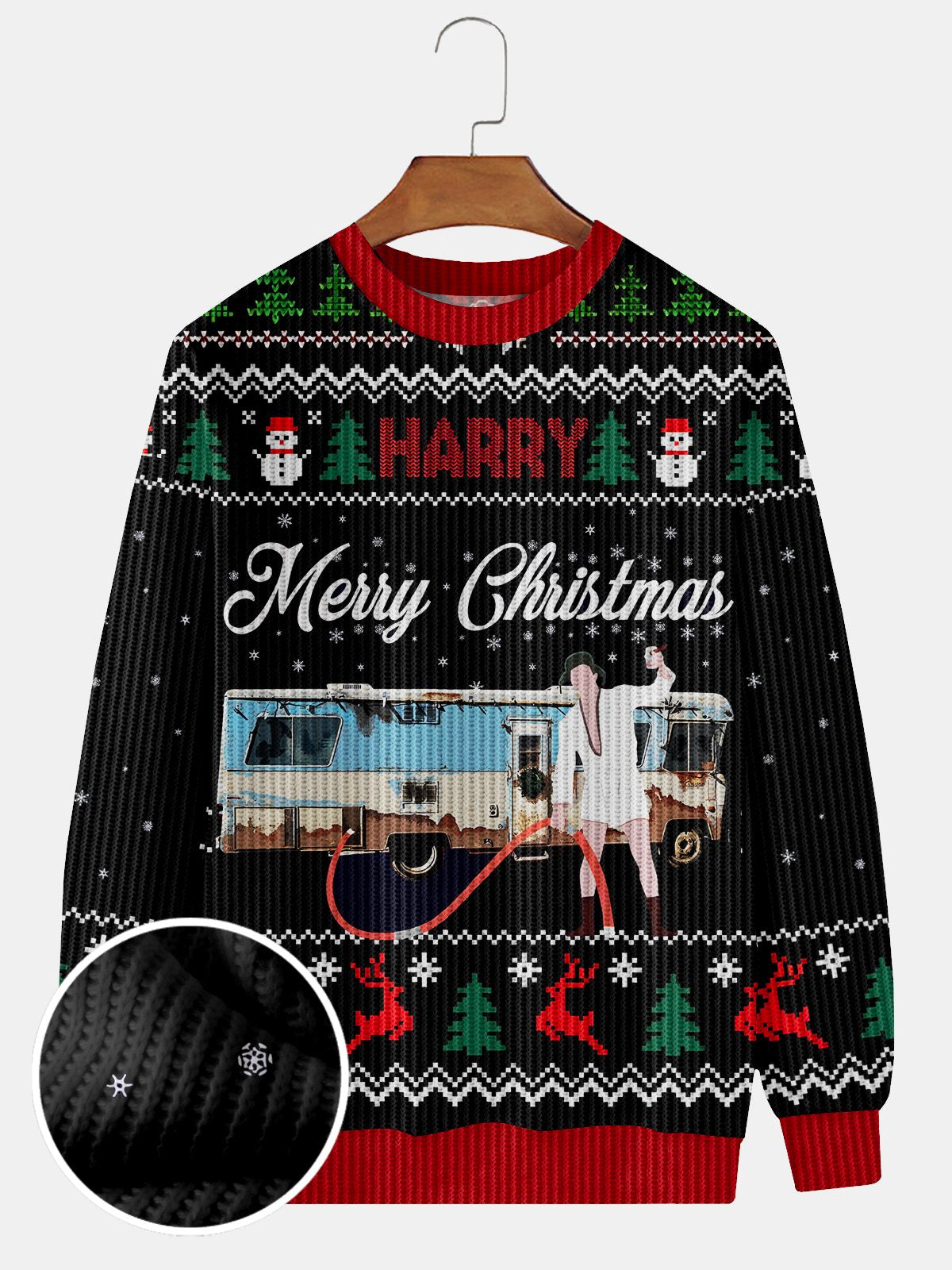 Top navideño con estampado de copos de nieve y autobús peludo feo para hombre de Alohadaddy