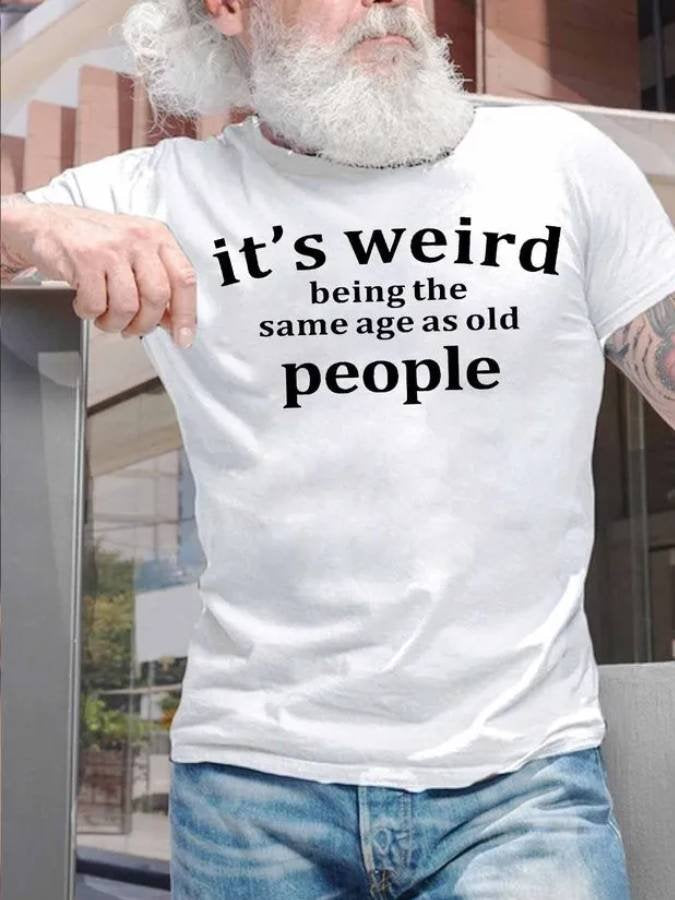 Camiseta con estampado gráfico divertido para hombre "Es extraño tener la misma edad que las personas mayores"