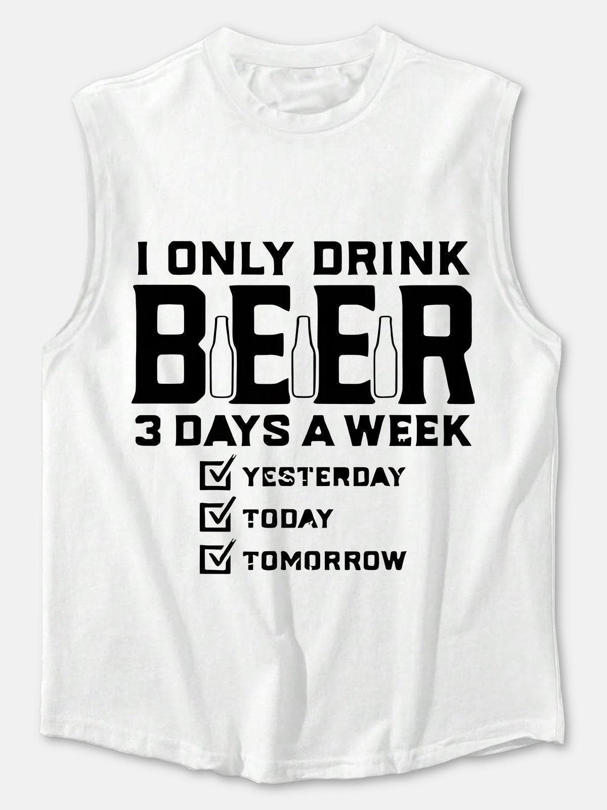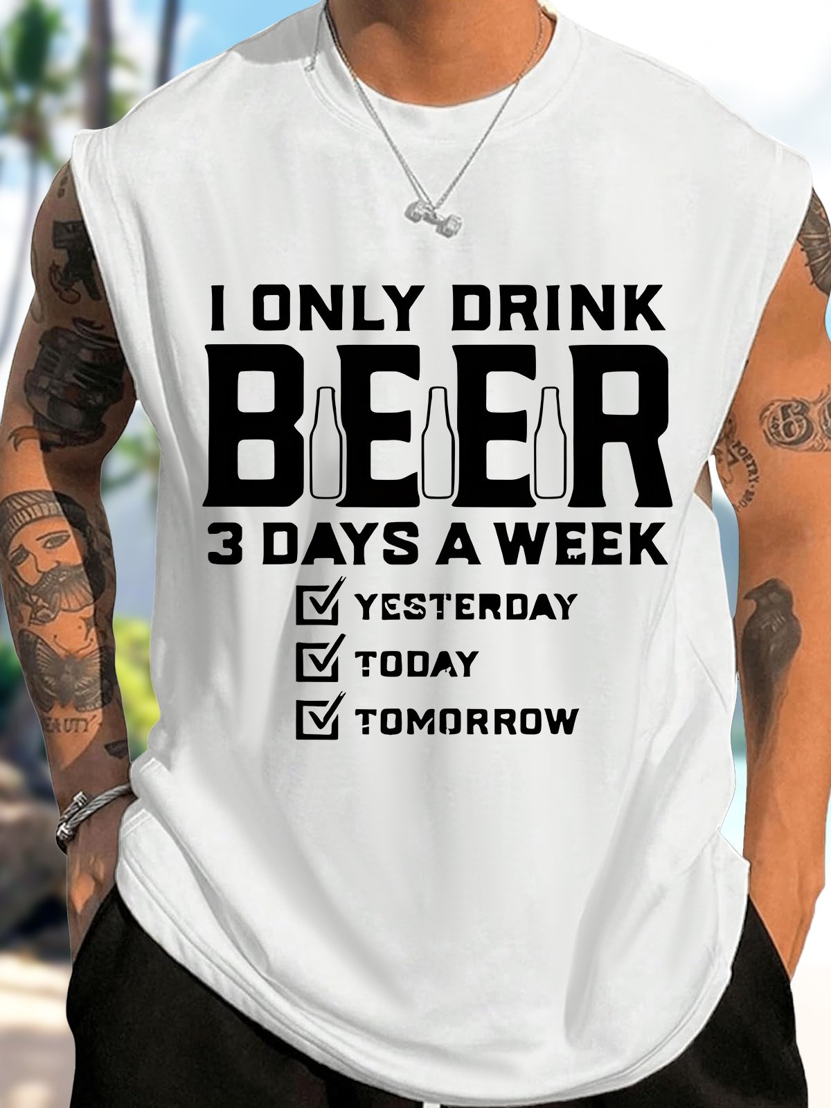 Alohadaddy Casual Series Letters Beer Drawing Art Round Neck Elasticity Large Size Long Sleeveless T-shirt Tank Top