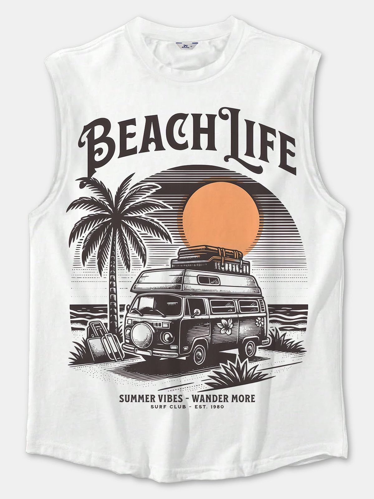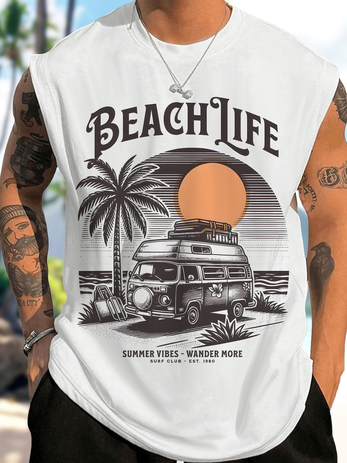 Alohadaddy Hawaiian Casual Palm Tree Print Art Stretch Large Size Tank Top