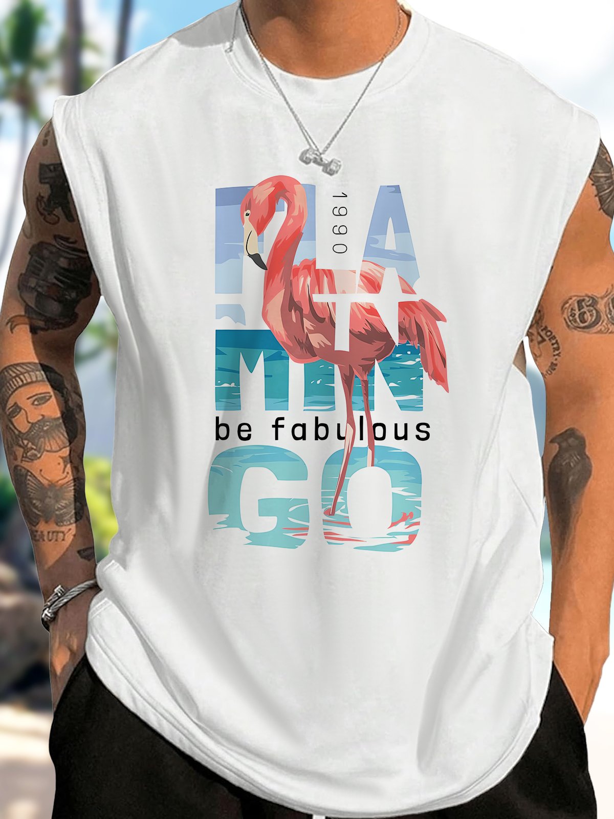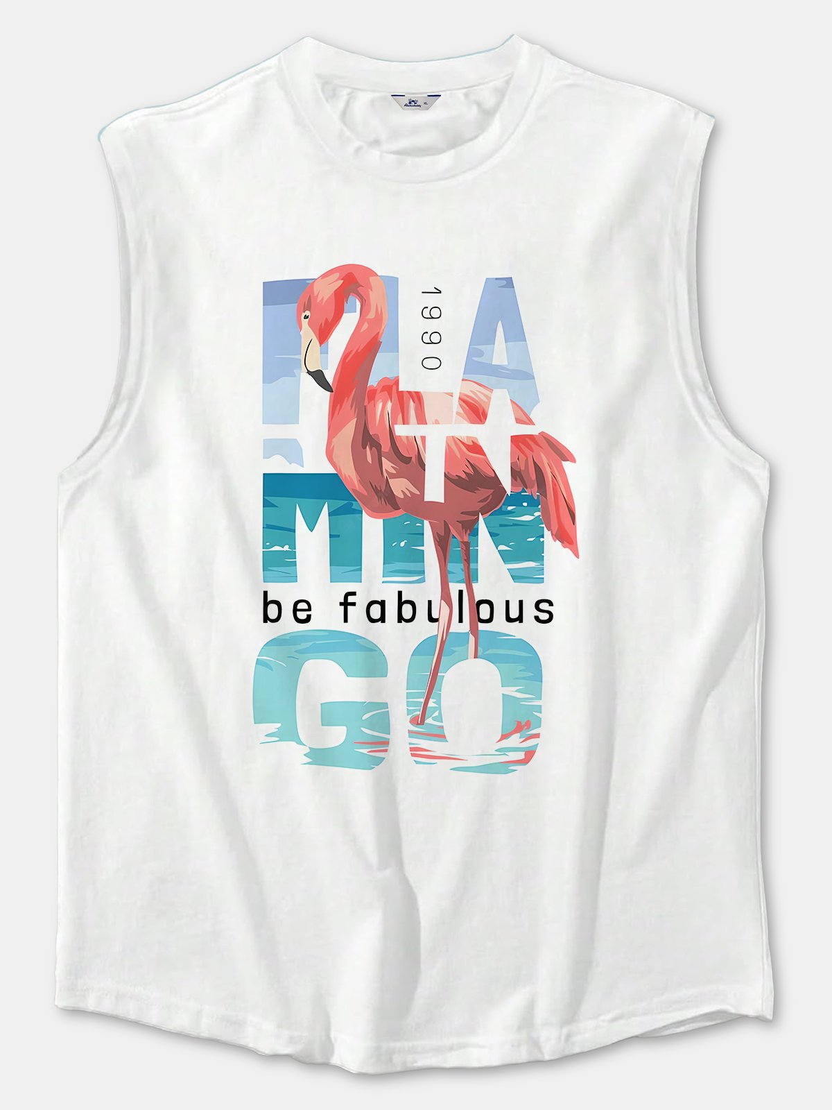 Alohadaddy Hawaiian Flamingo Print Art Crew Neck Elastic Large Size Long Sleeveless Tank Top