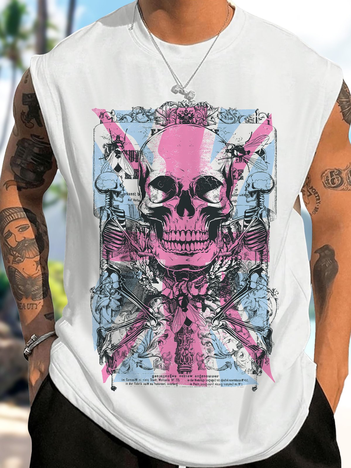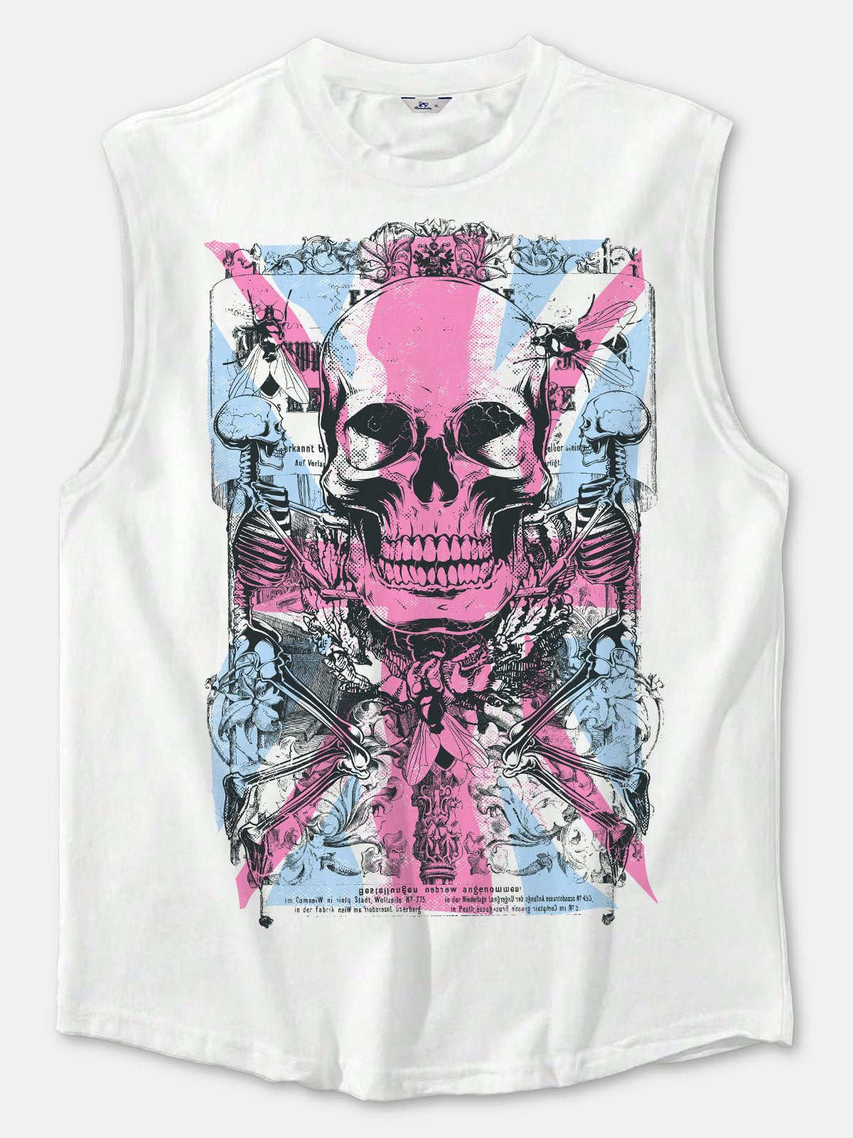 Alohadaddy Skull Print Art Moisture Wicking Large Size Casual Hawaiian Sleeveless Tank Top