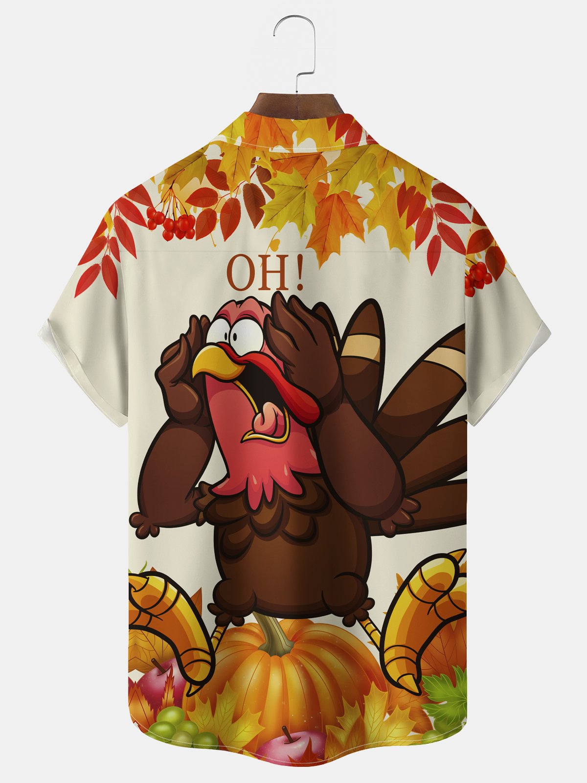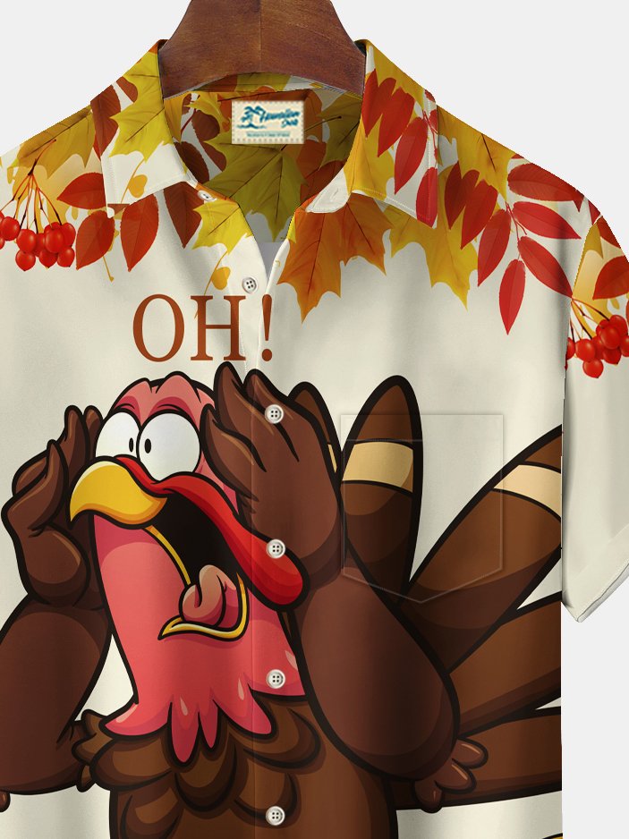 Camisa elástica con bolsillo en el pecho y estampado de dibujos animados de pavo de Acción de Gracias de Alohadaddy, talla grande