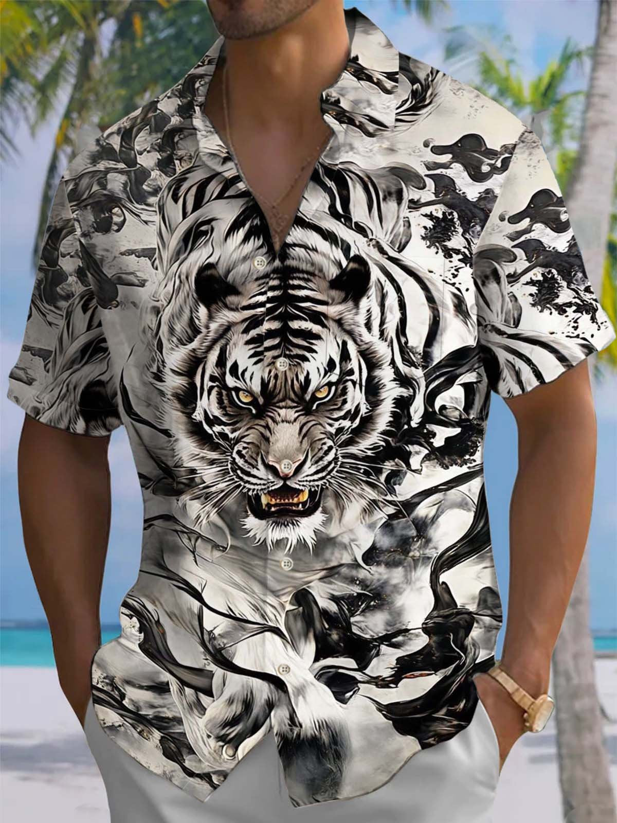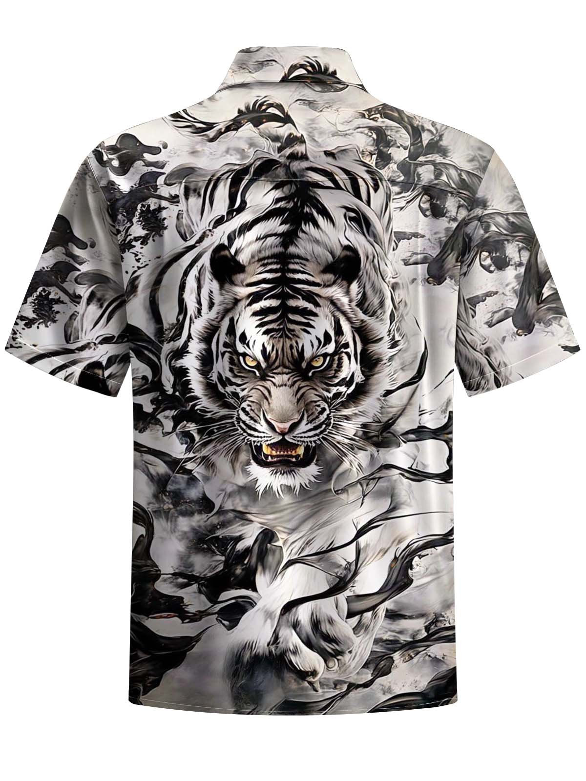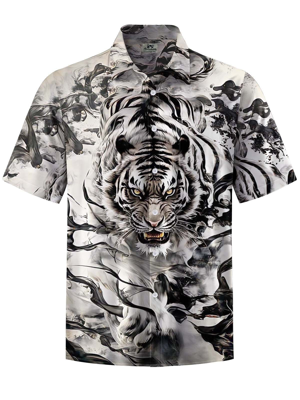 Alohadaddy® Casual Tiger Art Print Pocket Stretch Men's Short Sleeve Shirt Big & Tall