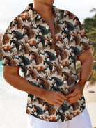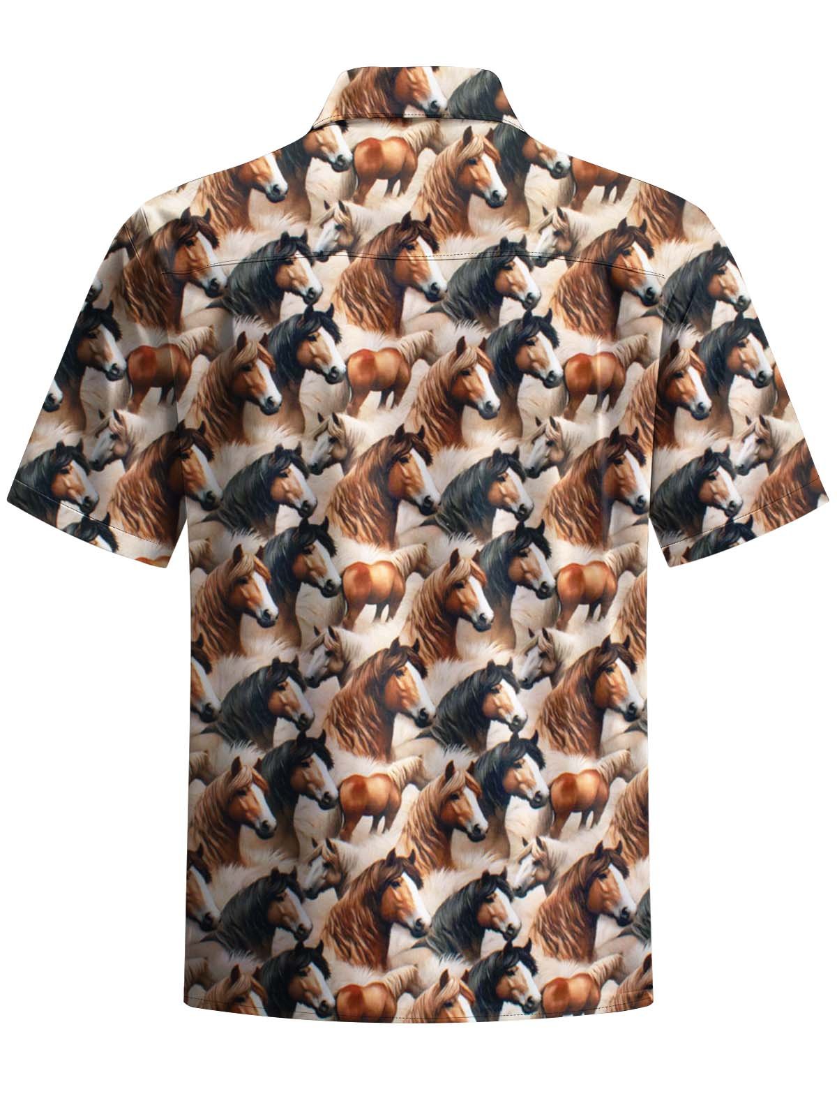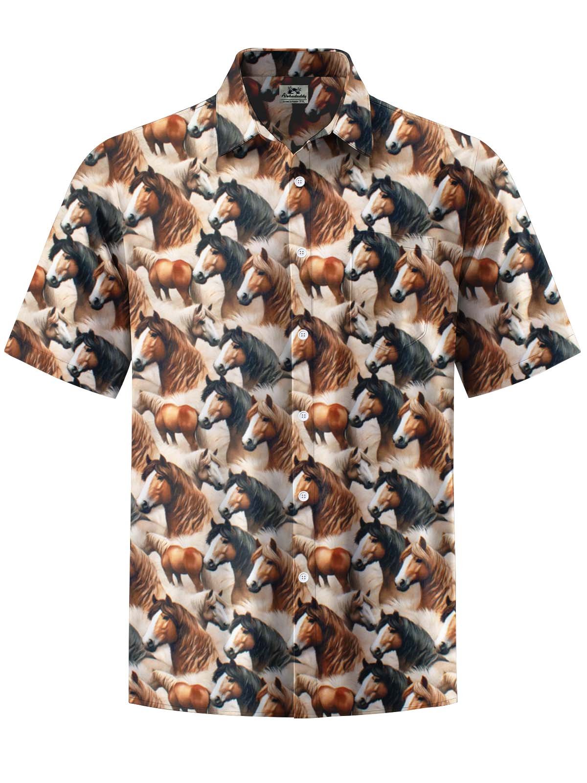 Alohadaddy® Men's Casual Horse Print Short Sleeve Shirt with Stretch Chest Pocket