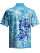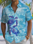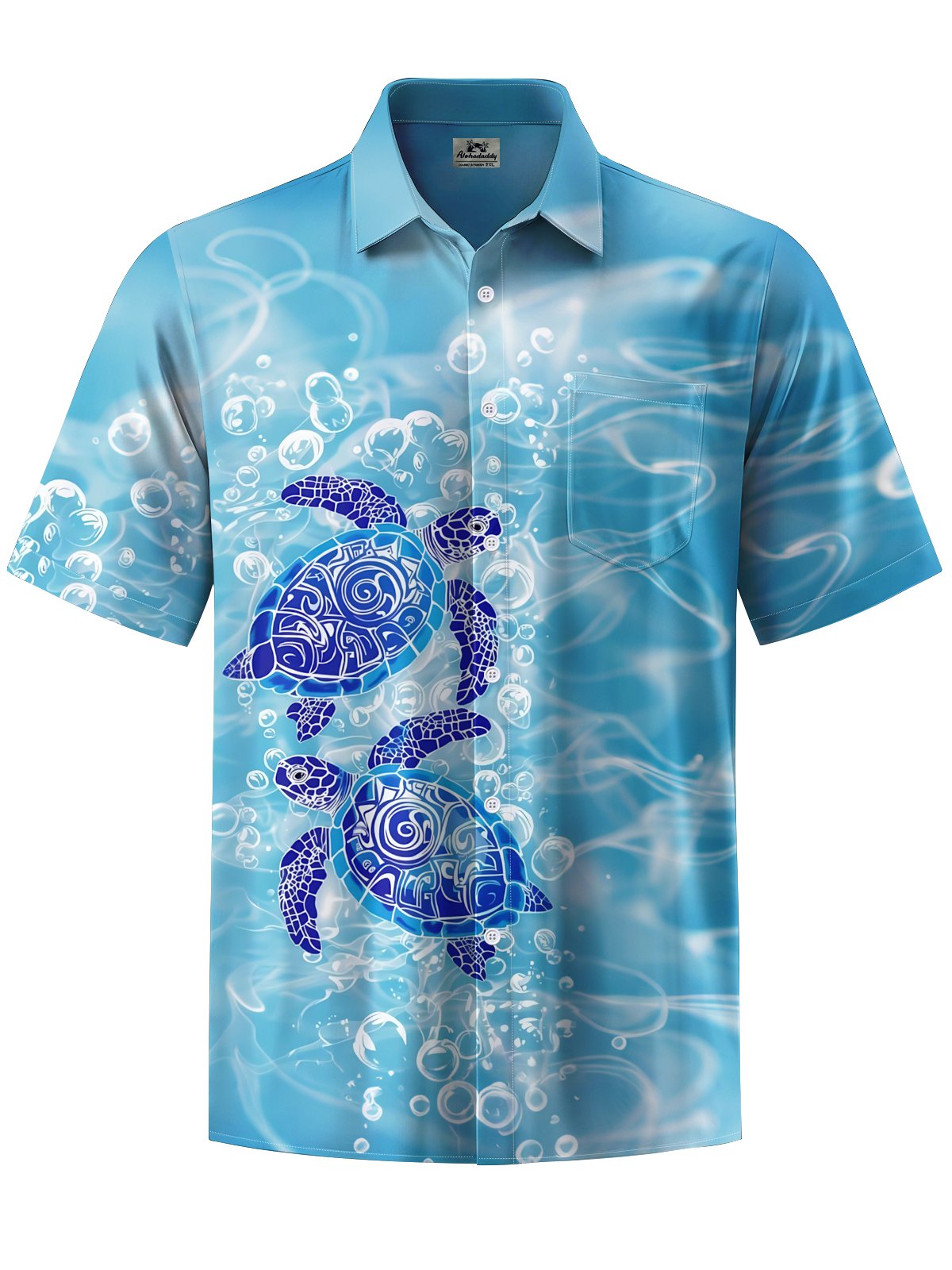 Alohadaddy® Hawaiian Sea Turtle Print Button Pocket Stretch Men's Short Sleeve Shirt Big & Tall