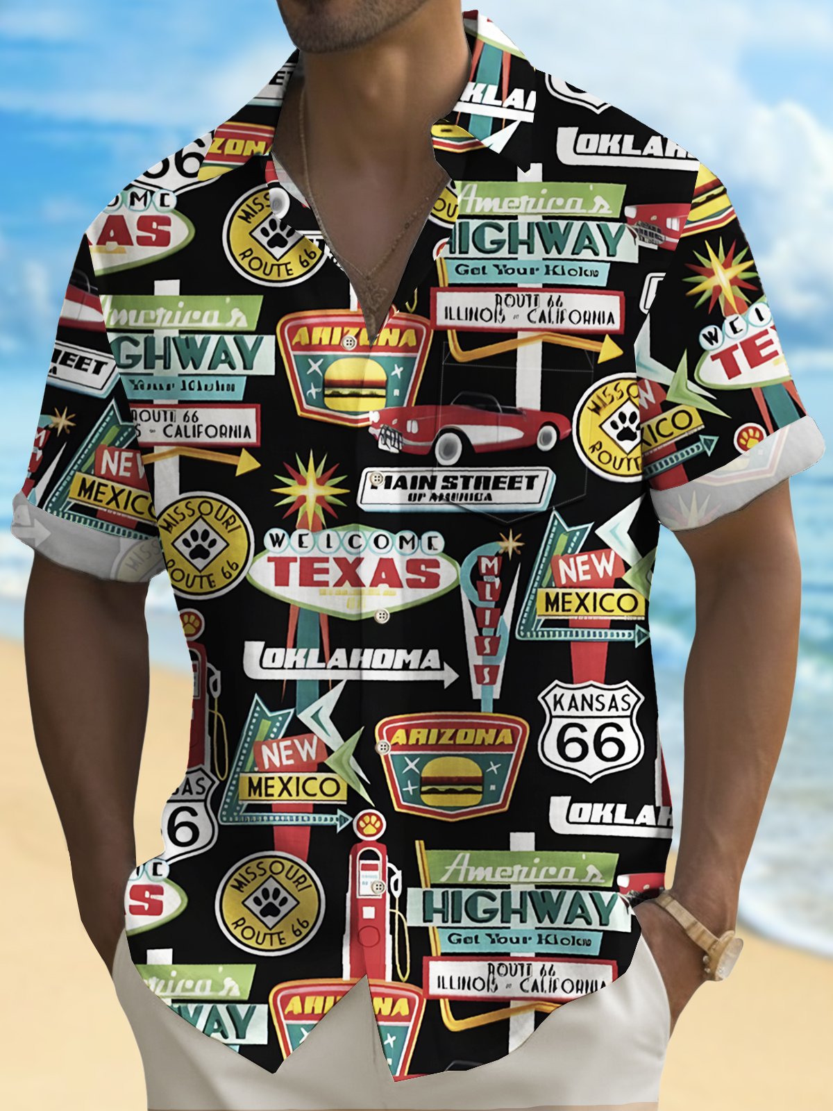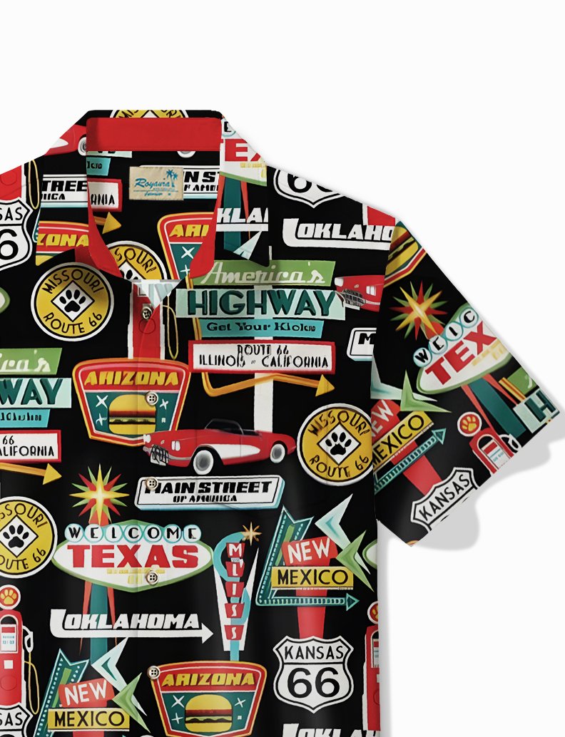 Camisa hawaiana de hombre para vacaciones en la playa Alohadaddy Camisa de camping con bolsillo de la Ruta 66
