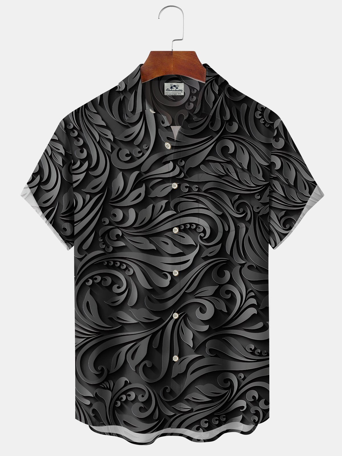 Alohadaddy Casual Collection Plants Dark Pattern Print Art Button Cardigan Pockets Elasticity Long Large Size Short Sleeve Shirt