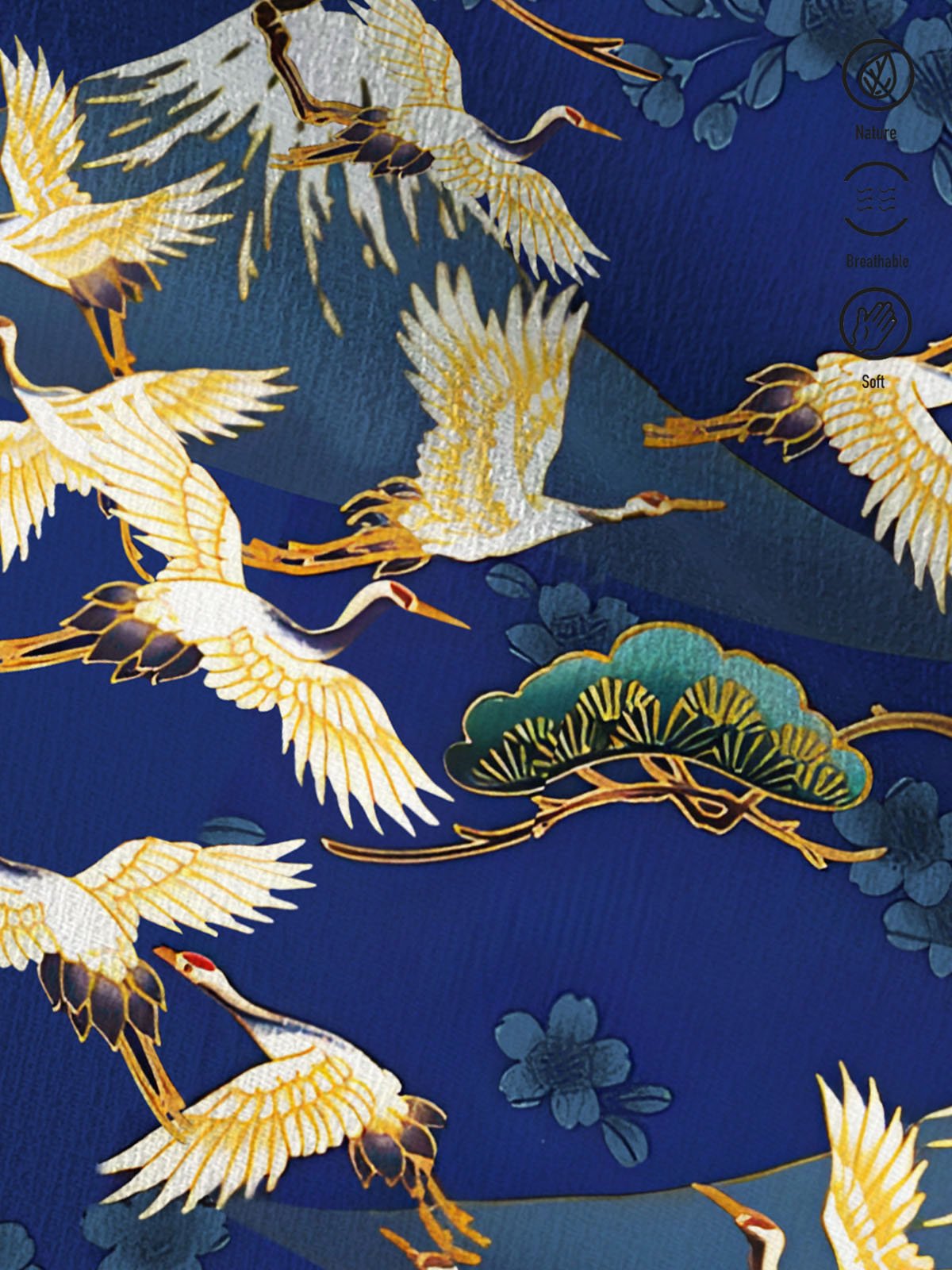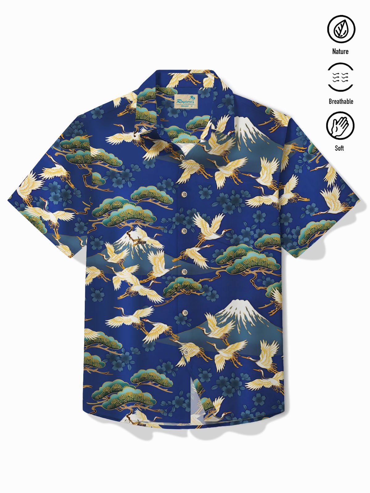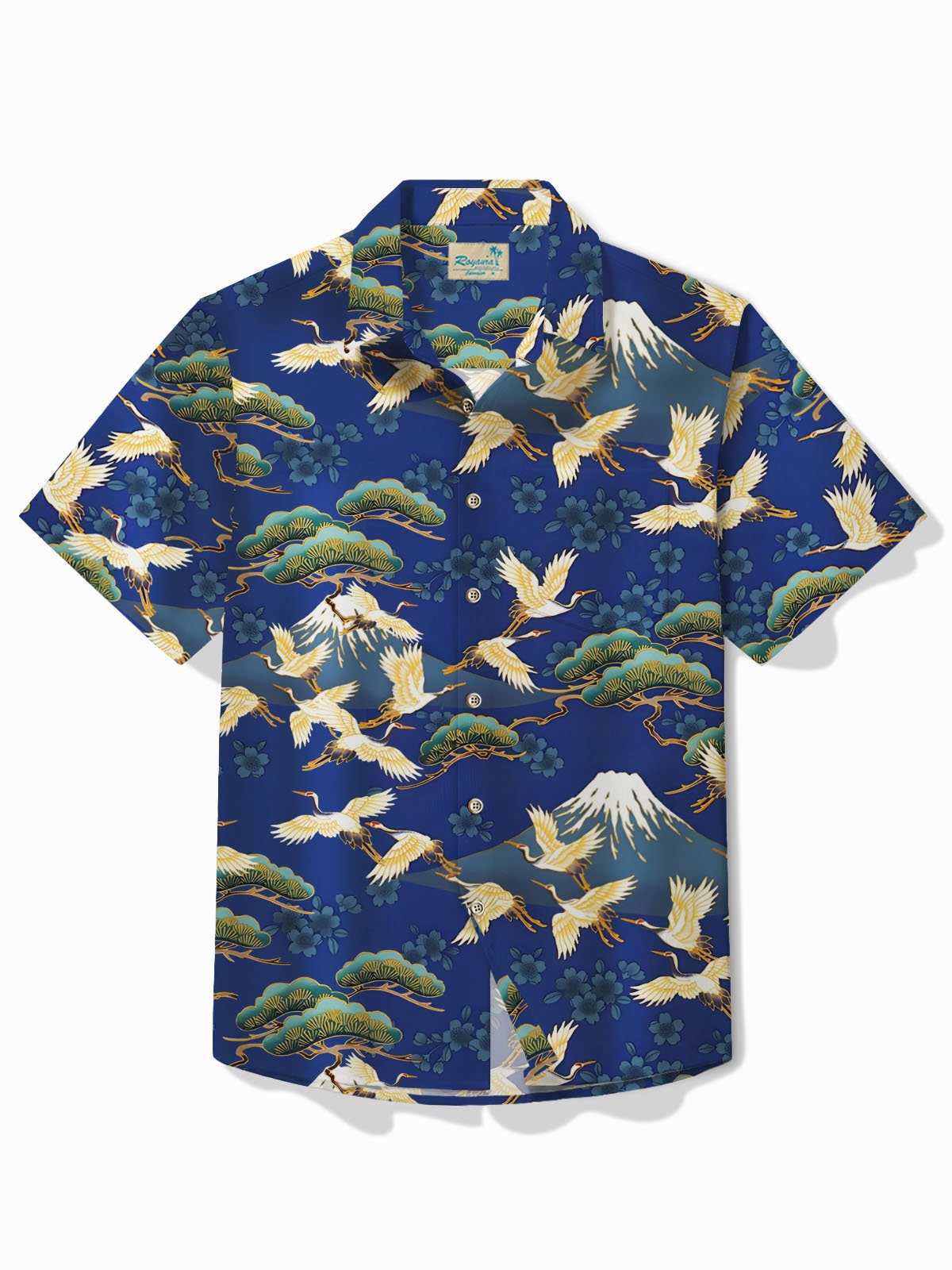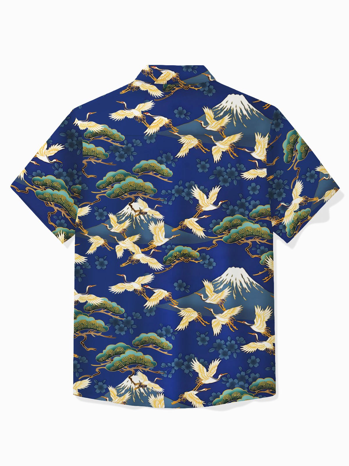 Camisa hawaiana azul oriental japonesa Alohadaddy para hombre, elástica, transpirable, cómoda, con bolsillo, para campamento, talla grande