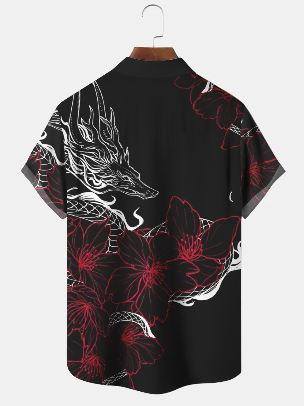 Camisa informal de manga corta con ilustración abstracta de dragón oriental para hombre