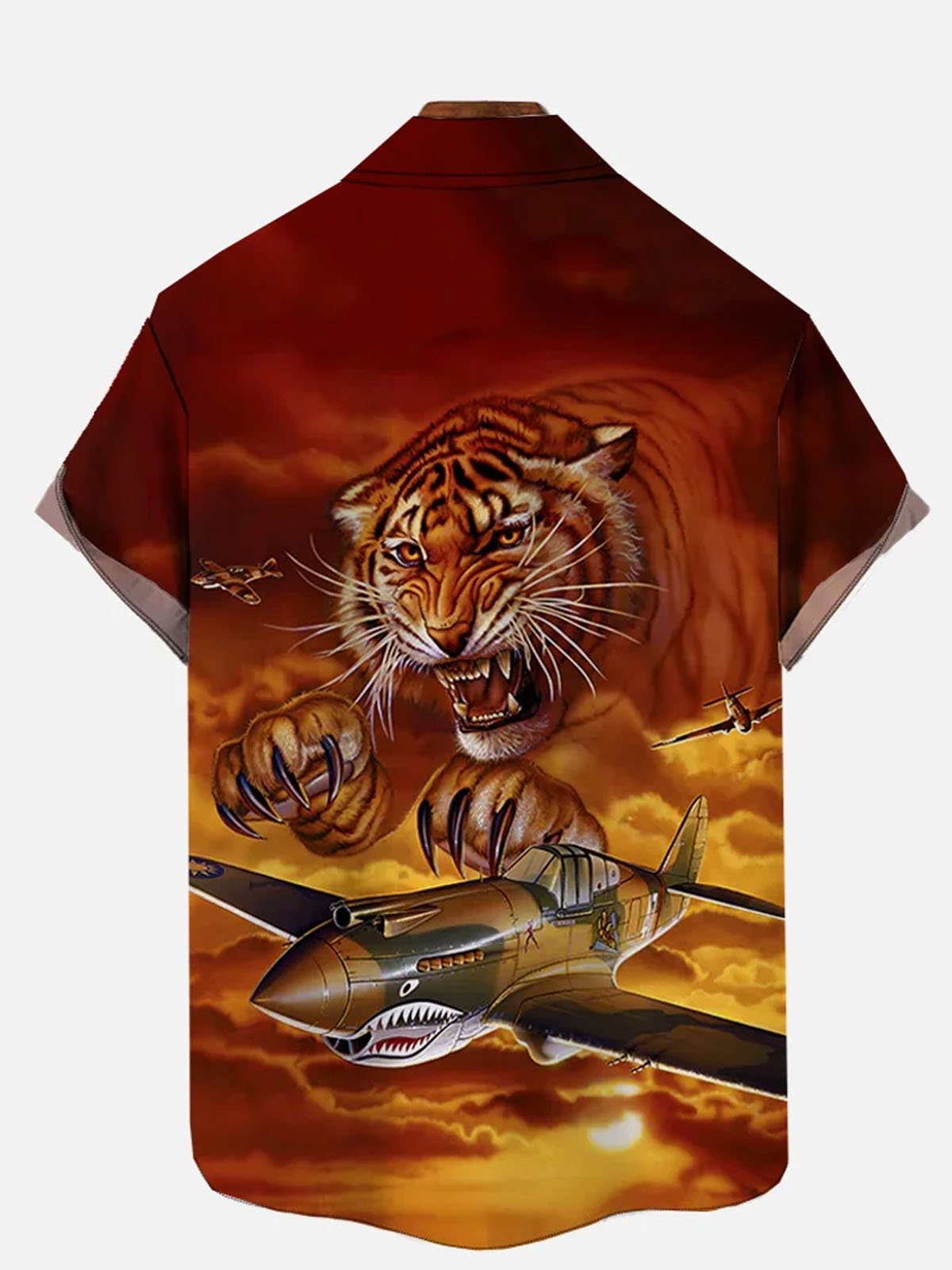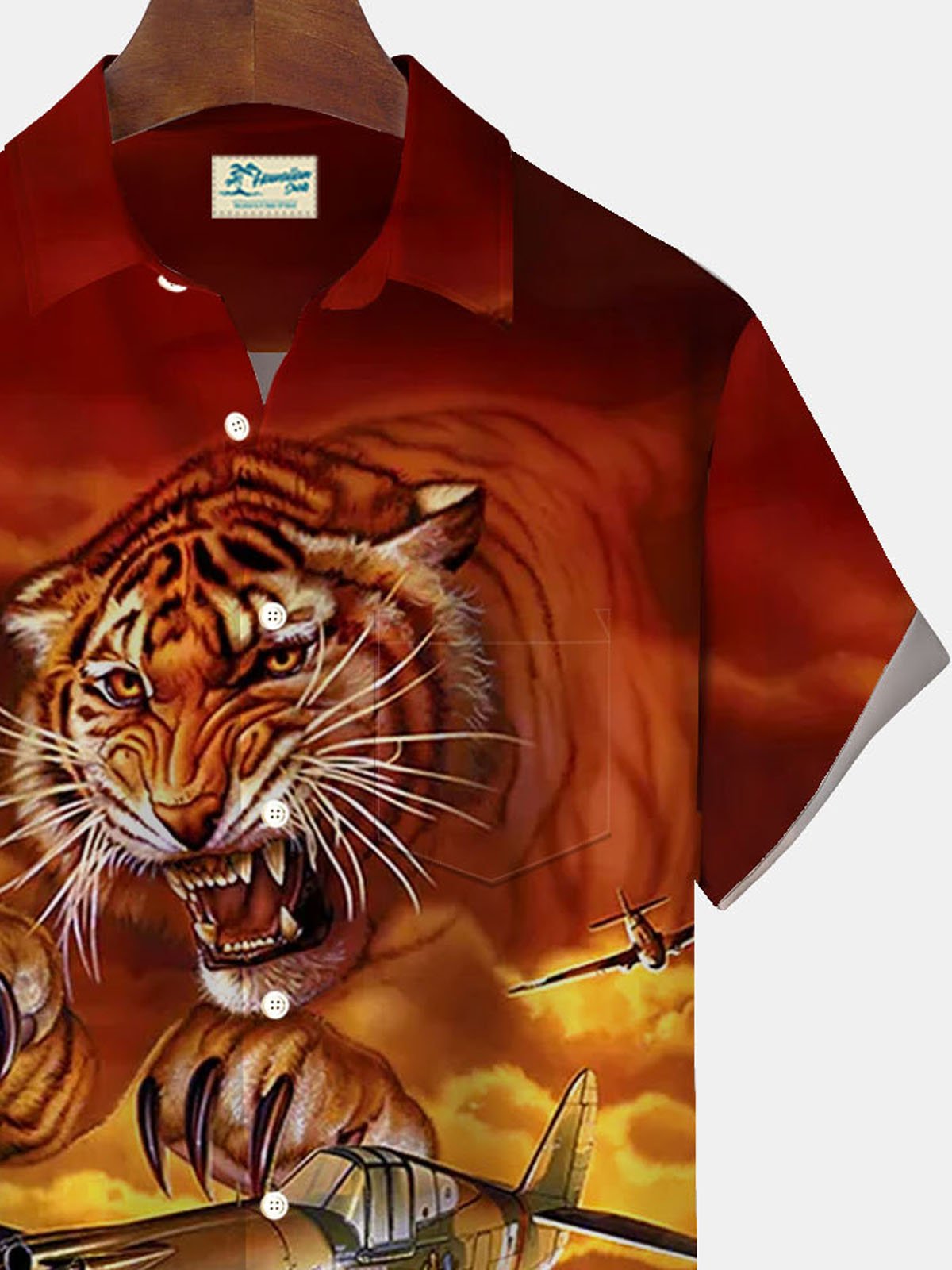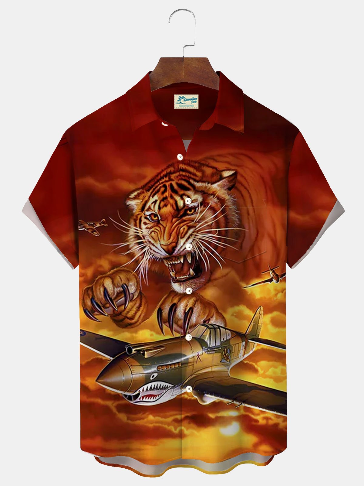 Camisa de manga corta con bolsillo abotonado y estampado retro de tigre de Alohadaddy para hombre