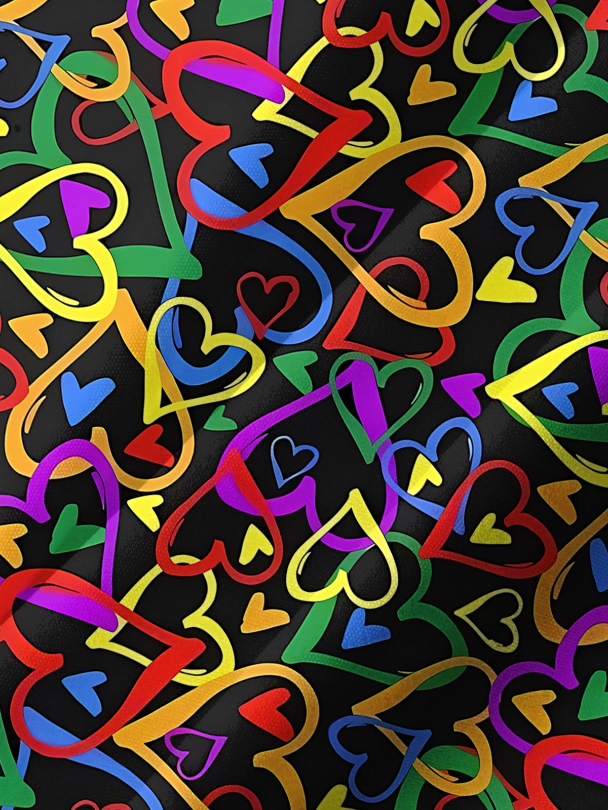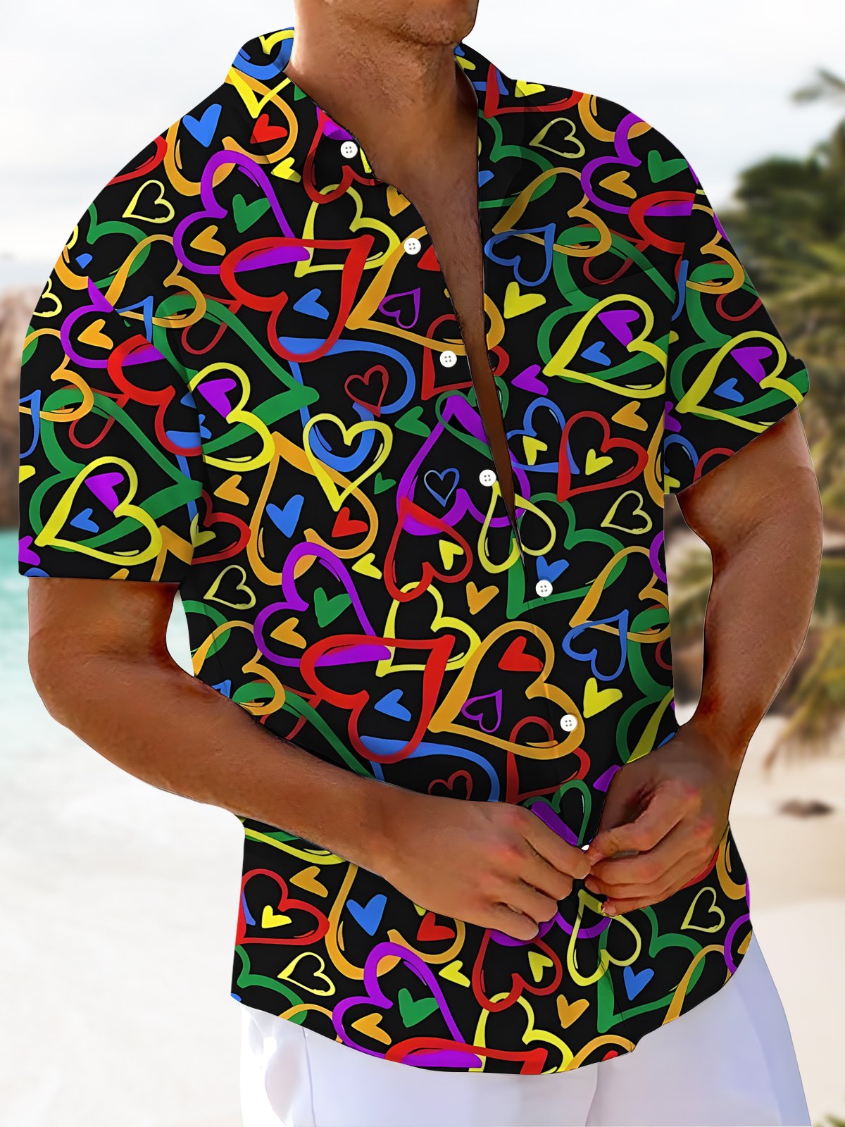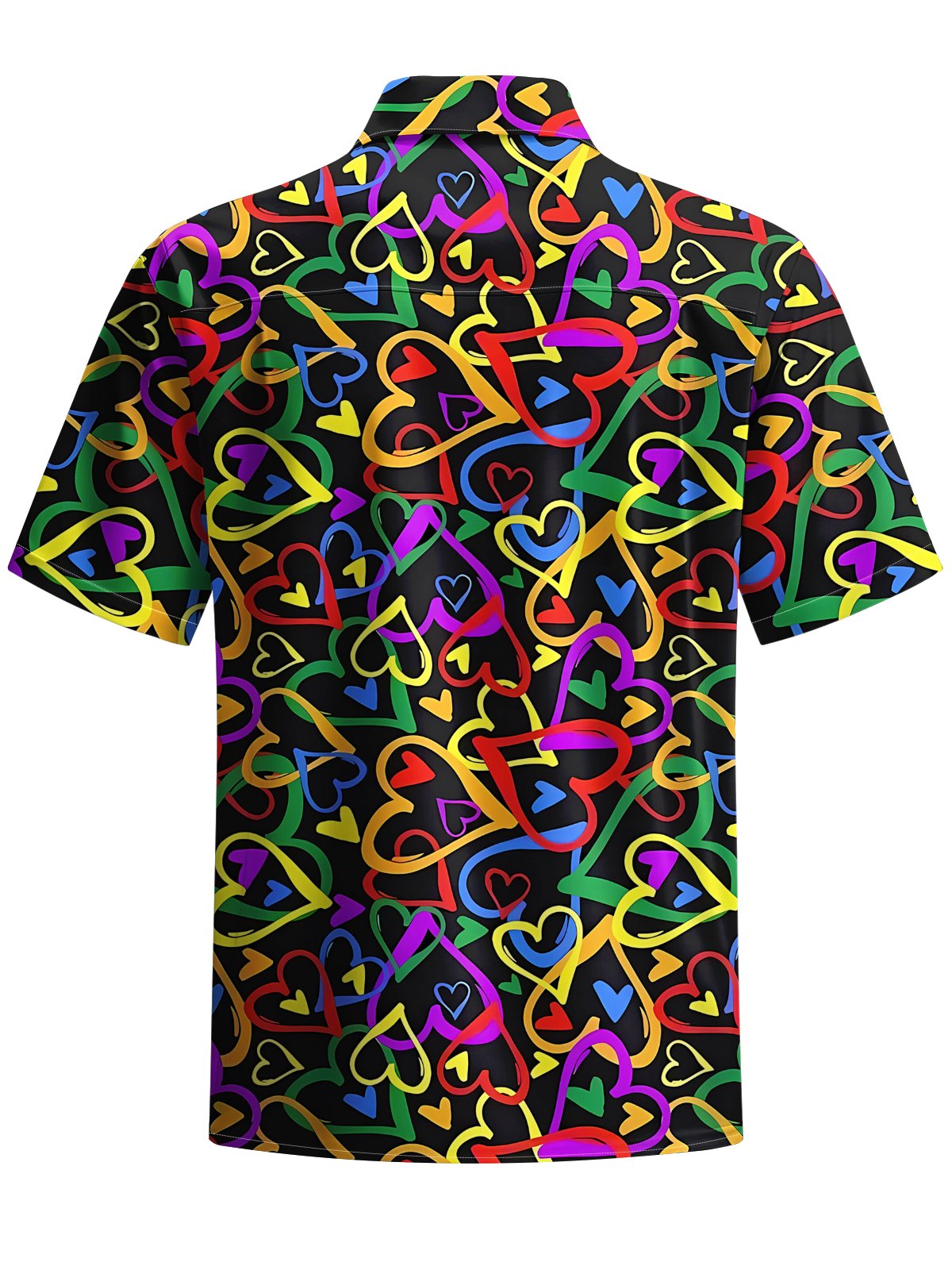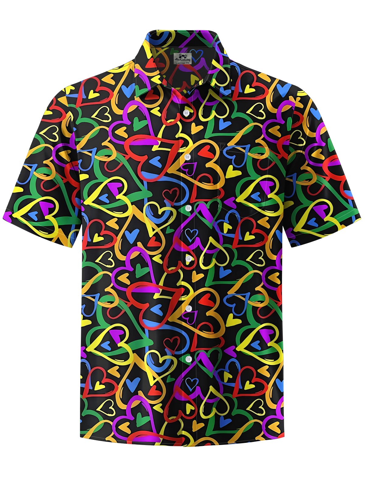 Alohadaddy® Casual Heart Geometric Art Print Chest Pocket Men's Short Sleeve Shirt Big & Tall