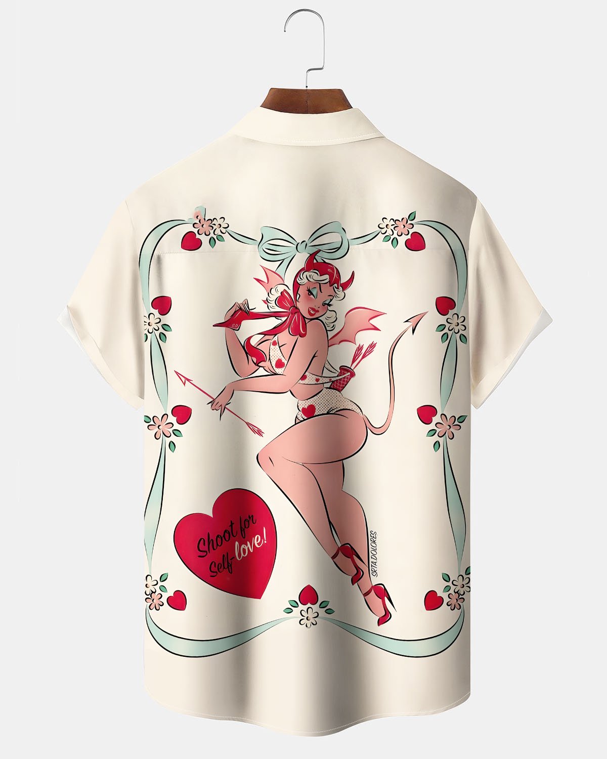 Alohadaddy® Retro Poster 60s Pin-Up Girl Abstract Print Art Button-Down Cardigan Pocket Men's Short-Sleeve Shirt Big & Tall
