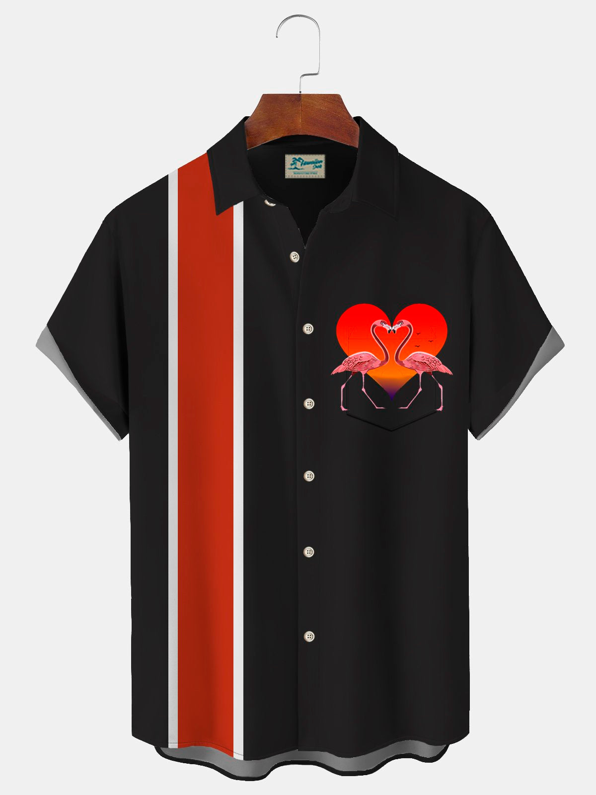 Camisa con bolsillo abotonado para hombre con estampado retro de flamencos y bolos para el Día de San Valentín de Alohadaddy