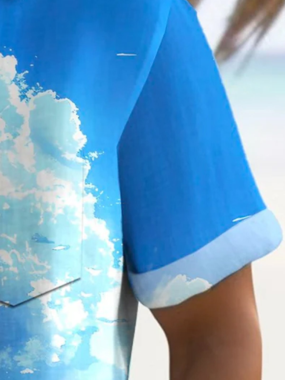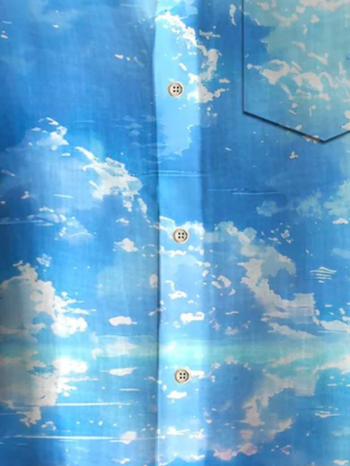 Alohadaddy® Hawaiian Beach Scenery Sky Clouds Pocket Button Shirt