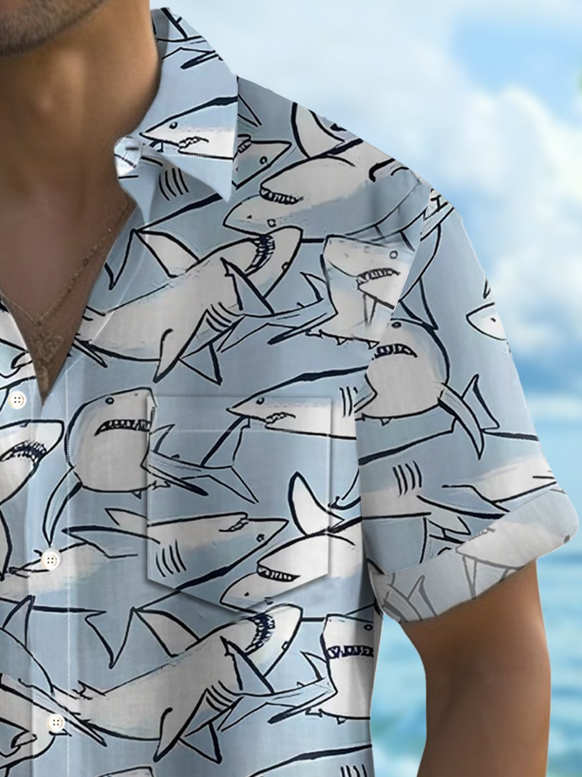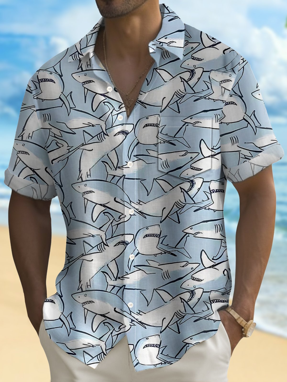 Camisa de manga corta con bolsillo y botones para hombre, con estampado 3D de tiburón ballena y criaturas marinas de Hawaii de Alohadaddy, talla grande y alta