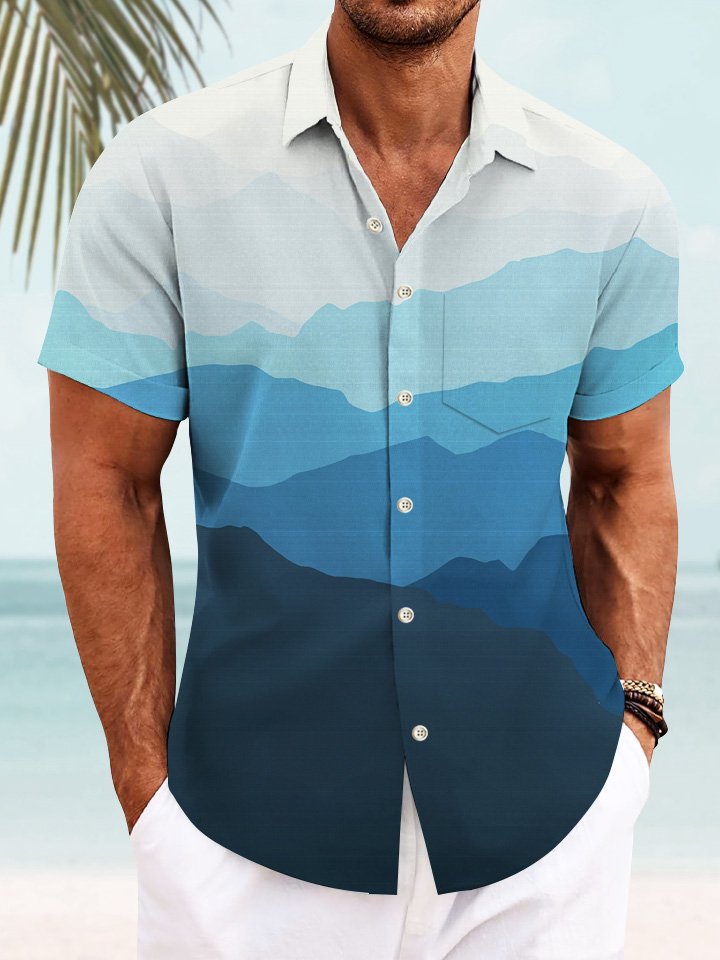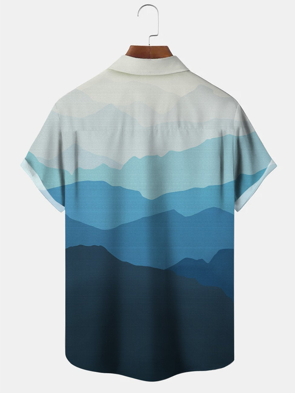 Camisa informal de manga corta con bolsillo y botones para hombre, estilo bolos, estilo años 50, con degradado geométrico de montañas Alohadaddy