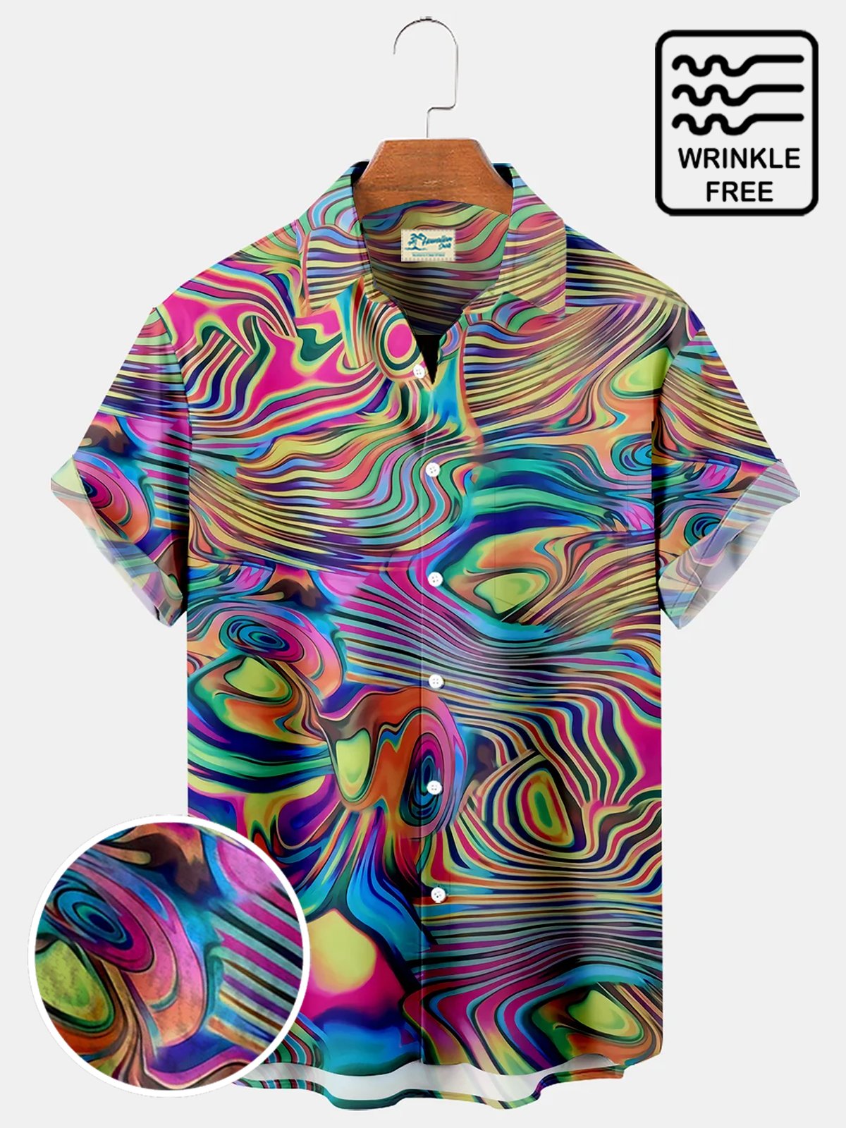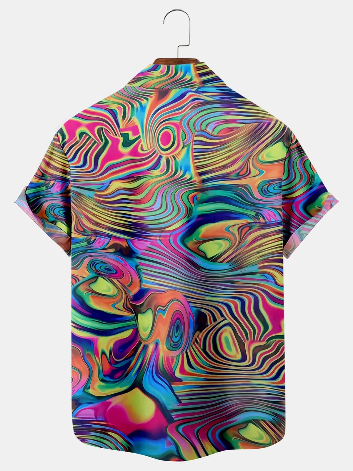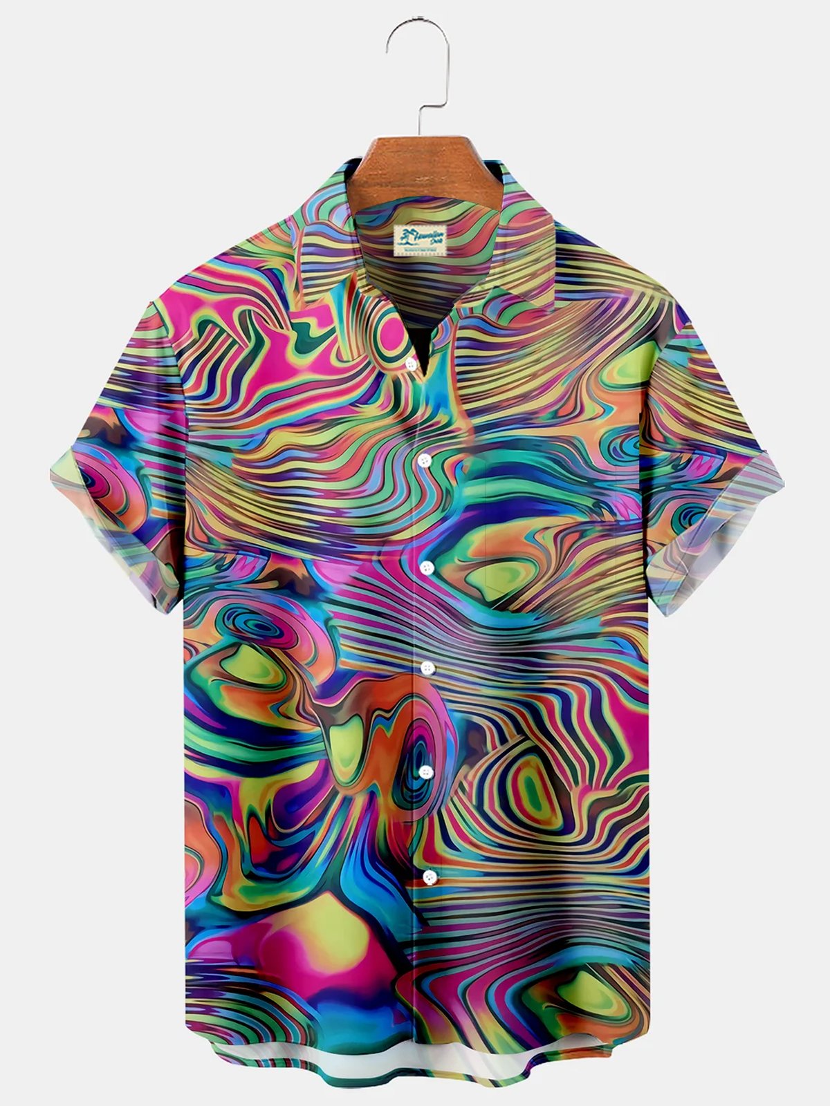 Camisa hawaiana con bolsillo en el pecho y diseño ombré de neón de Alohadaddy Camisa de vacaciones extragrande sin arrugas