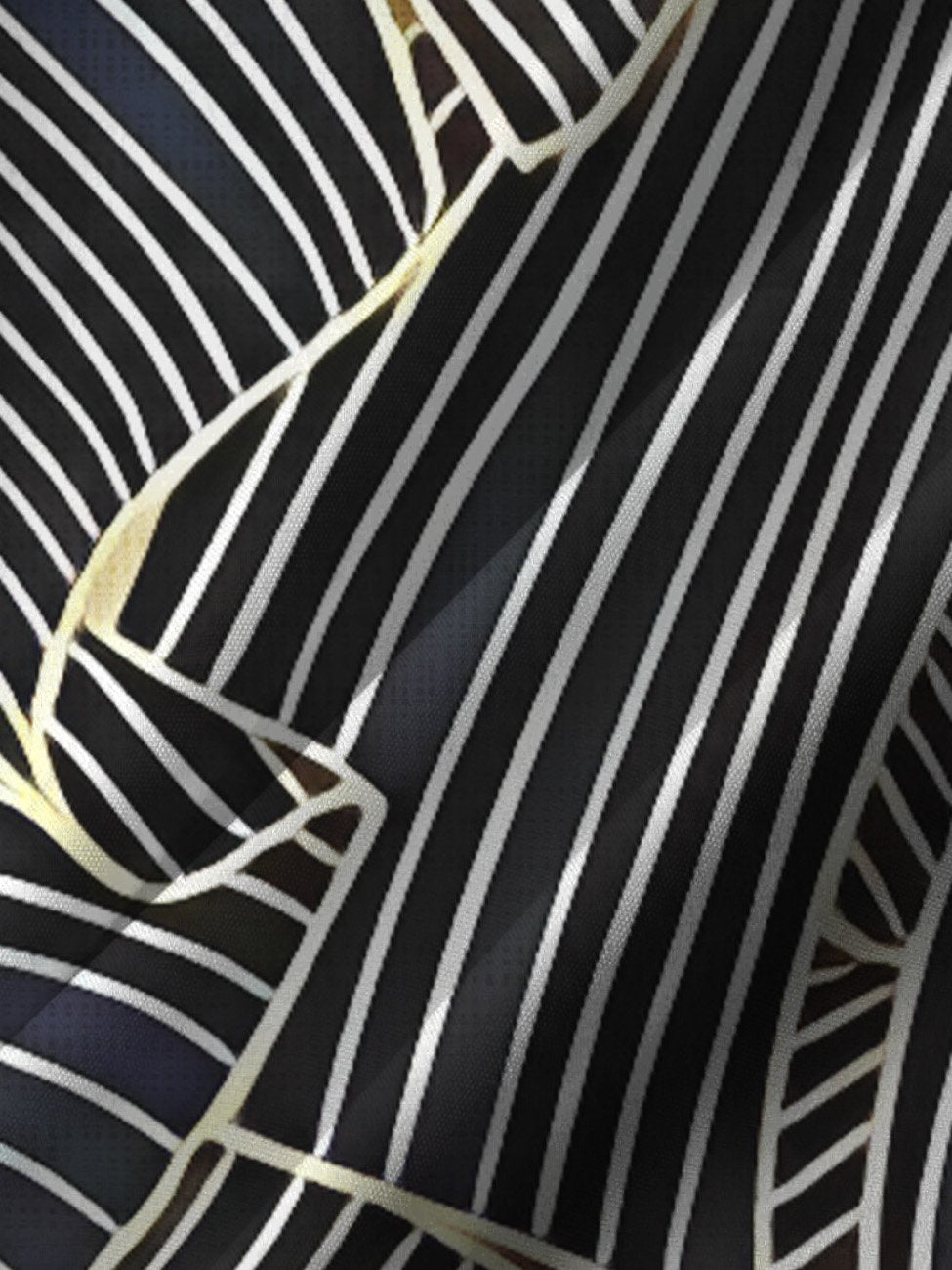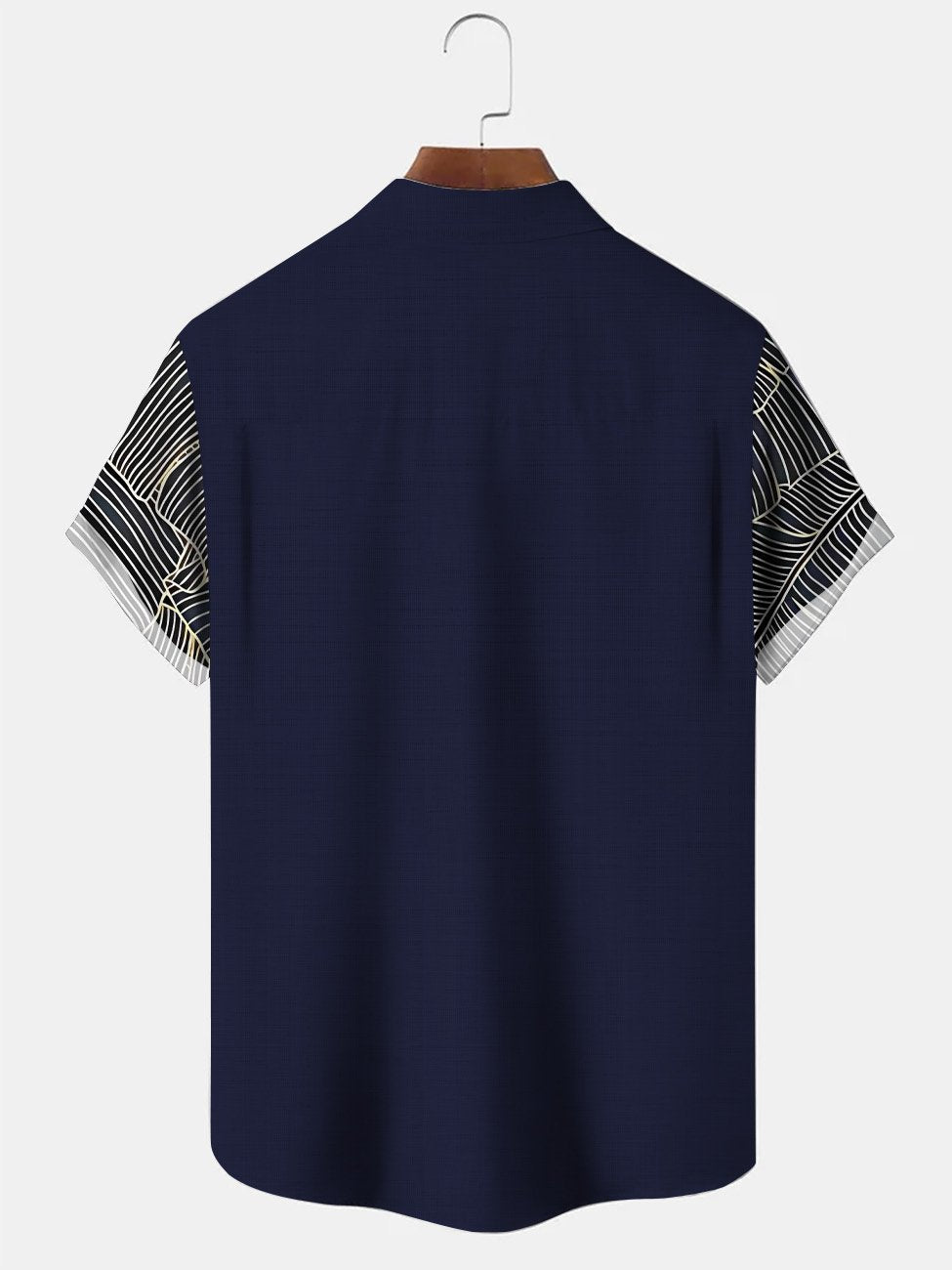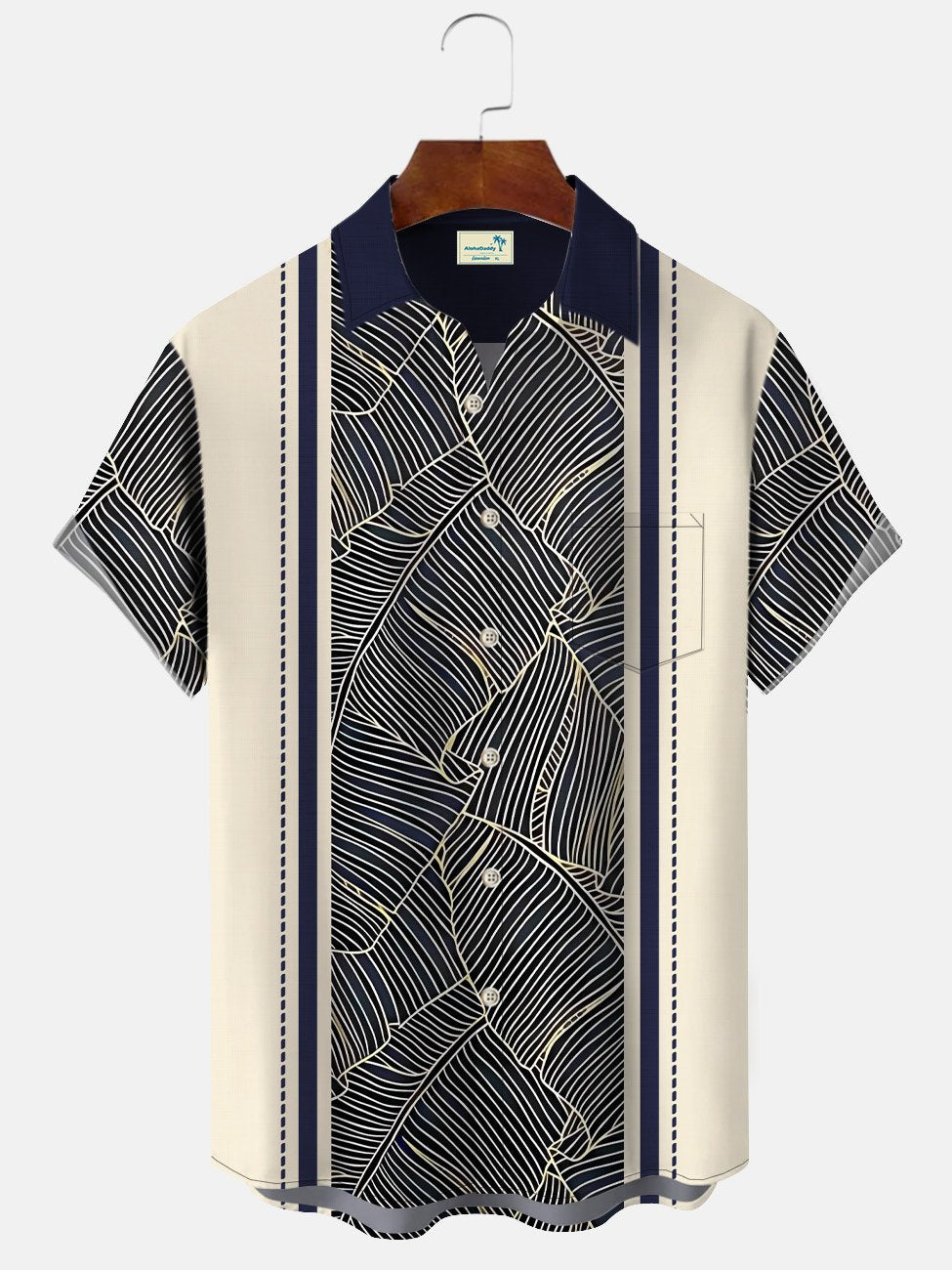 Camisa informal de manga corta para hombre, estilo años 50, con botones, bolsillos y líneas geométricas, con diseño de plantas y hojas de Alohadaddy