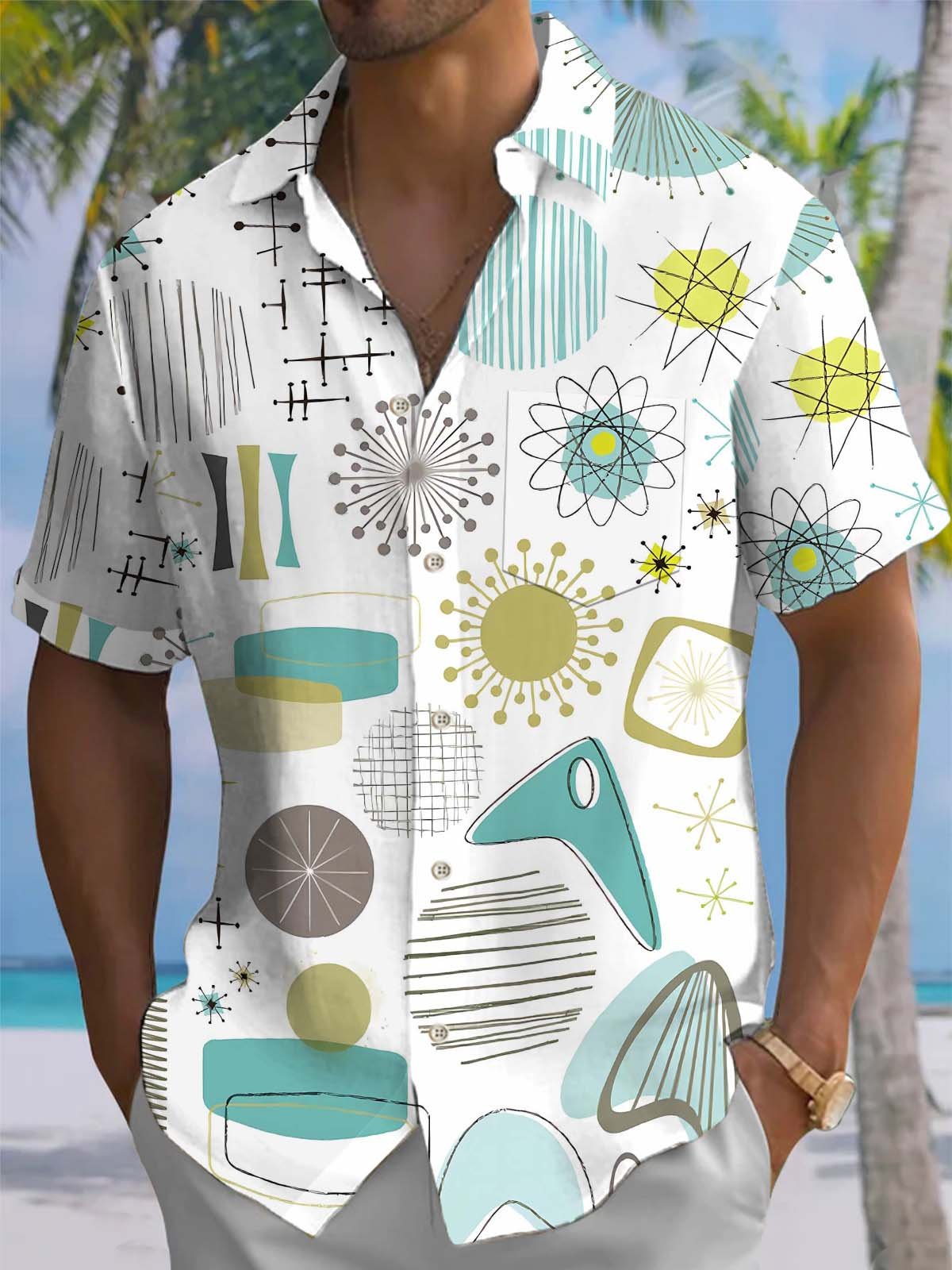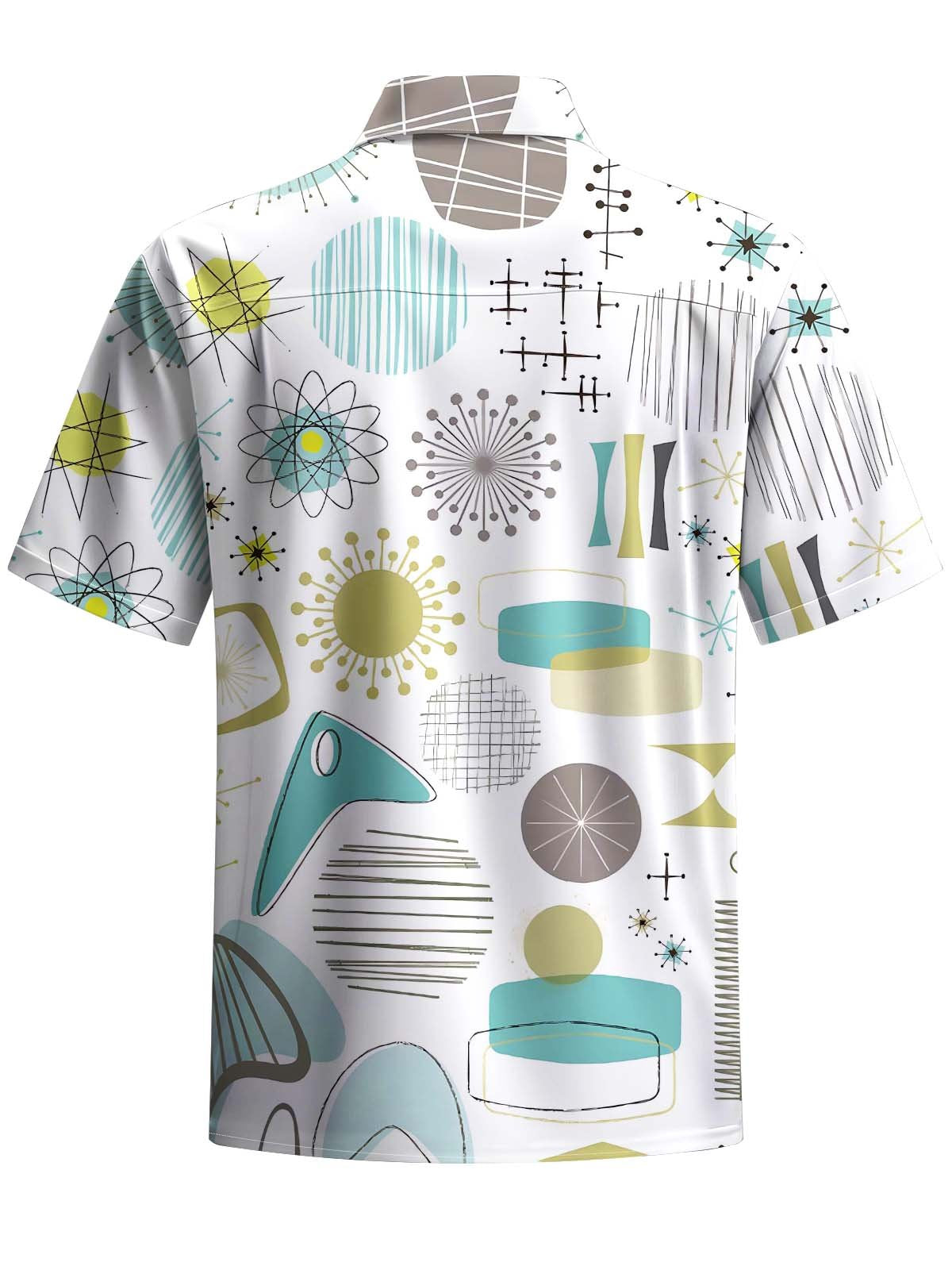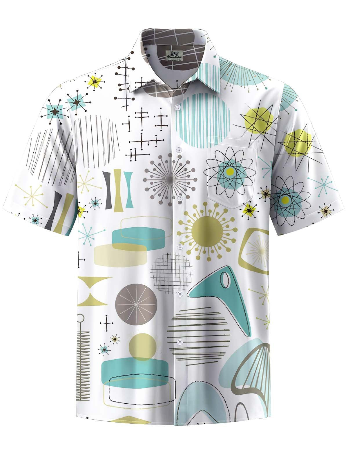 Alohadaddy® Casual Geometric Art Print Chest Pocket Stretch Men's Short Sleeve Shirt Big & Tall