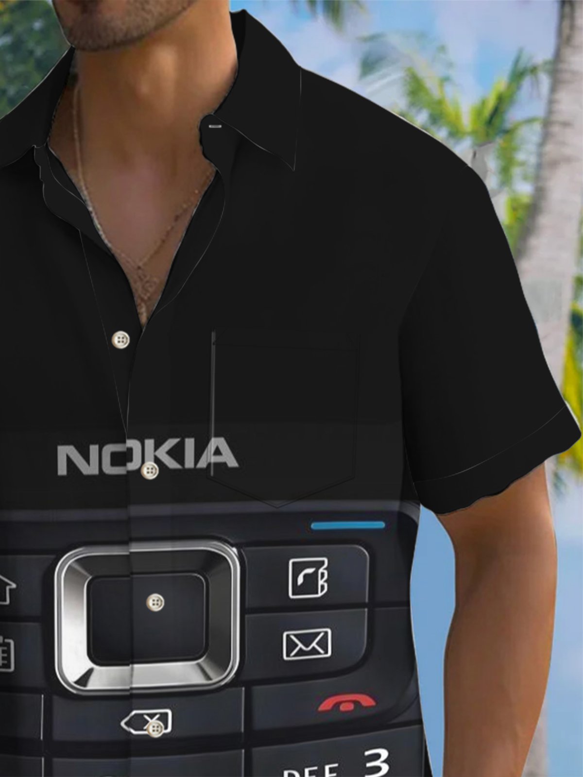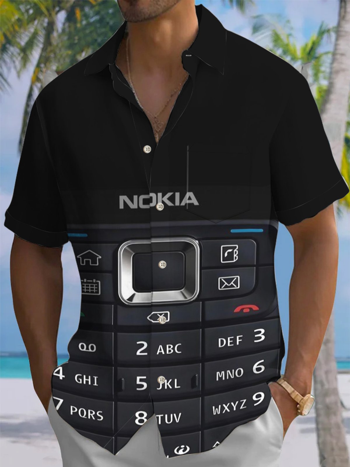 Alohadaddy® Casual Keyboard Print Art Pocket Stretch Men's Short Sleeve Shirt Big & Tall