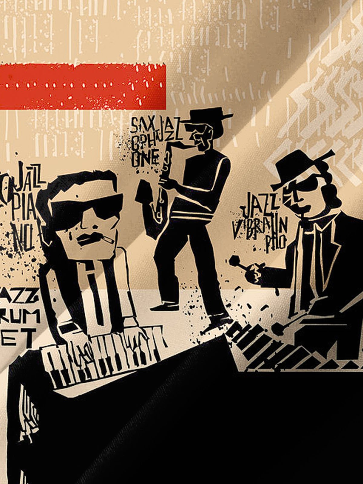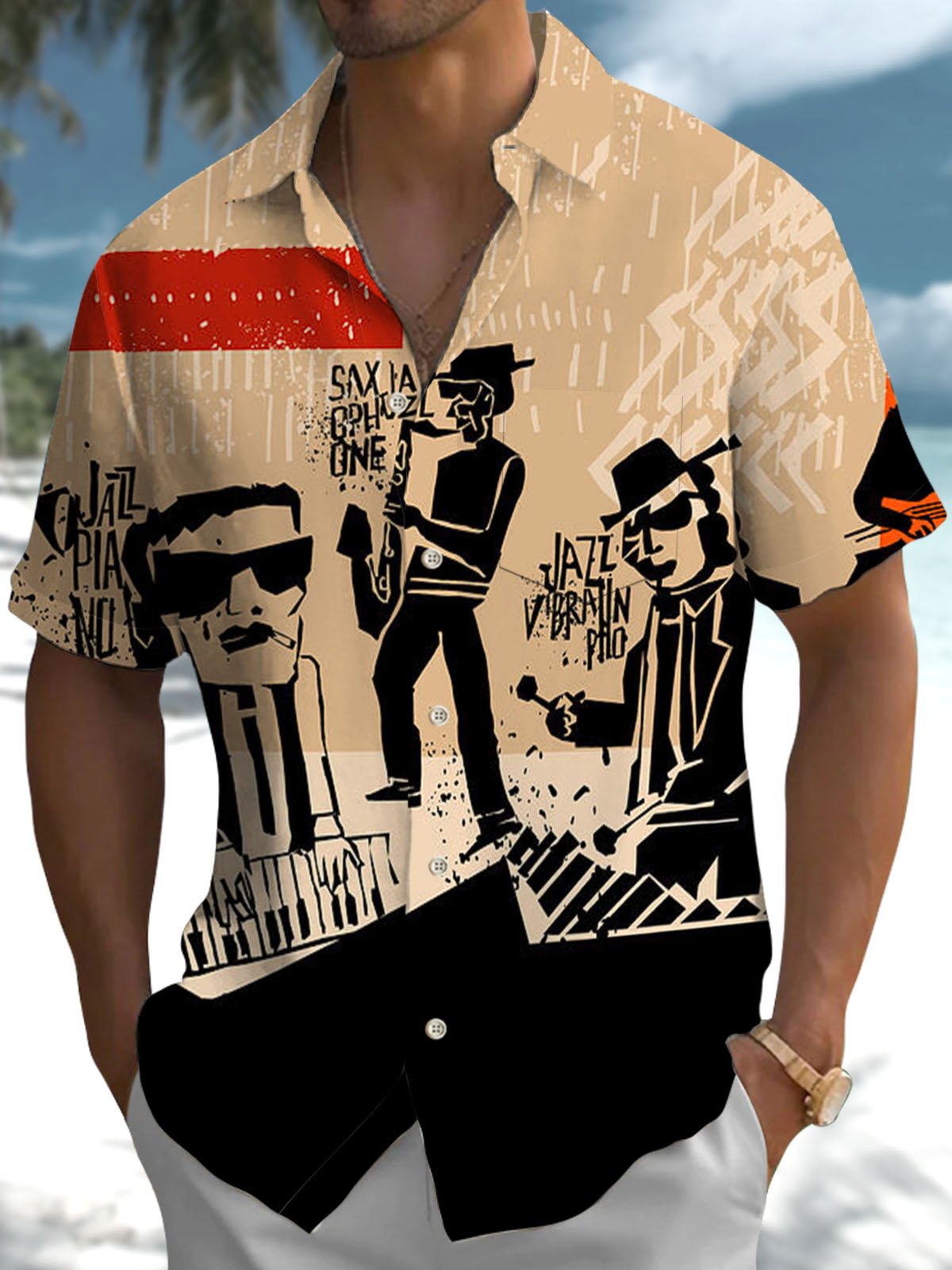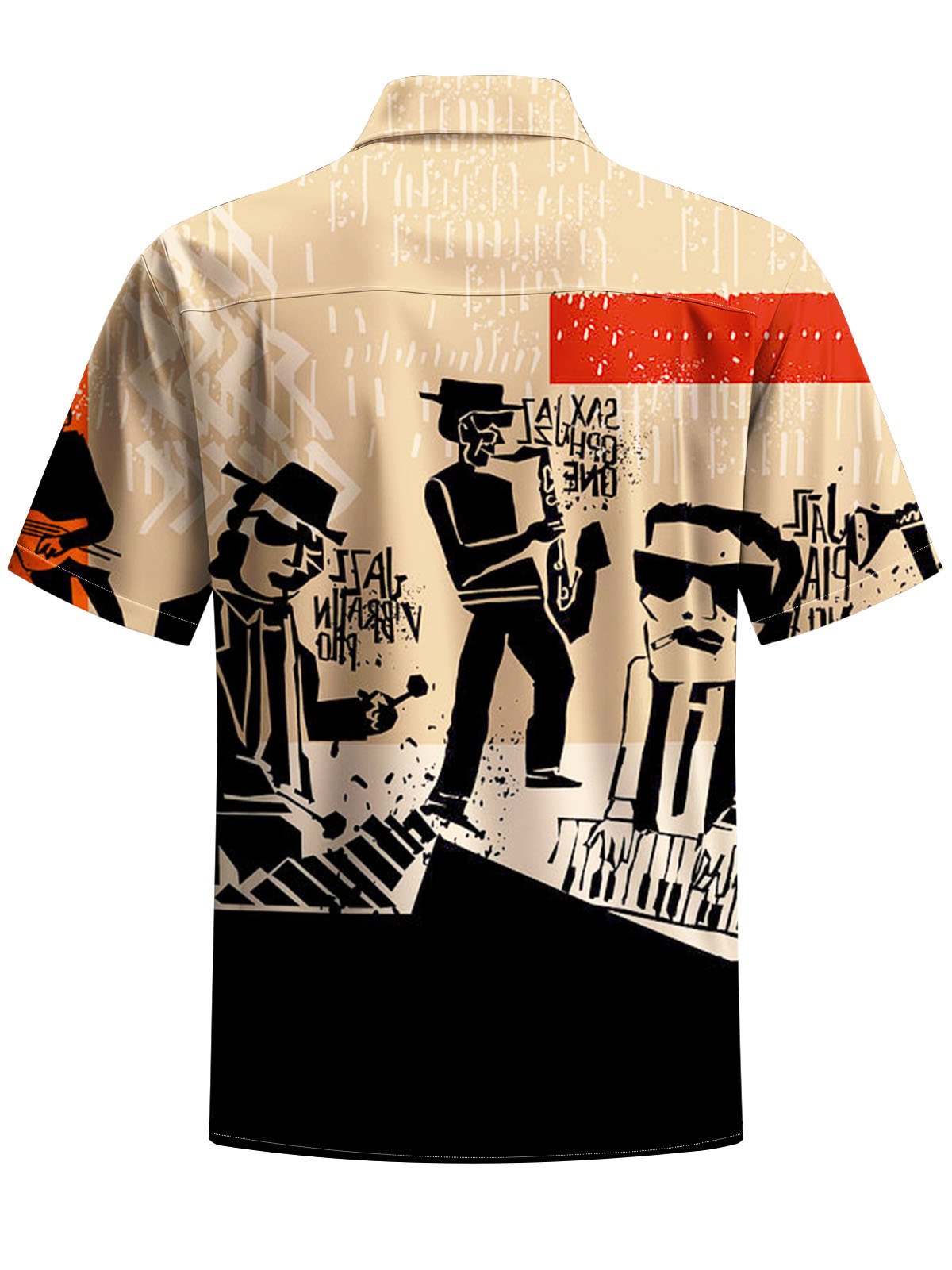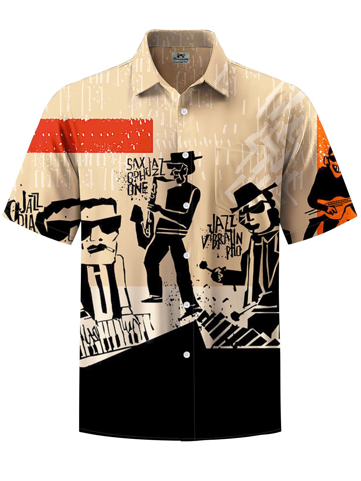 Alohadaddy® Retro Geometric Jazz Art Print Stretch Pocket Men's Short Sleeve Shirt Big & Tall