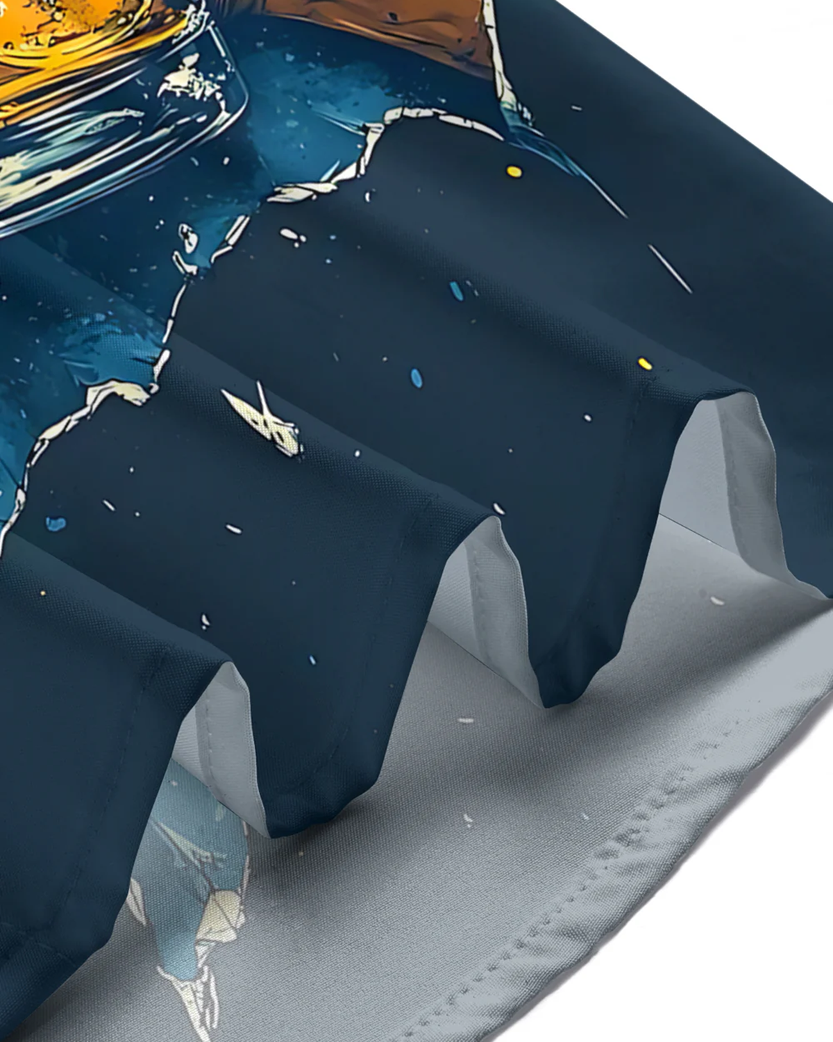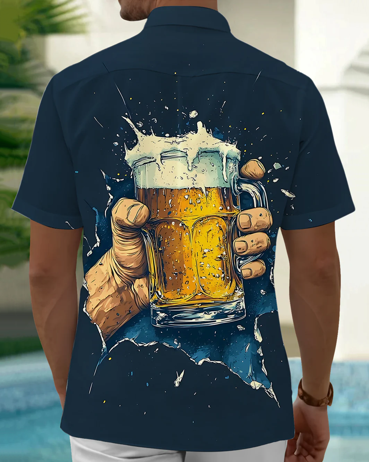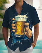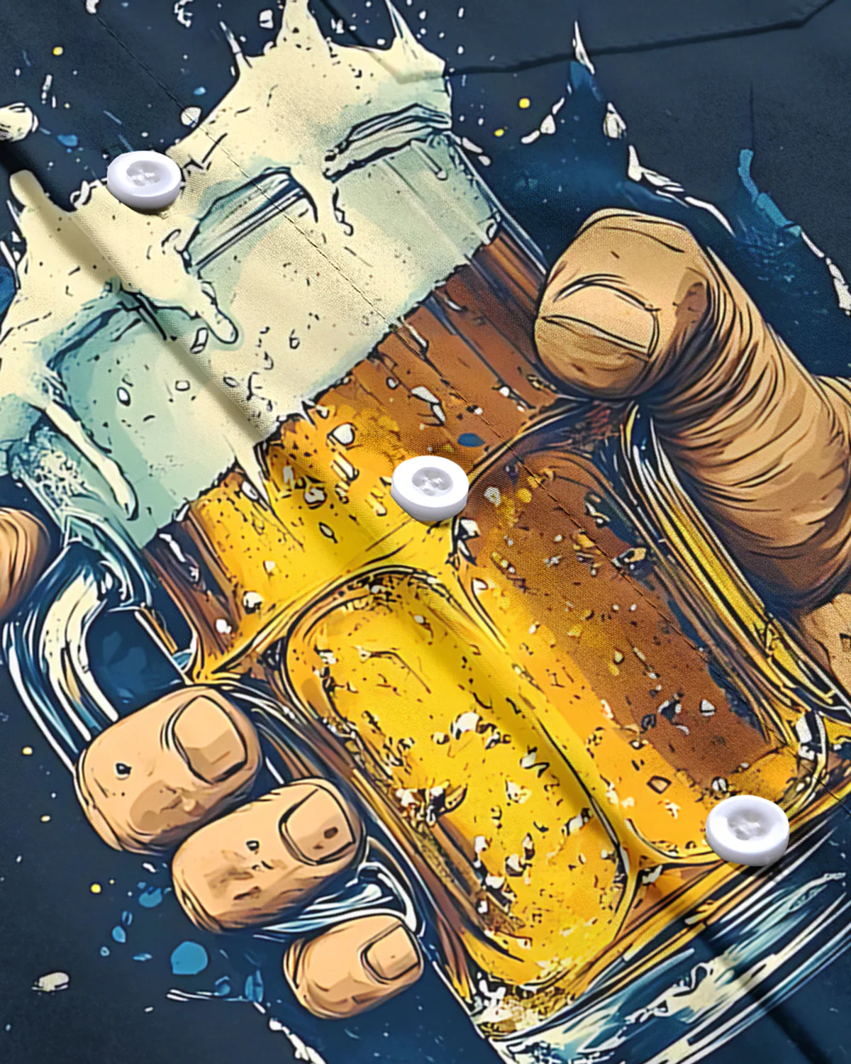 Alohadaddy® Vintage Beer Art Print Pocket Elastic Button Men's Short Sleeve Shirt Big & Tall