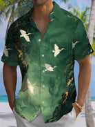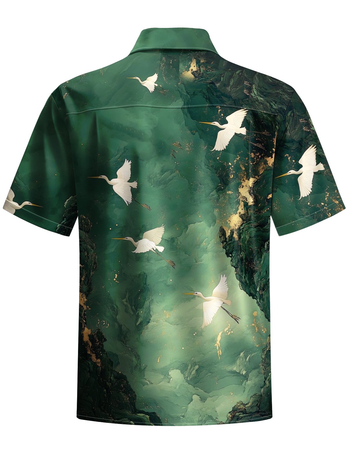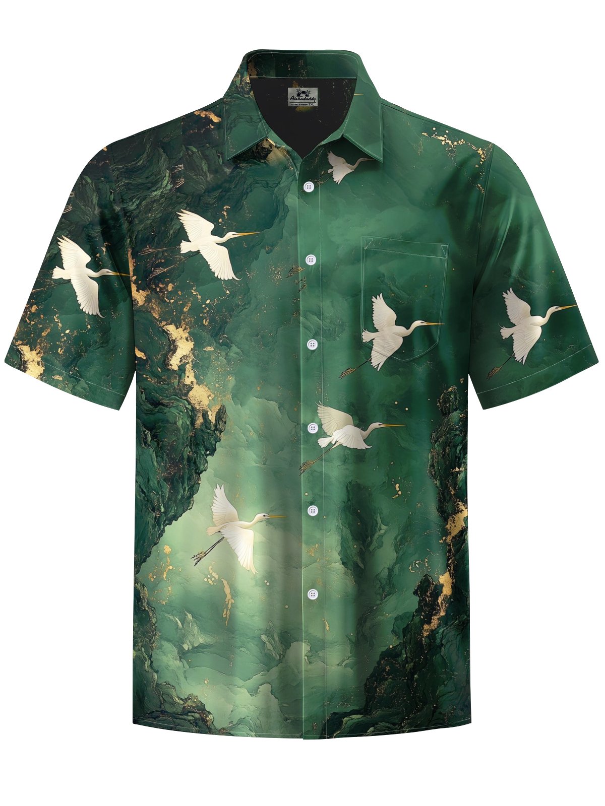 Alohadaddy® Vintage Bird Art Print Chest Pocket Men's Short Sleeve Shirt Big & Tall