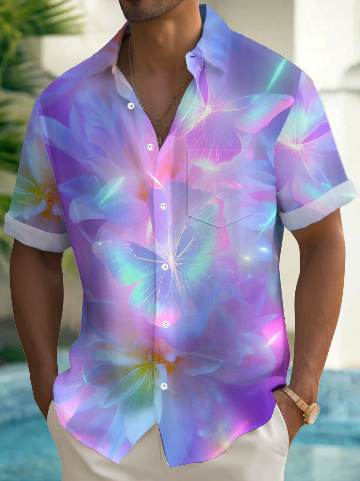 Alohadaddy® Vintage Gradient Butterfly Print Men's Button Pocket Short Sleeve Shirt Big & Tall