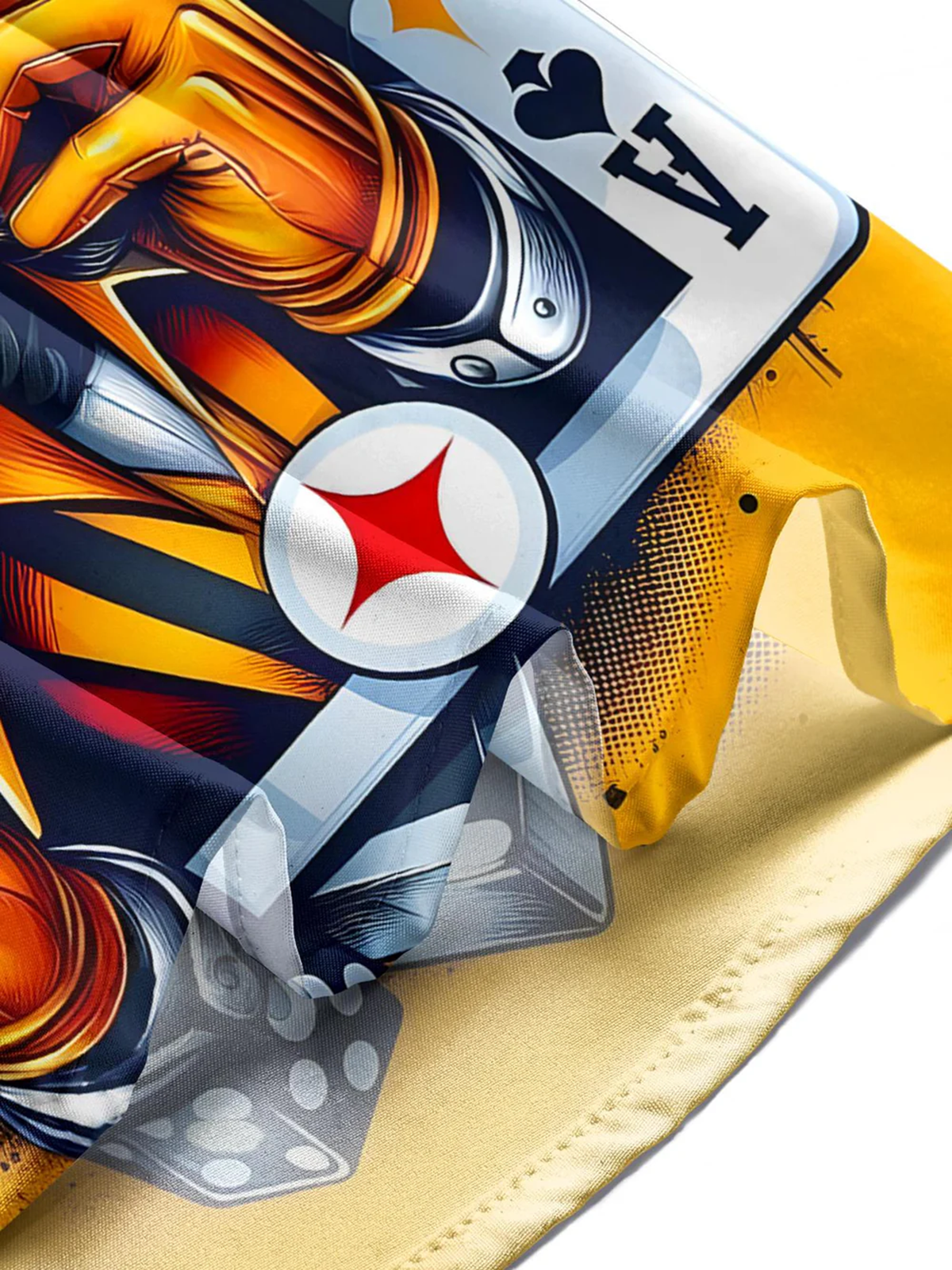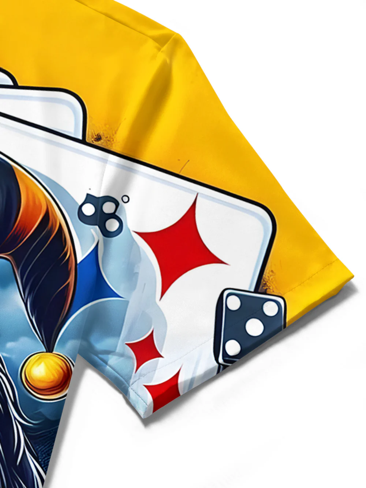 Alohadaddy® Vintage Joker Poker Art Print Chest Pocket Stretch Men's Short Sleeve Shirt Big & Tall