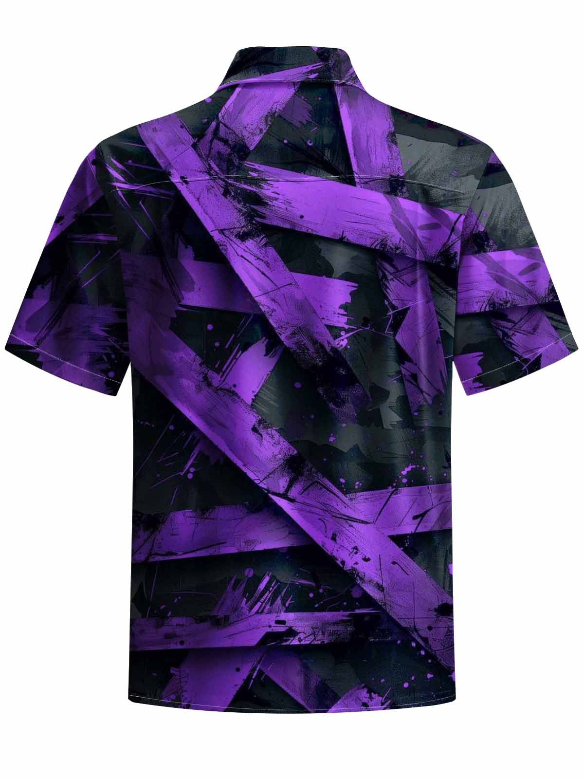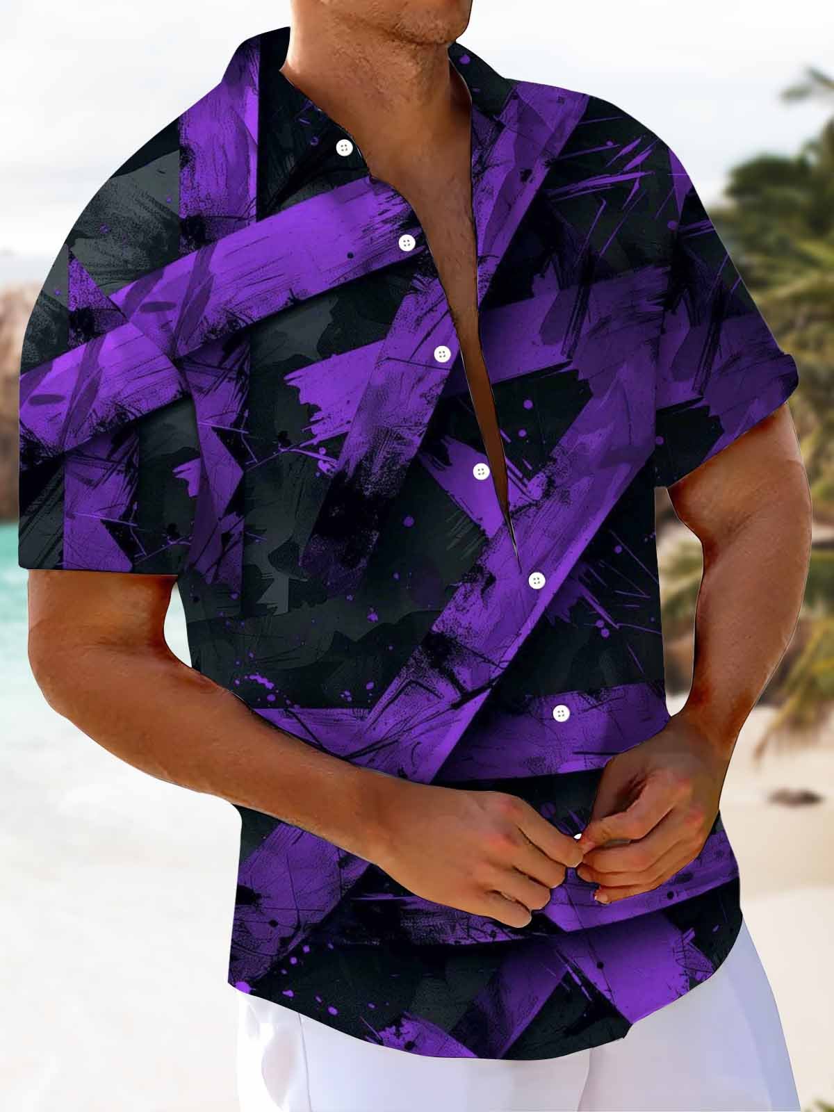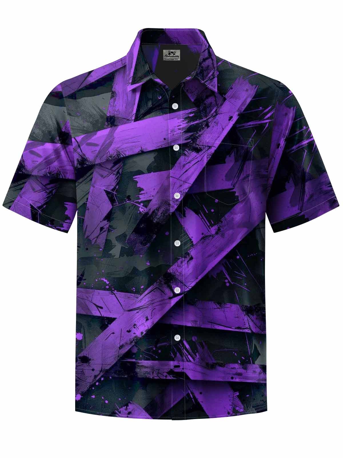 Alohadaddy® Casual Abstract Stripe Art Print Chest Pocket Men's Stretch Short Sleeve Shirt Big & Tall