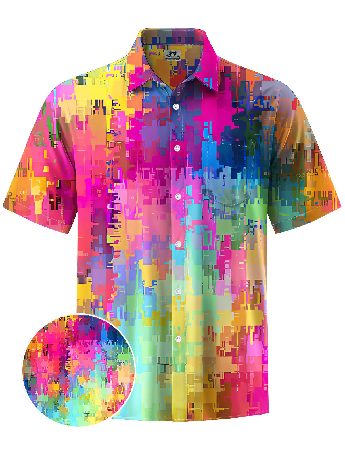 Alohadaddy® Casual Abstract Texture Art Print Chest Pocket Men Short Sleeve Shirt Big & Tall