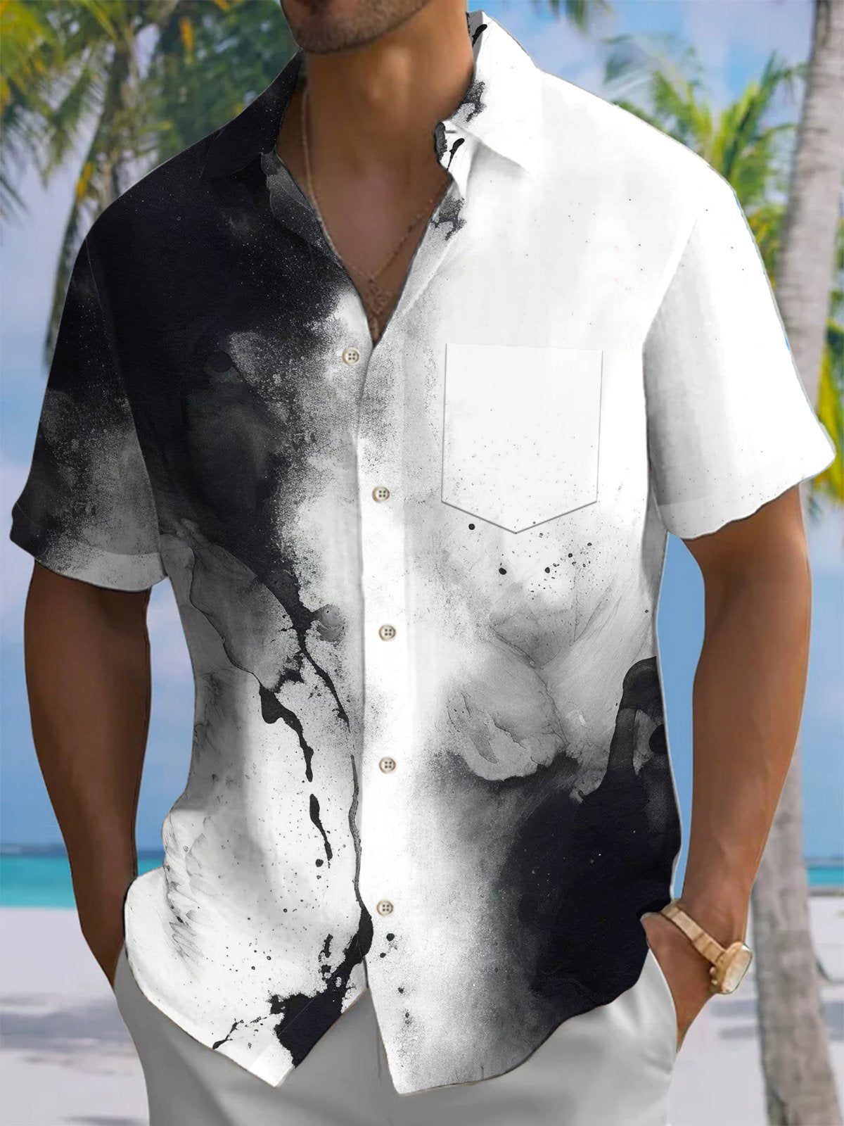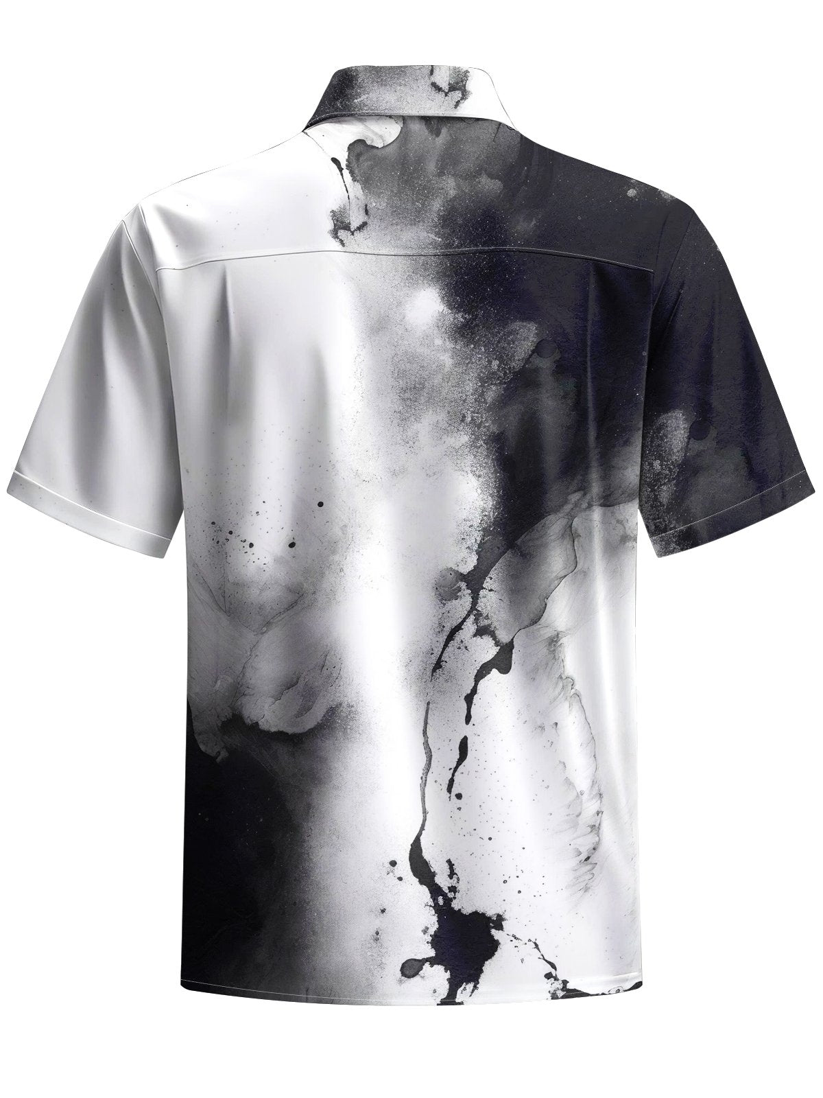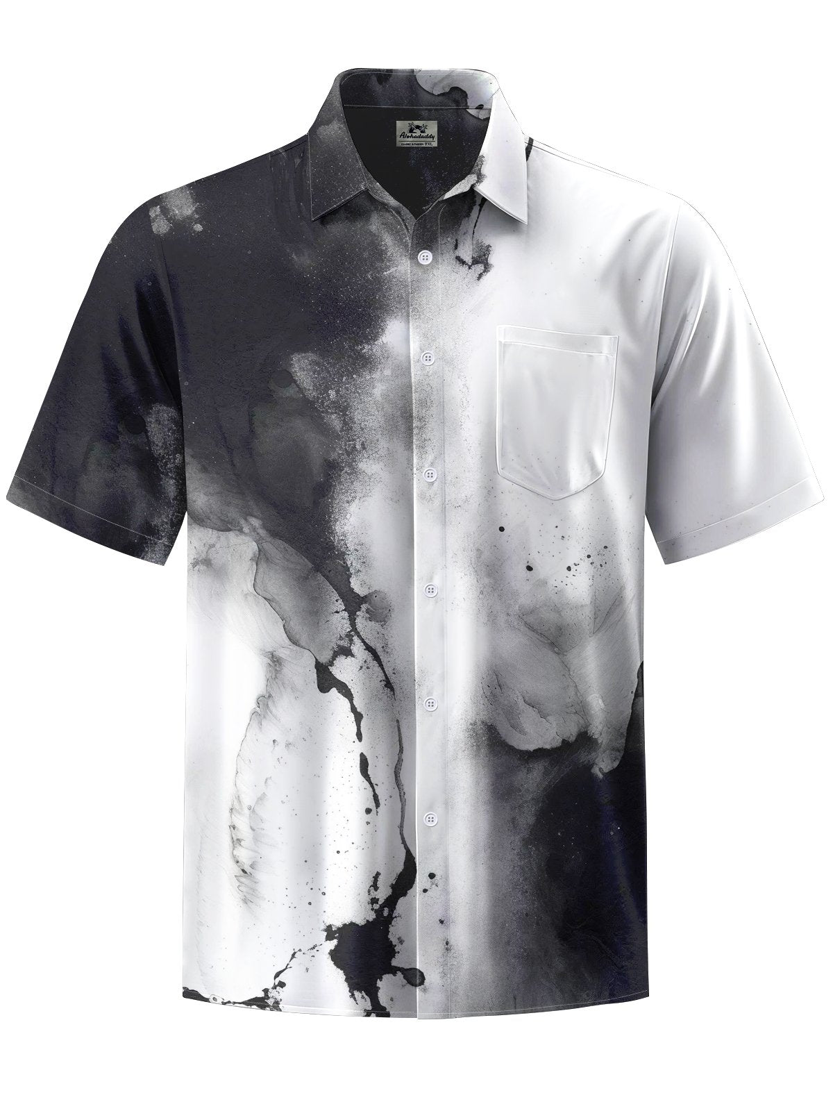 Alohadaddy® Casual Abstract Texture Ink Art Print Chest Pocket Men's Stretch Short Sleeve Shirt Big & Tall