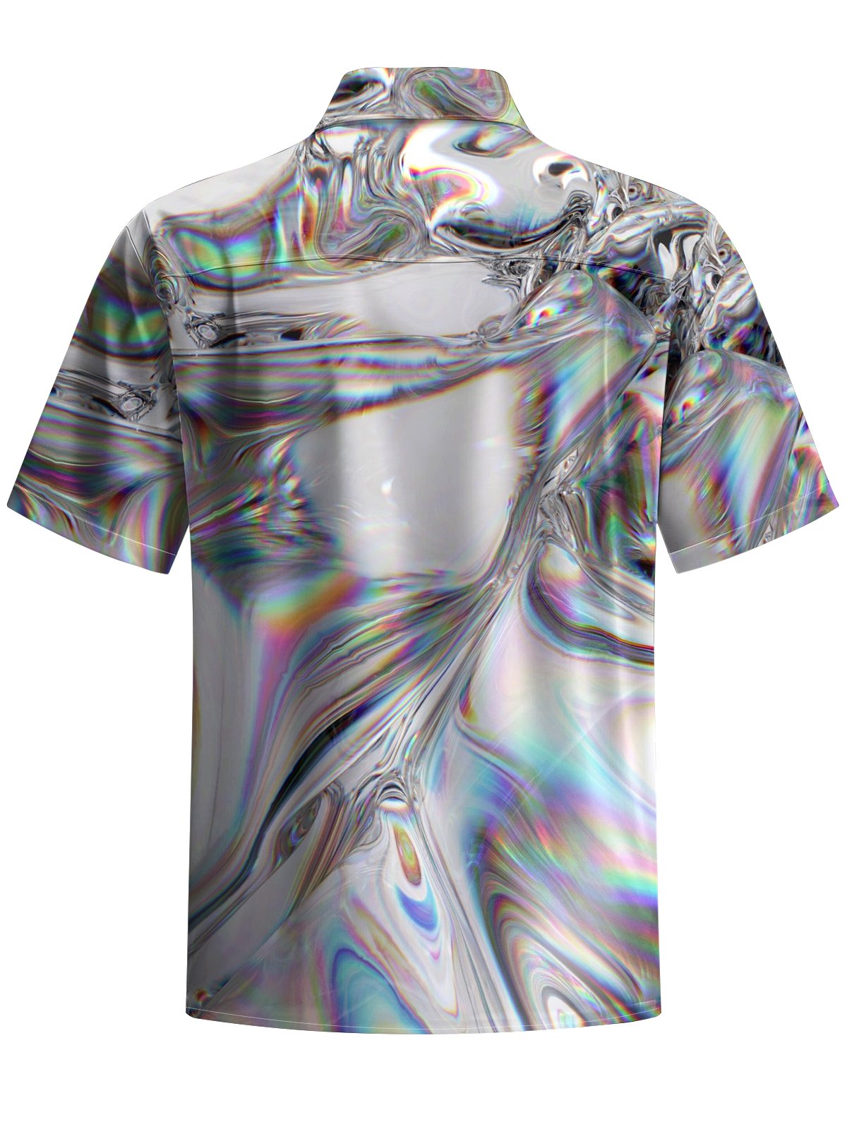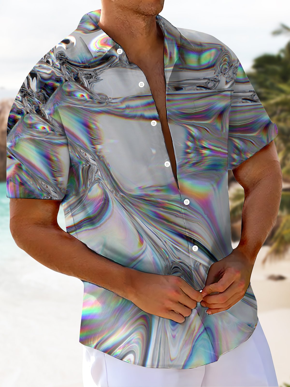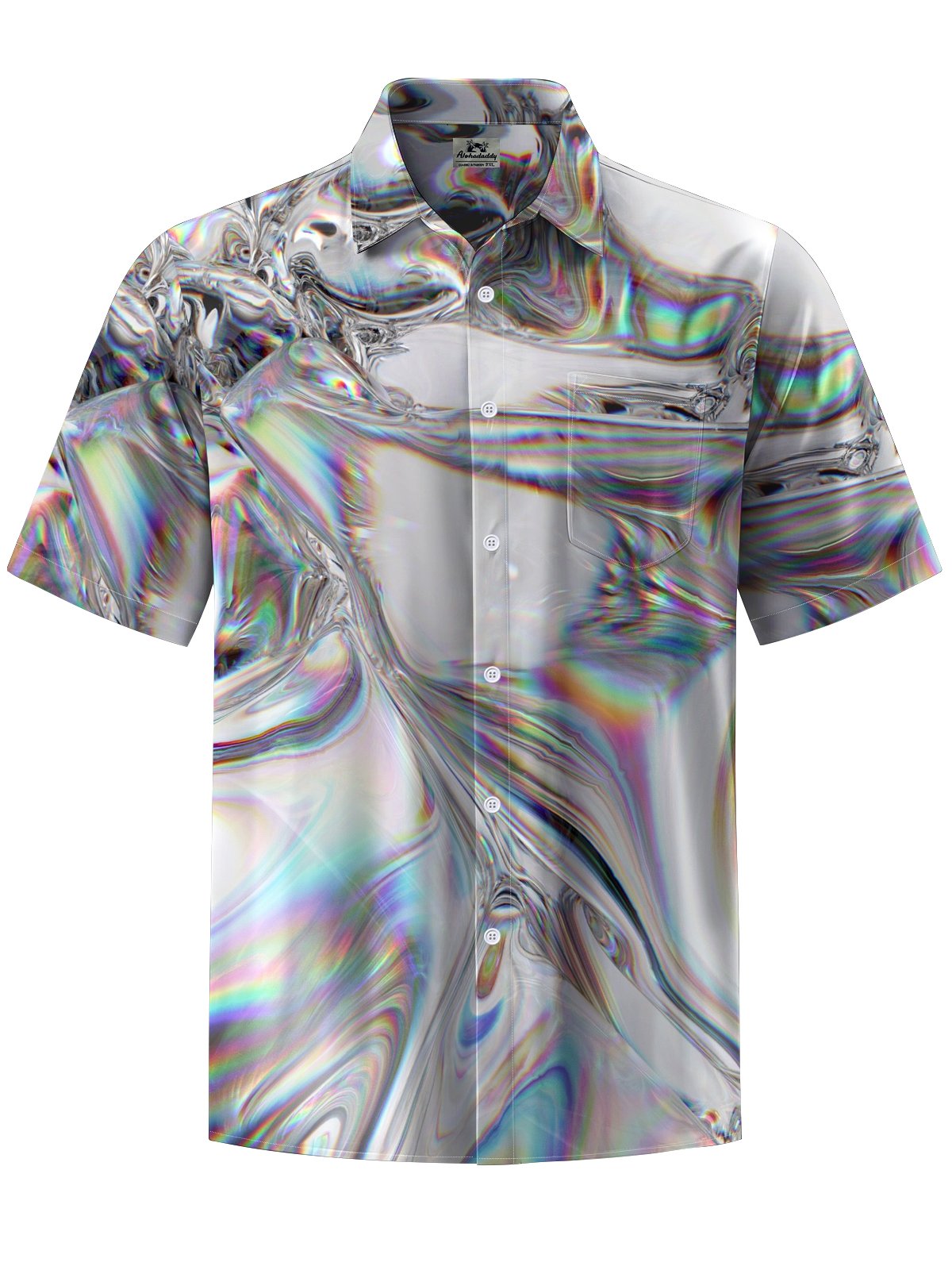 Alohadaddy® Casual Abstract Texture Print Art Chest Pocket Men's Stretch Short Sleeve Shirt Big & Tall