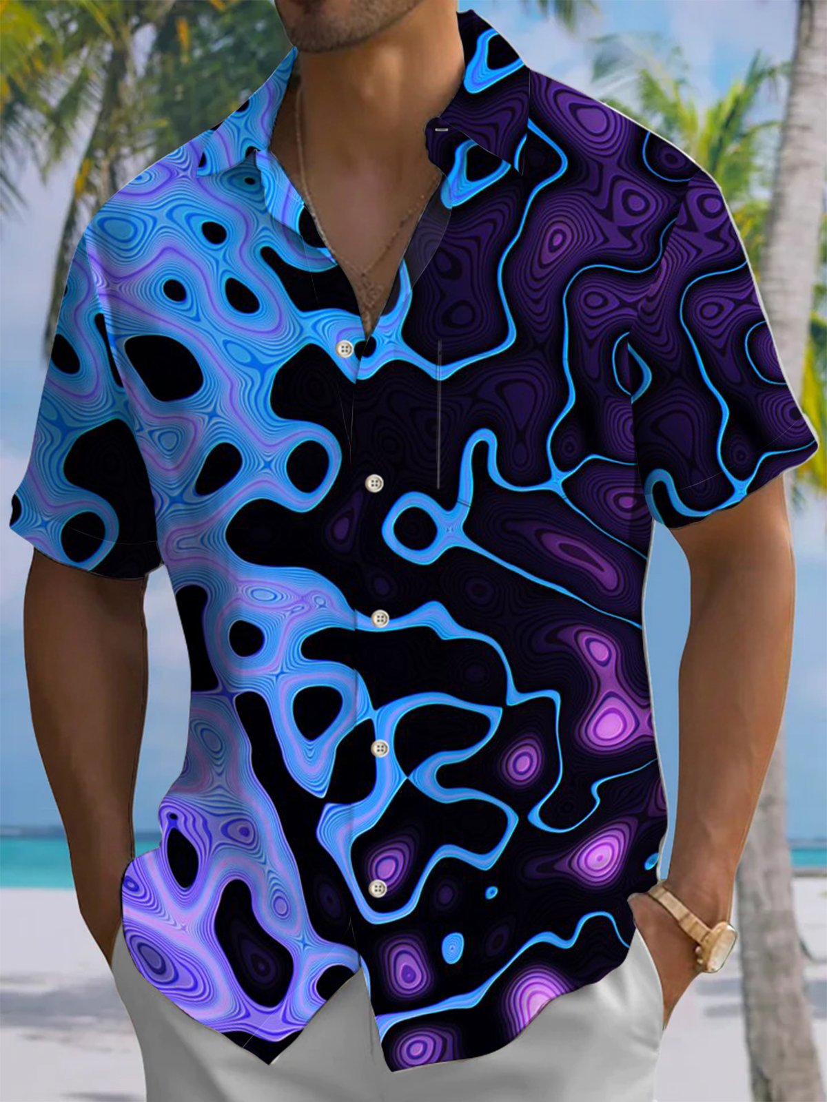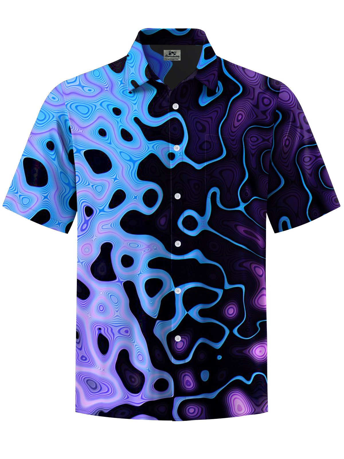 Alohadaddy® Retro Abstract Art Print Chest Pocket Men's Stretch Short Sleeve Ripped Shirt Big & Tall