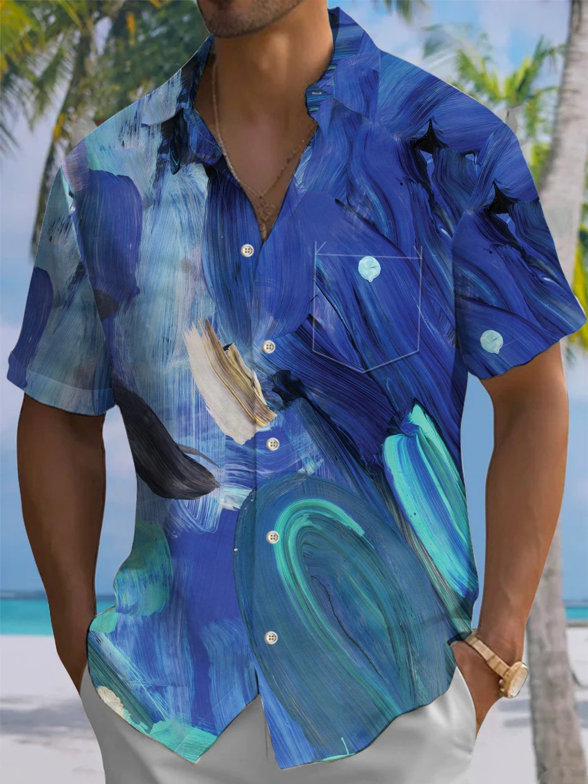 Alohadaddy® Retro Abstract Art Print Pocket Stretch Men's Short Sleeve Shirt Big & Tall