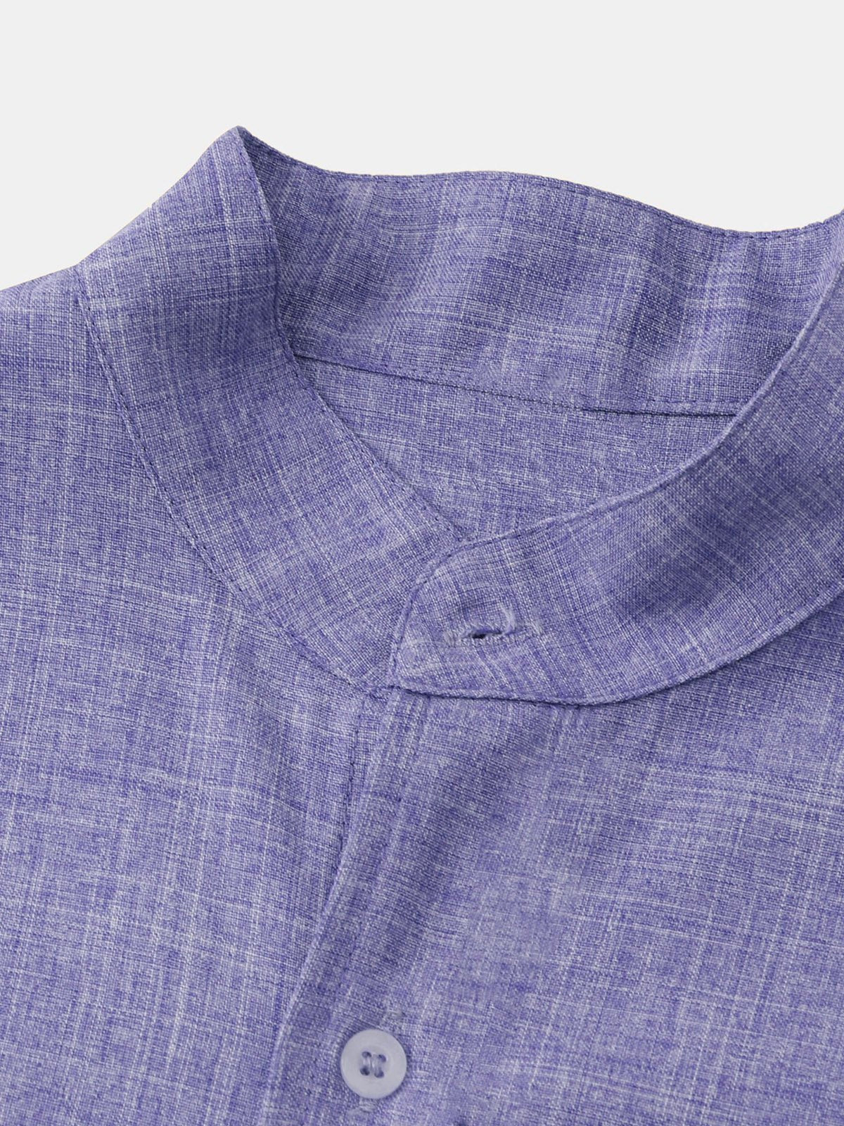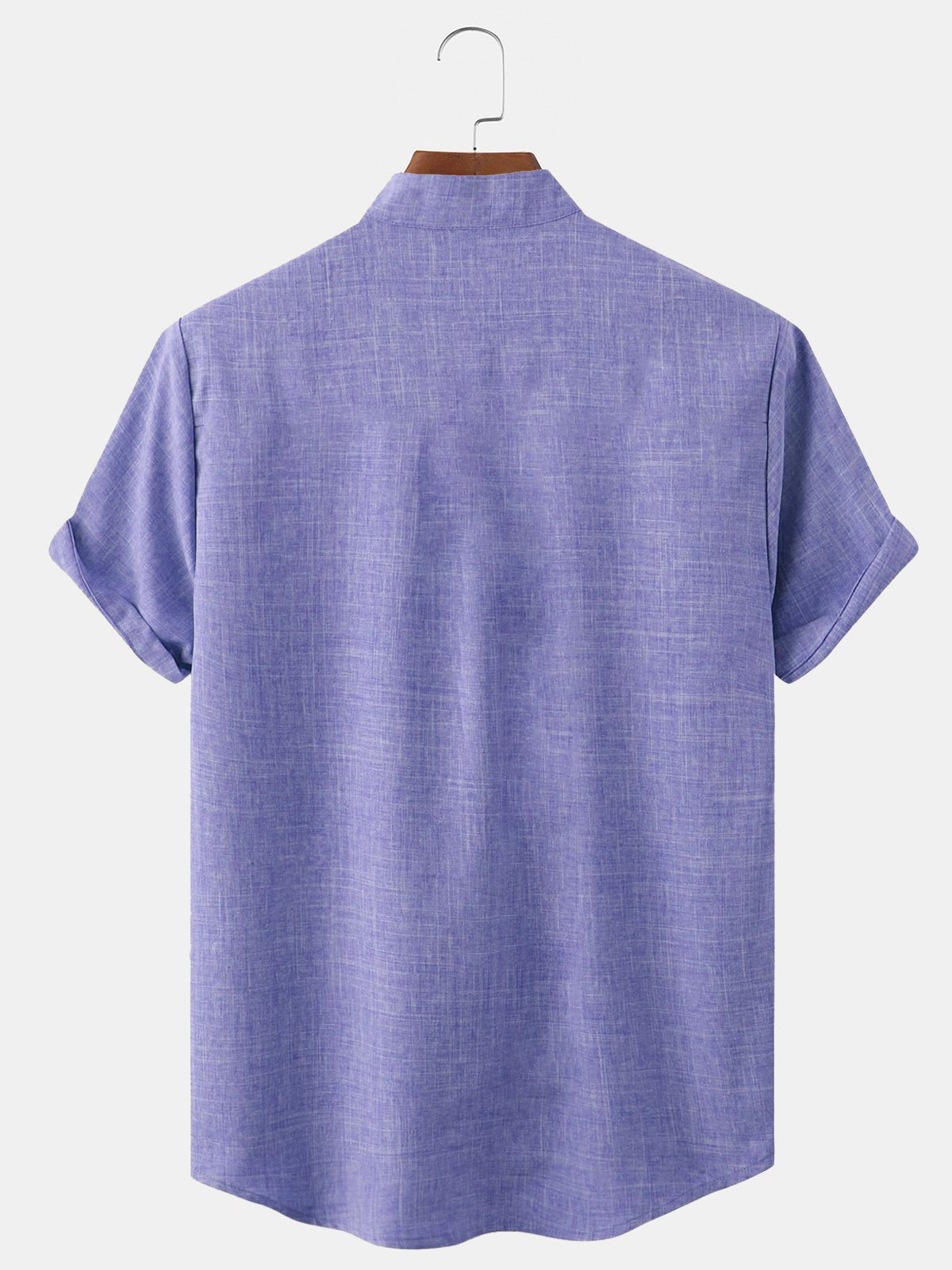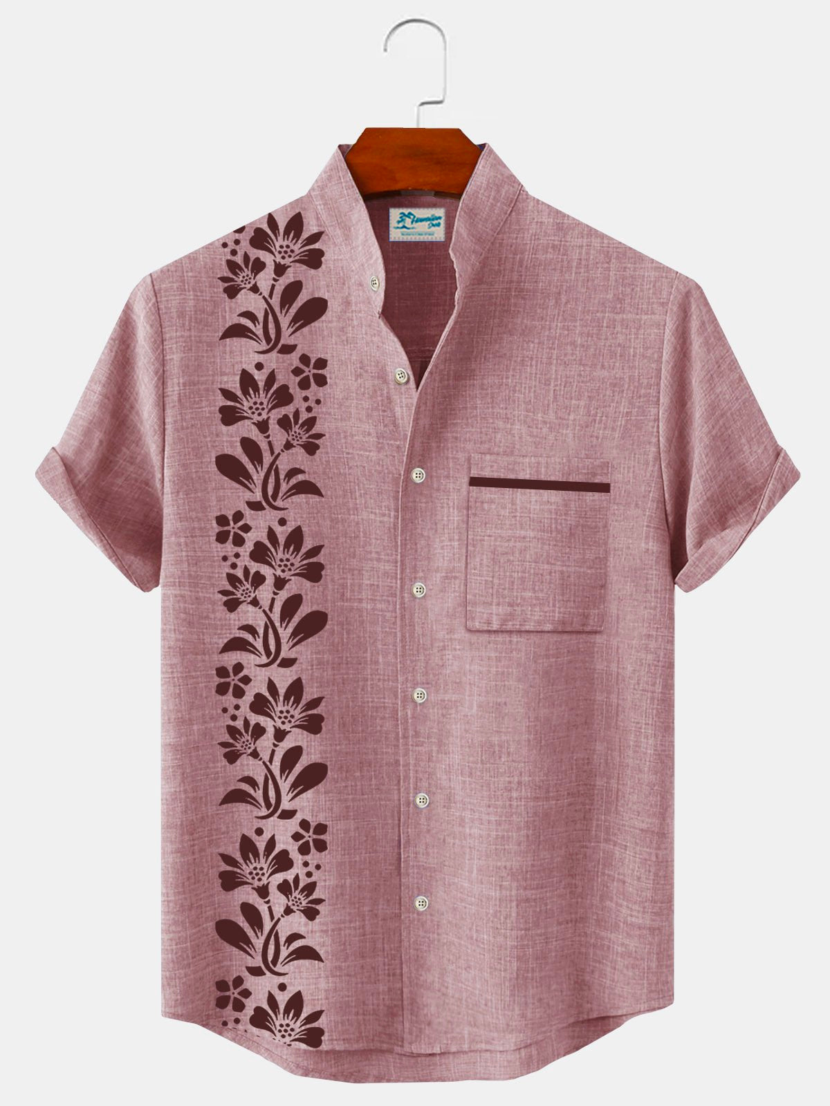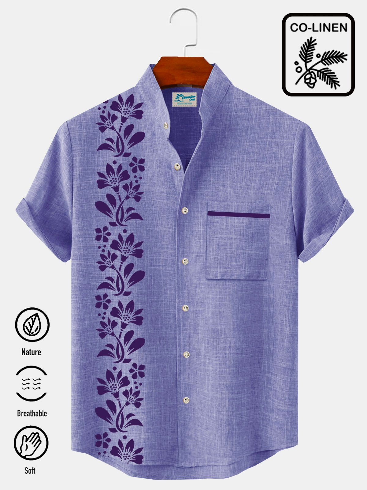Camisas tipo guayabera Alohadaddy de los años 50 con estampado floral morado y cuello alto para hombre, camisas tipo campamento Aloha