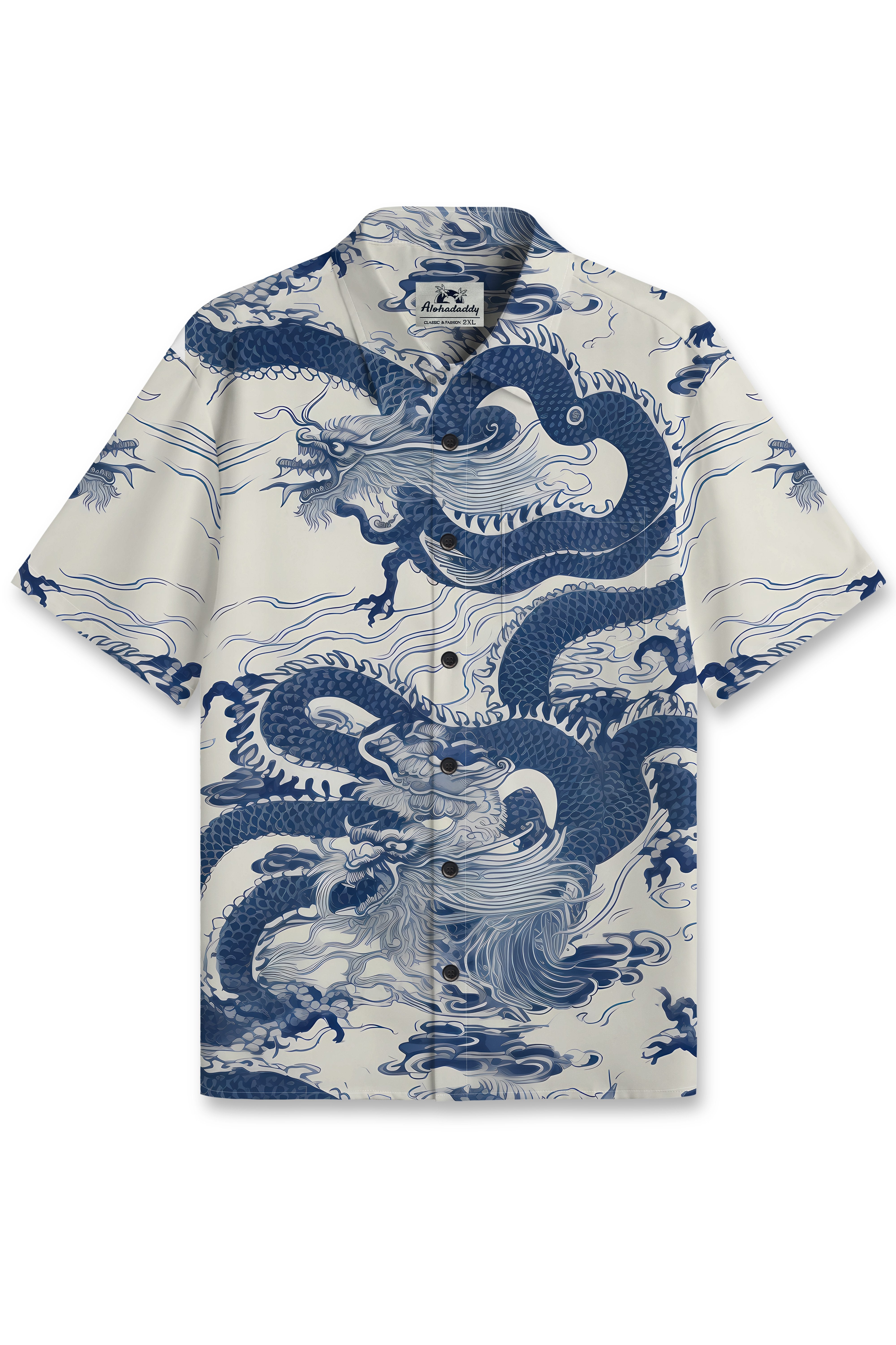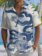 Camisa informal de manga corta con bolsillo y botones y diseño de dragón estilo vintage de Alohadaddy