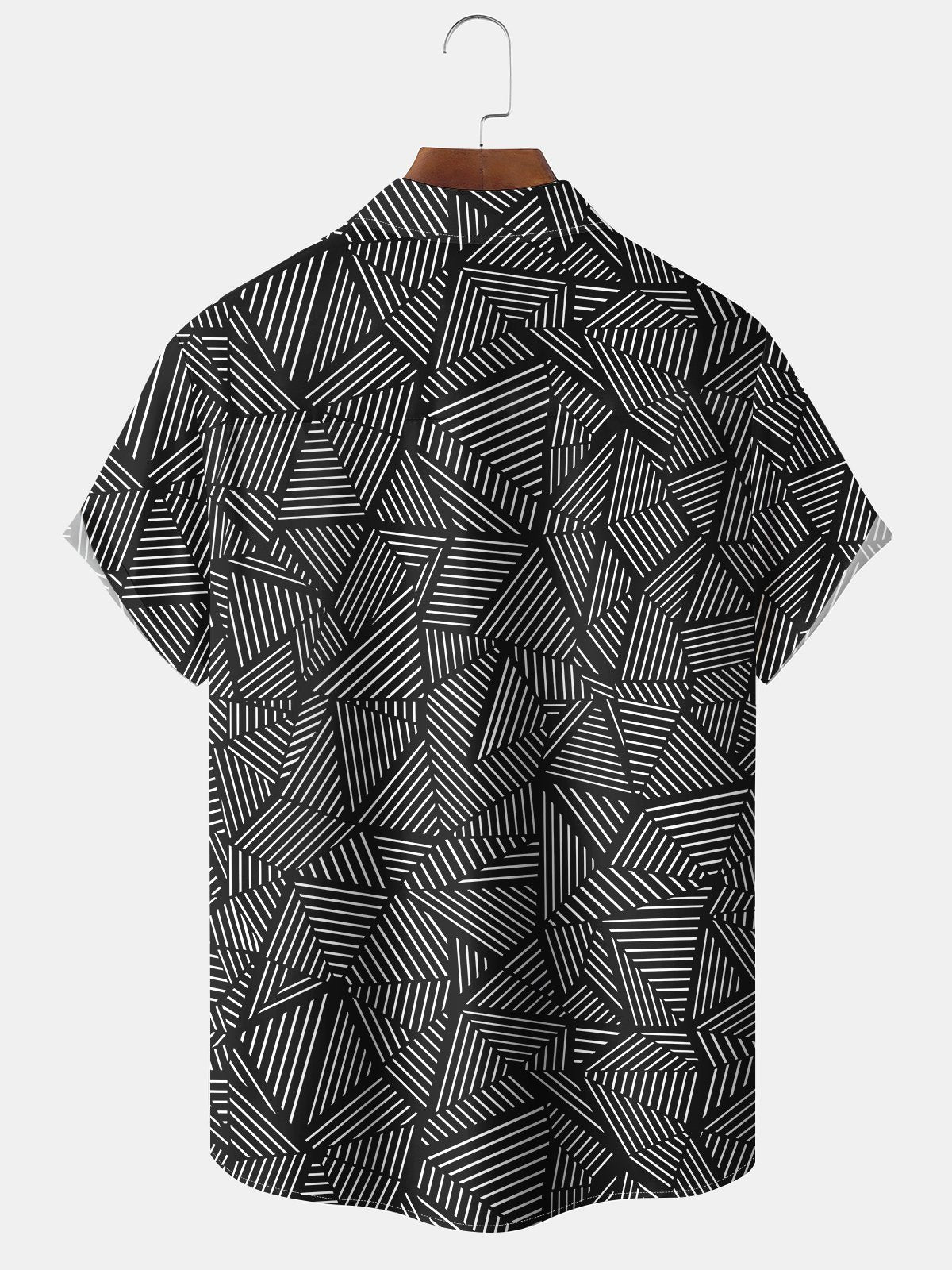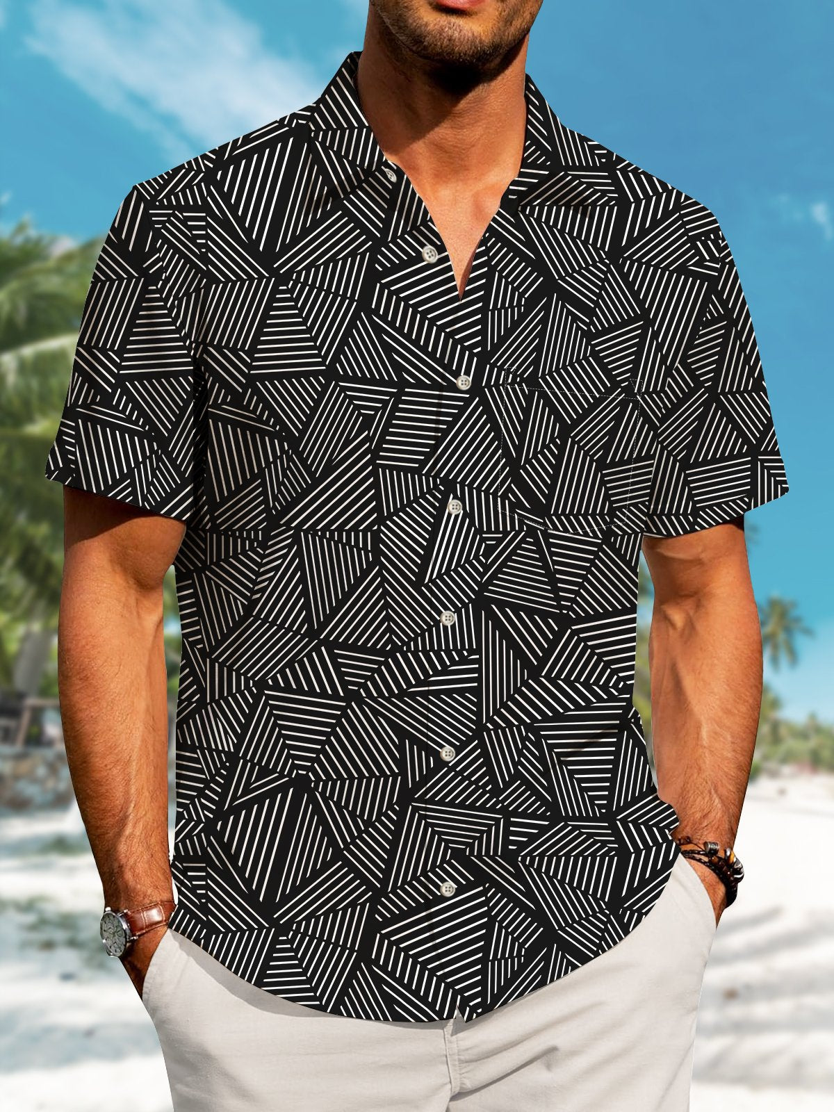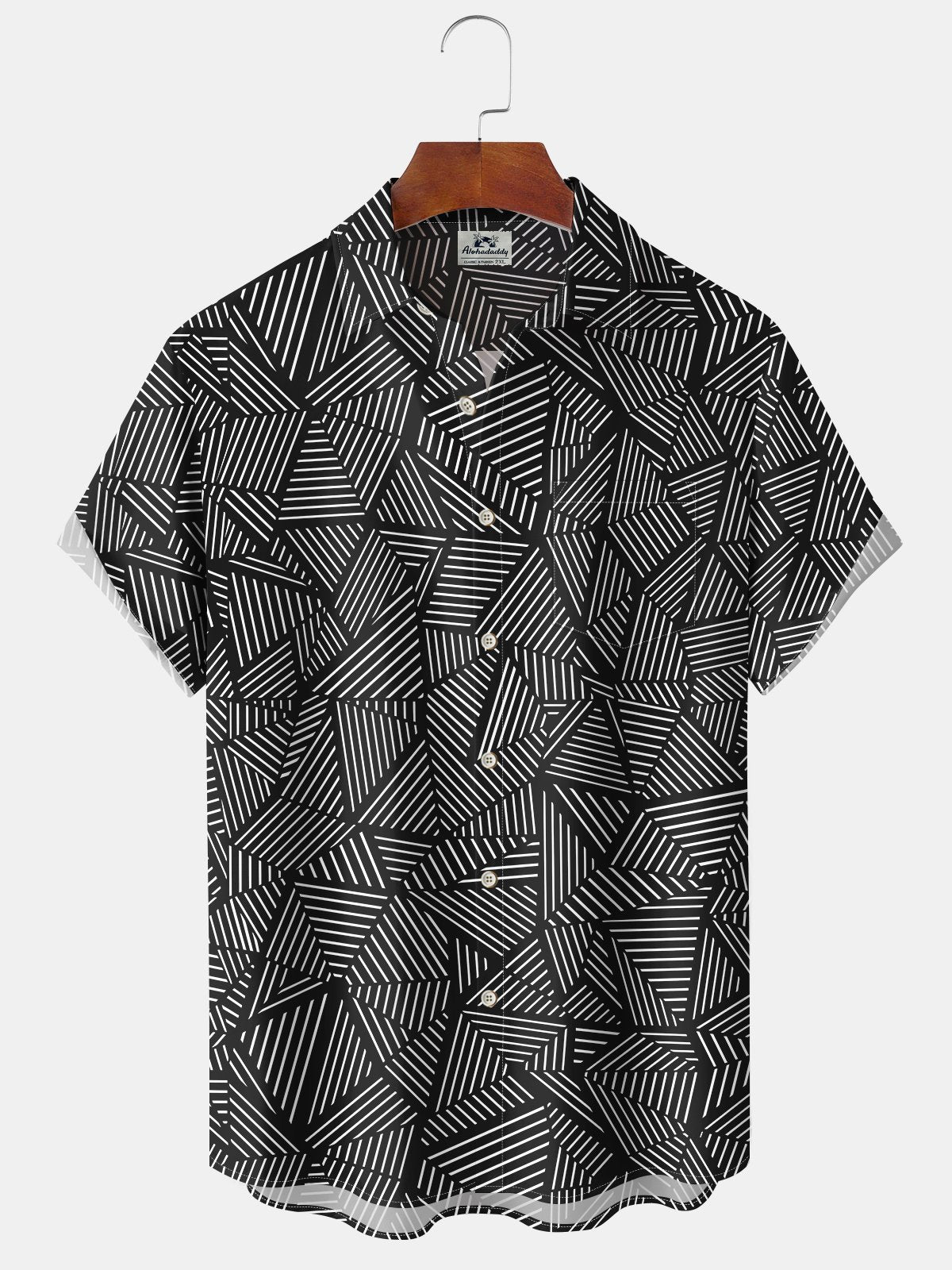 Alohadaddy Casual Geometric Stripes Print Art Pockets Buttons Stretch Oversize Shirt