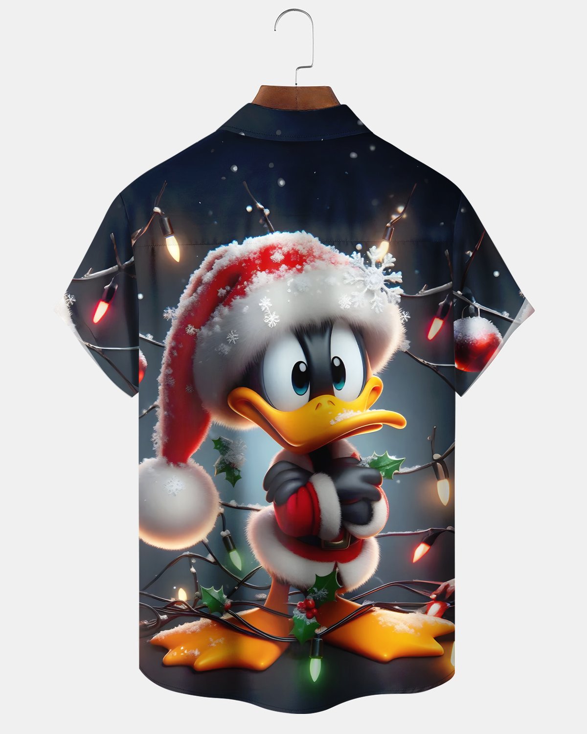 Camisa de manga corta con bolsillo abotonado para hombre con estampado navideño de ciervo sika y muñeco de nieve de Alohadaddy