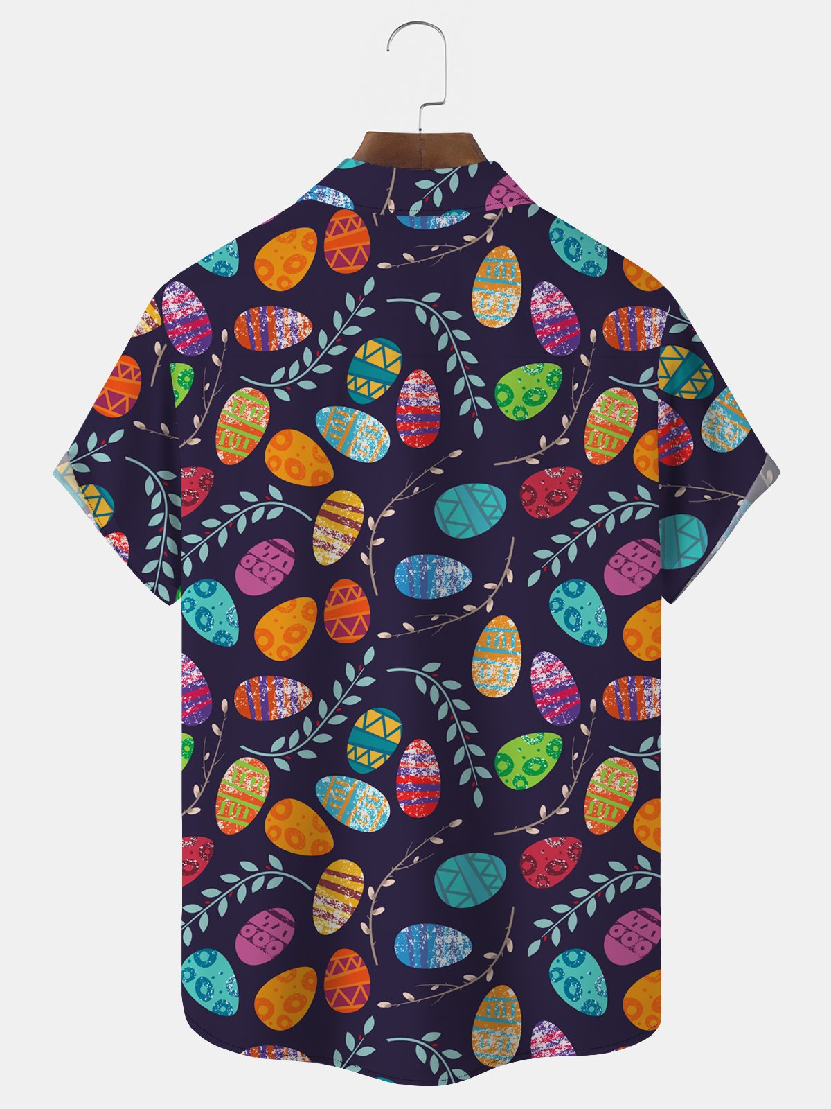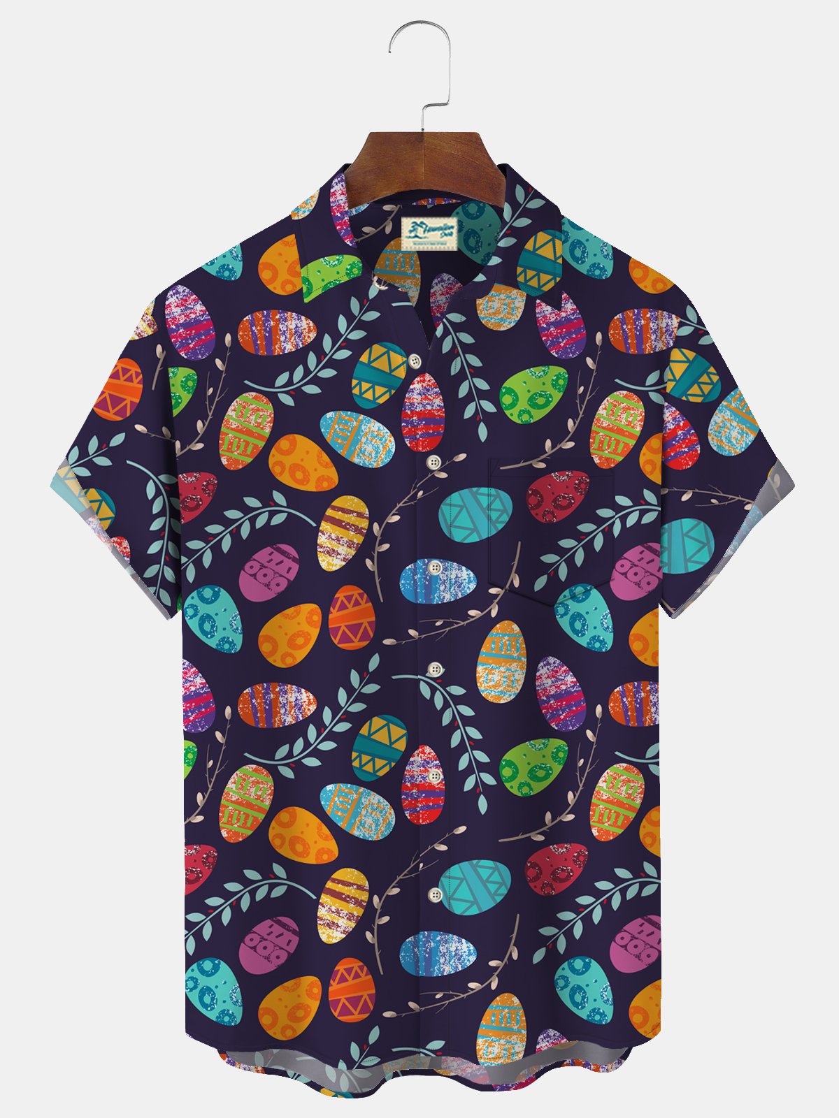 Camisa de manga corta con bolsillo abotonado y estampado de huevos de Pascua para hombre de Alohadaddy