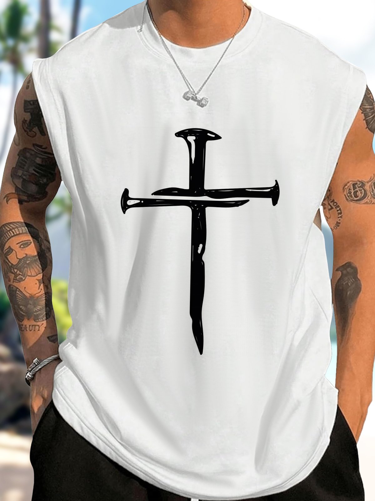 Alohadaddy Holiday Collection Cross Graphic Art Crew Neck Elastic Oversized Long Sleeveless T-Shirt Tank Top